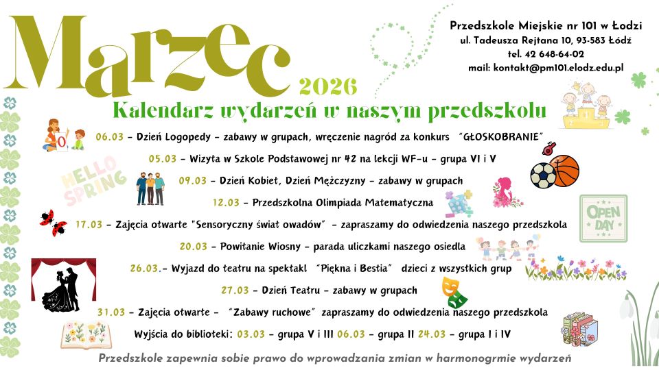 Harmonogram wydarzeń na marzec: