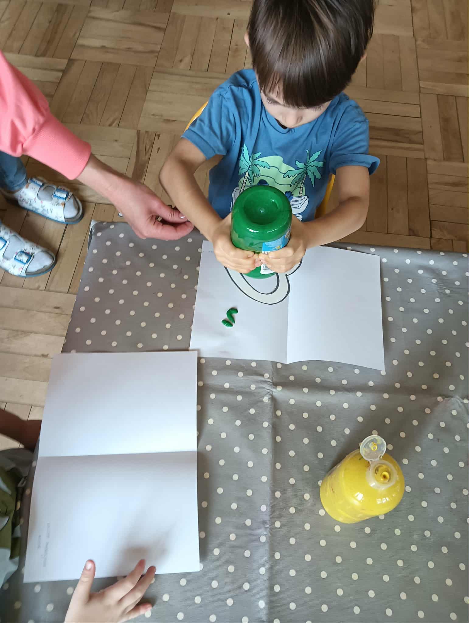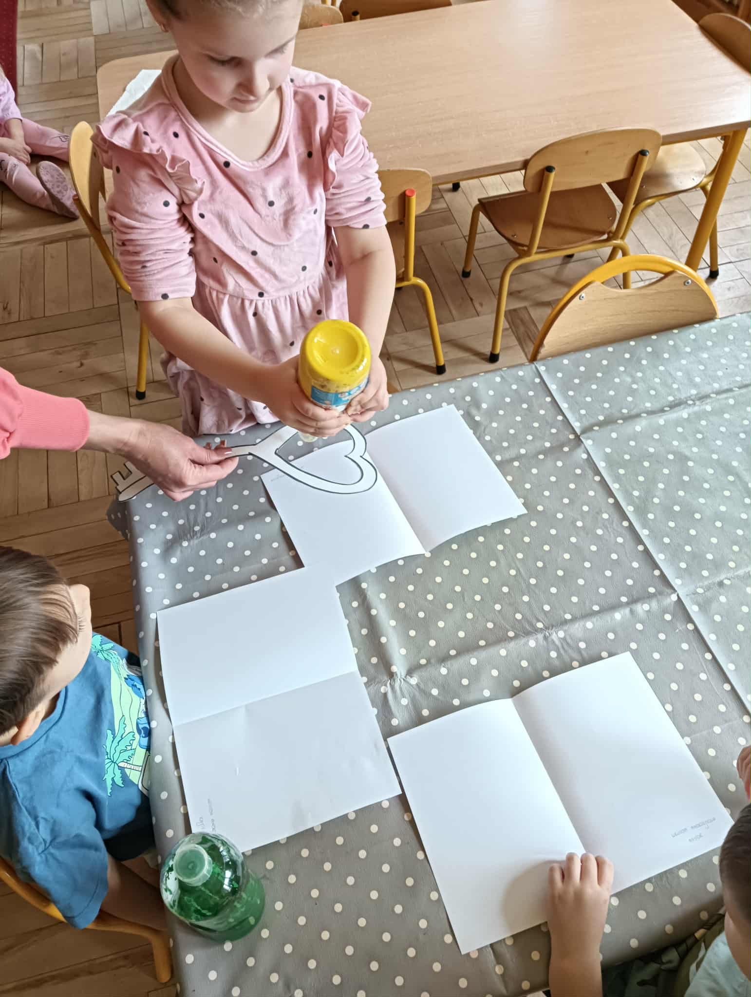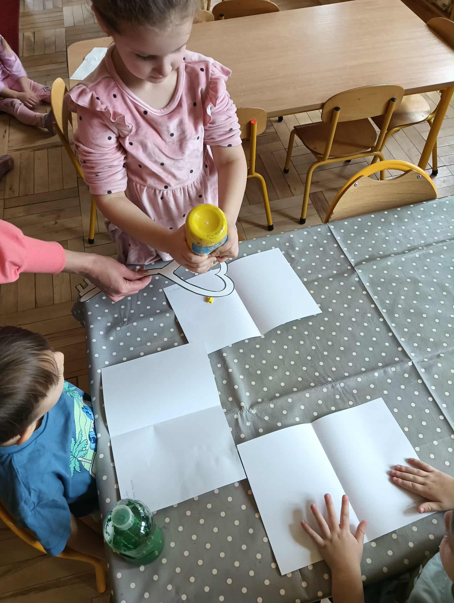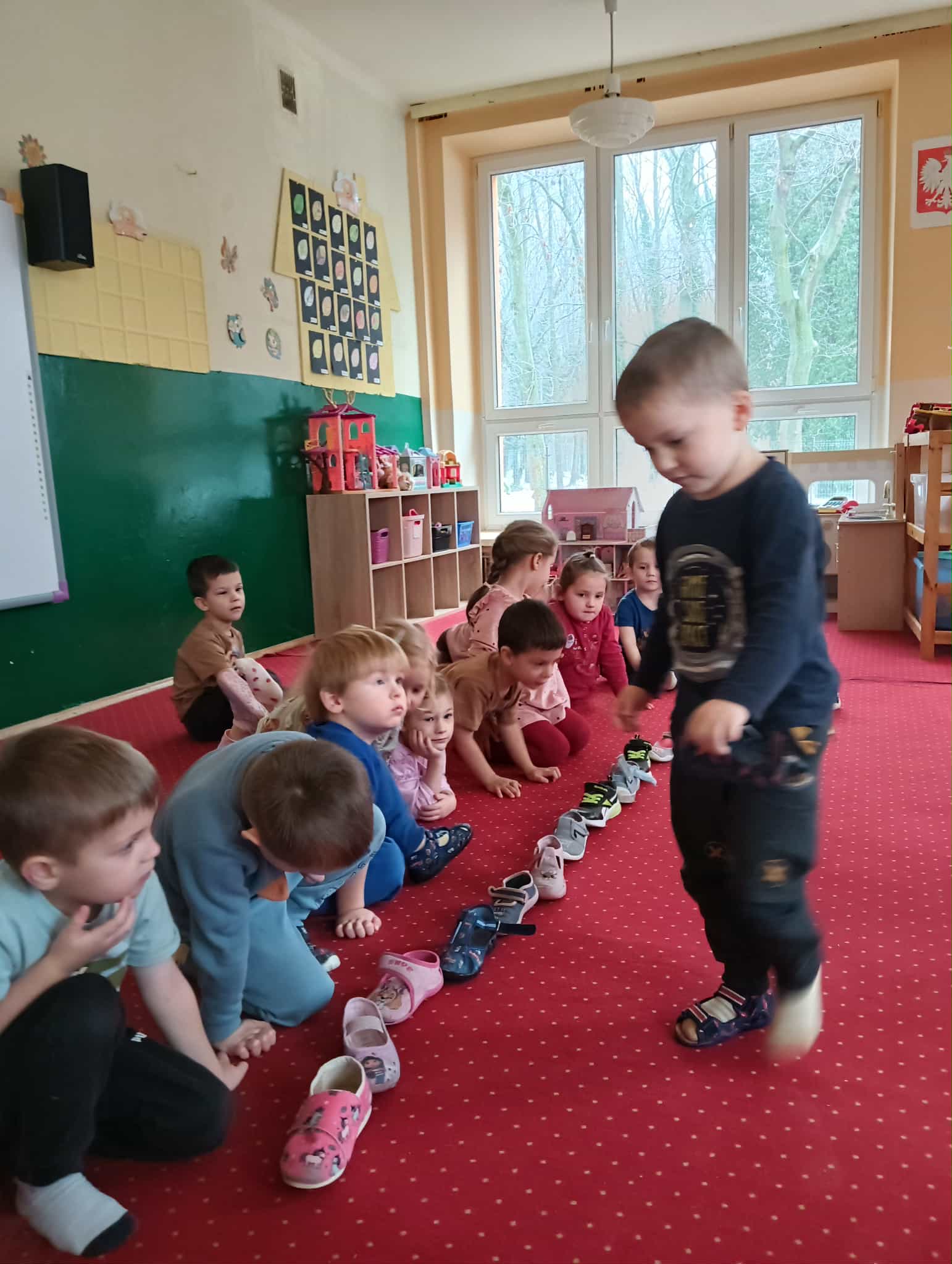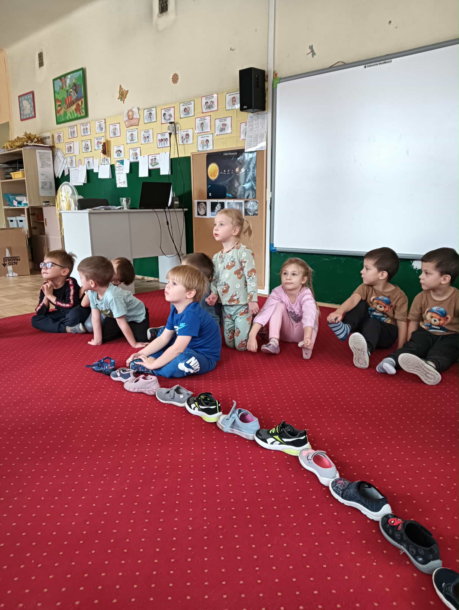 W grupie Słoneczek świętowaliśmy dziś Andrzejki. Najpierw odbyła się tradycyjna wróżba z butami – dzieci z ogromnym zaangażowaniem układały swoje buciki jeden za drugim, aby sprawdzić, który pierwszy „wyjdzie” za próg i przyniesie szczęście na nadchodzący rok. Kolejną atrakcją było lanie farby przez klucz – bezpieczna i kreatywna alternatywa dla wosku. Dzieci z ciekawością obserwowały, jakie kształty powstaną, a potem wspólnie próbowały zgadnąć, co mogą oznaczać. To była świetna okazja do rozwijania wyobraźni i wspólnej zabawy.