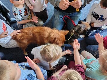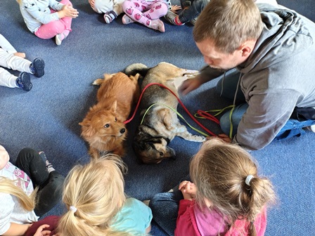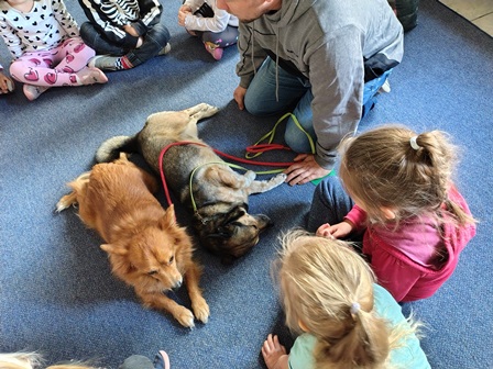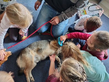 Miały okazję podczas dogoterapii poznać zwyczaje psów, sposoby ich pielęgnacji a także nakarmić czworonogi.