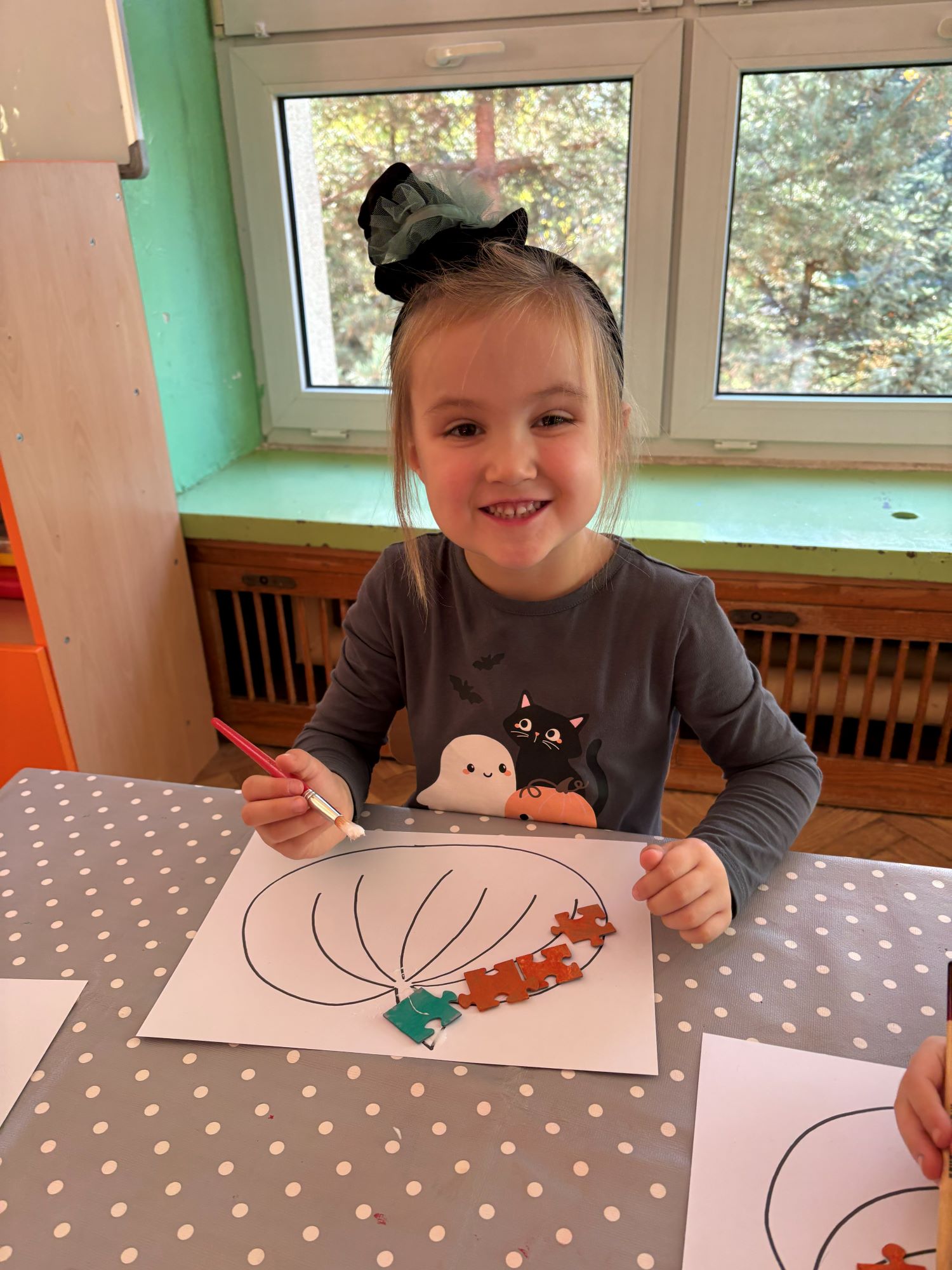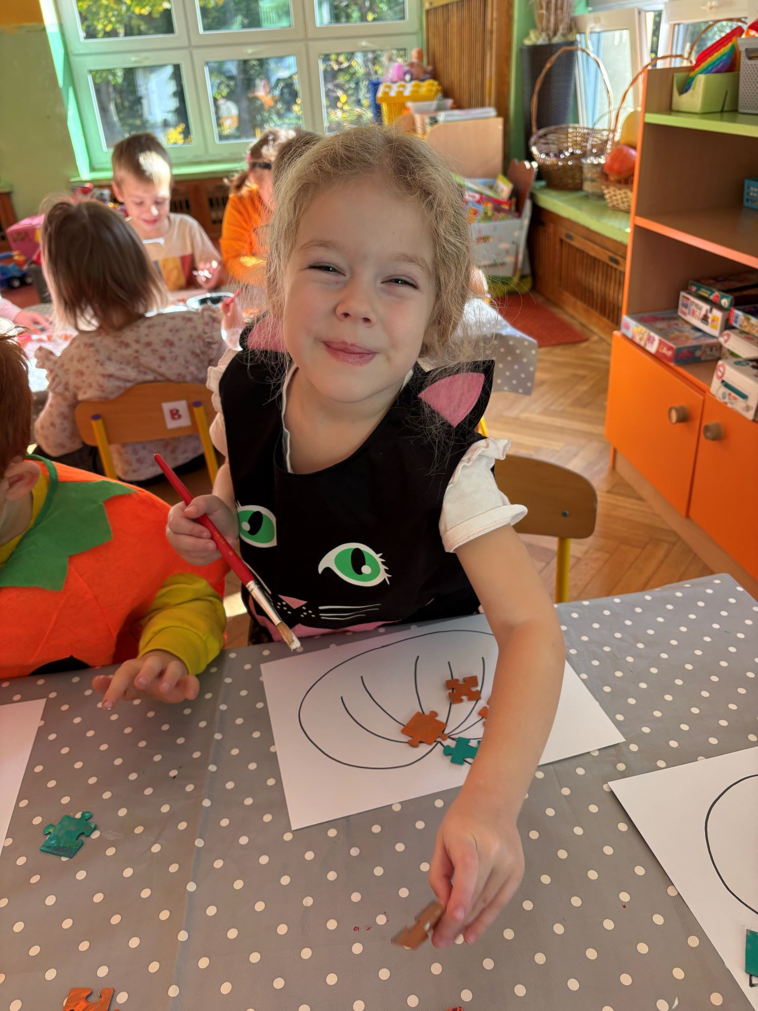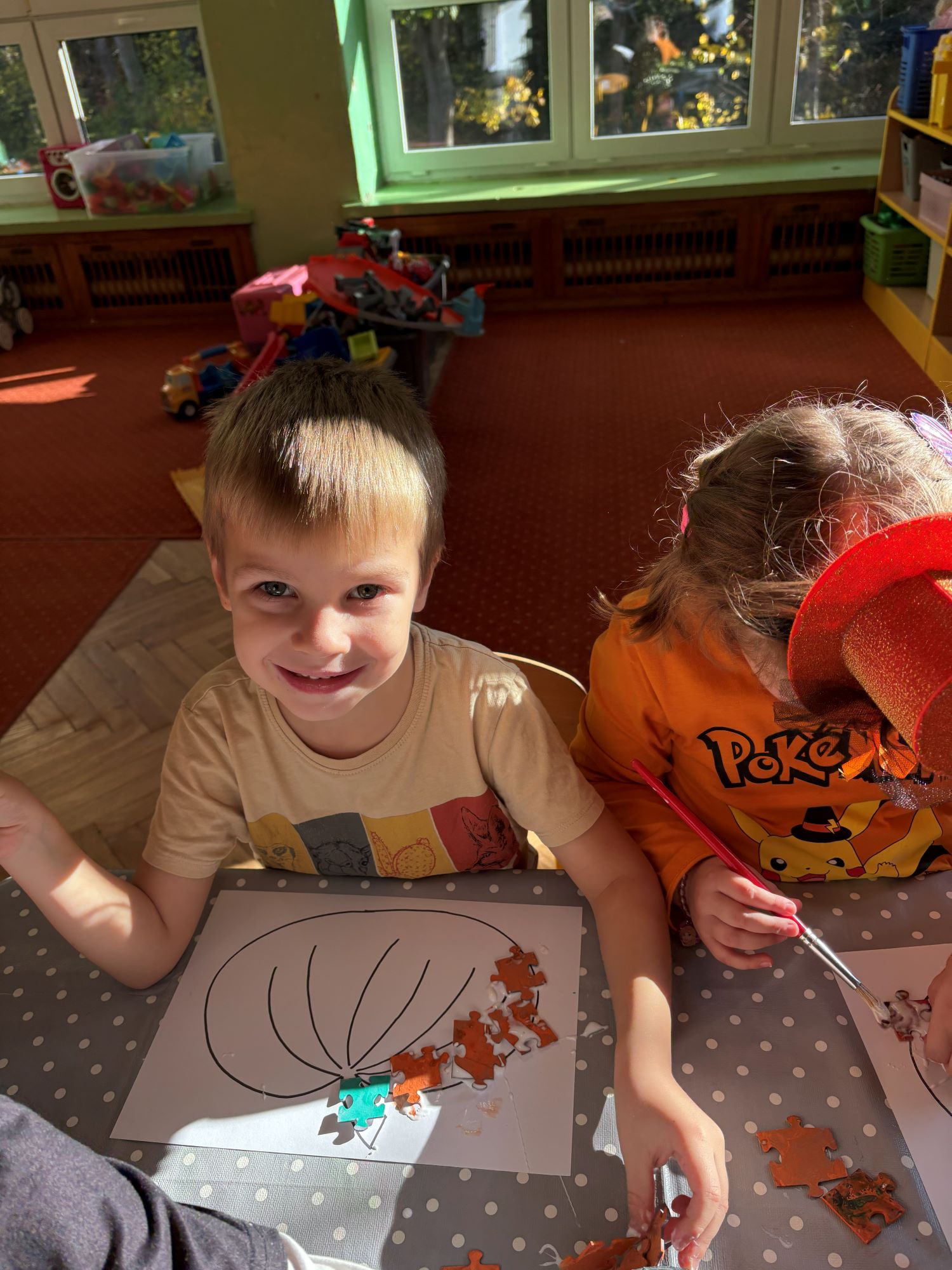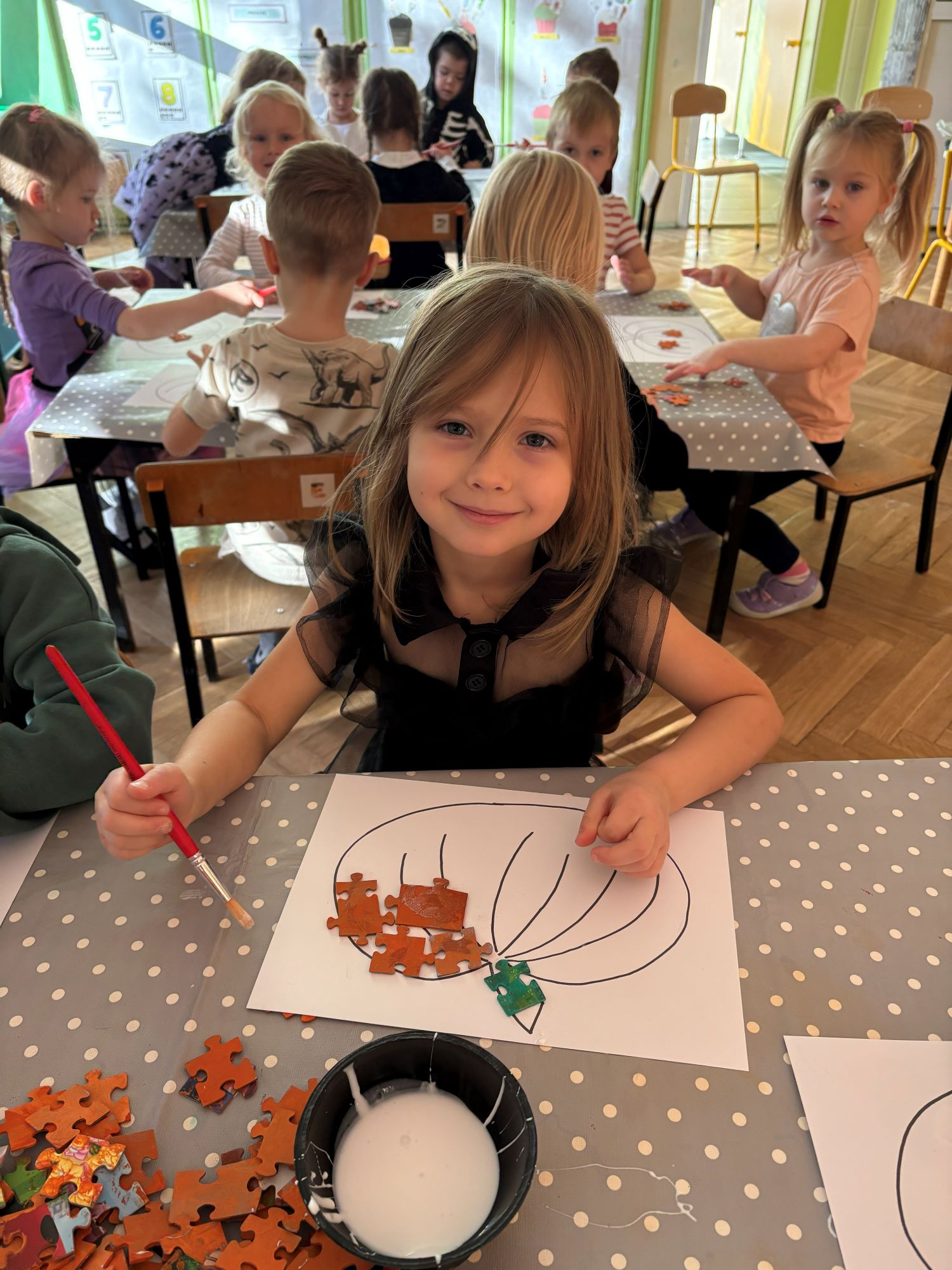 Każde z dzieci wykonało również swoją własną pracę plastyczną – dynię z puzzli. Na zakończenie, dzięki uprzejmości jednej z mam, czekała na nas „strasznie” słodka niespodzianka.
