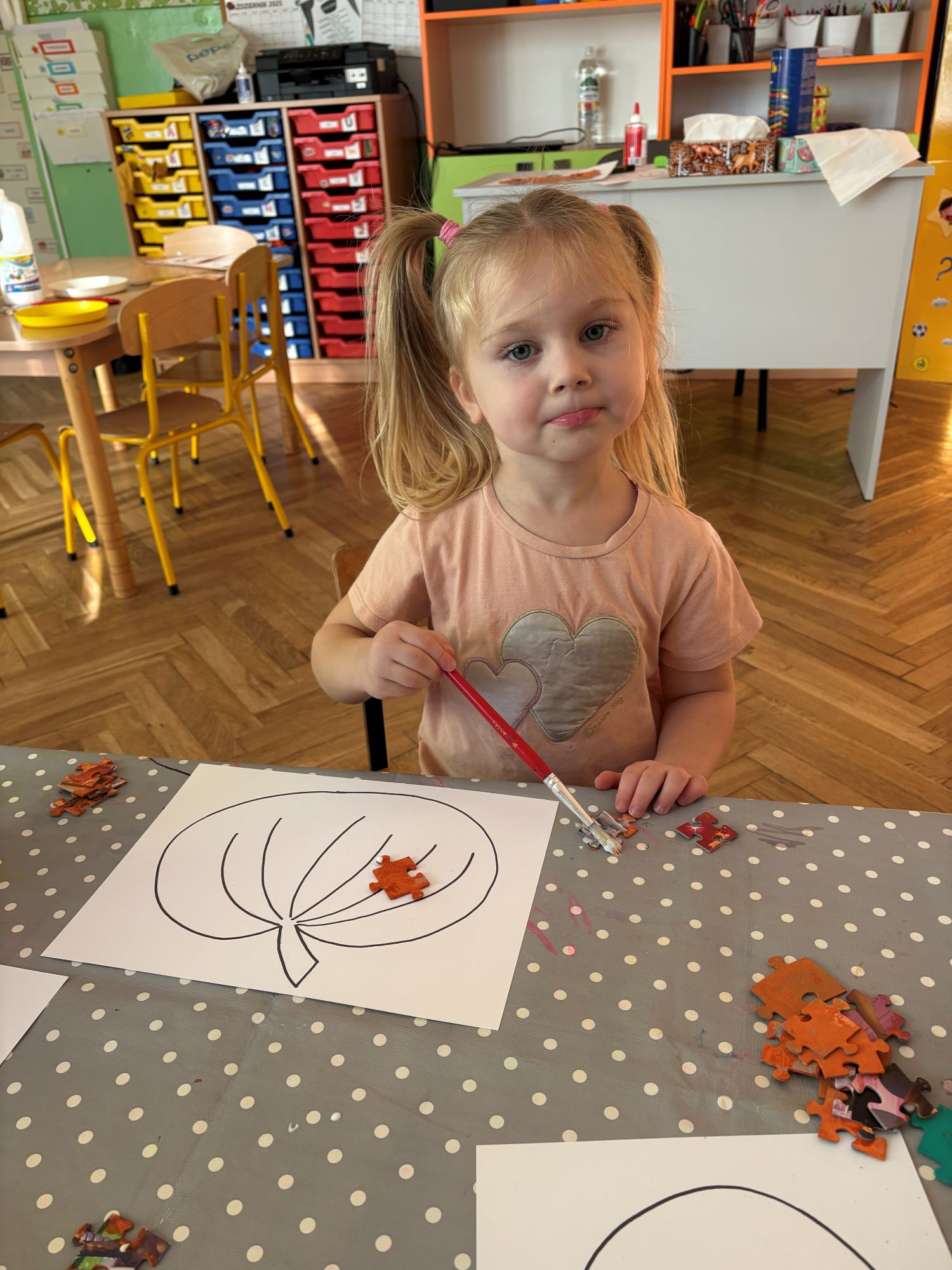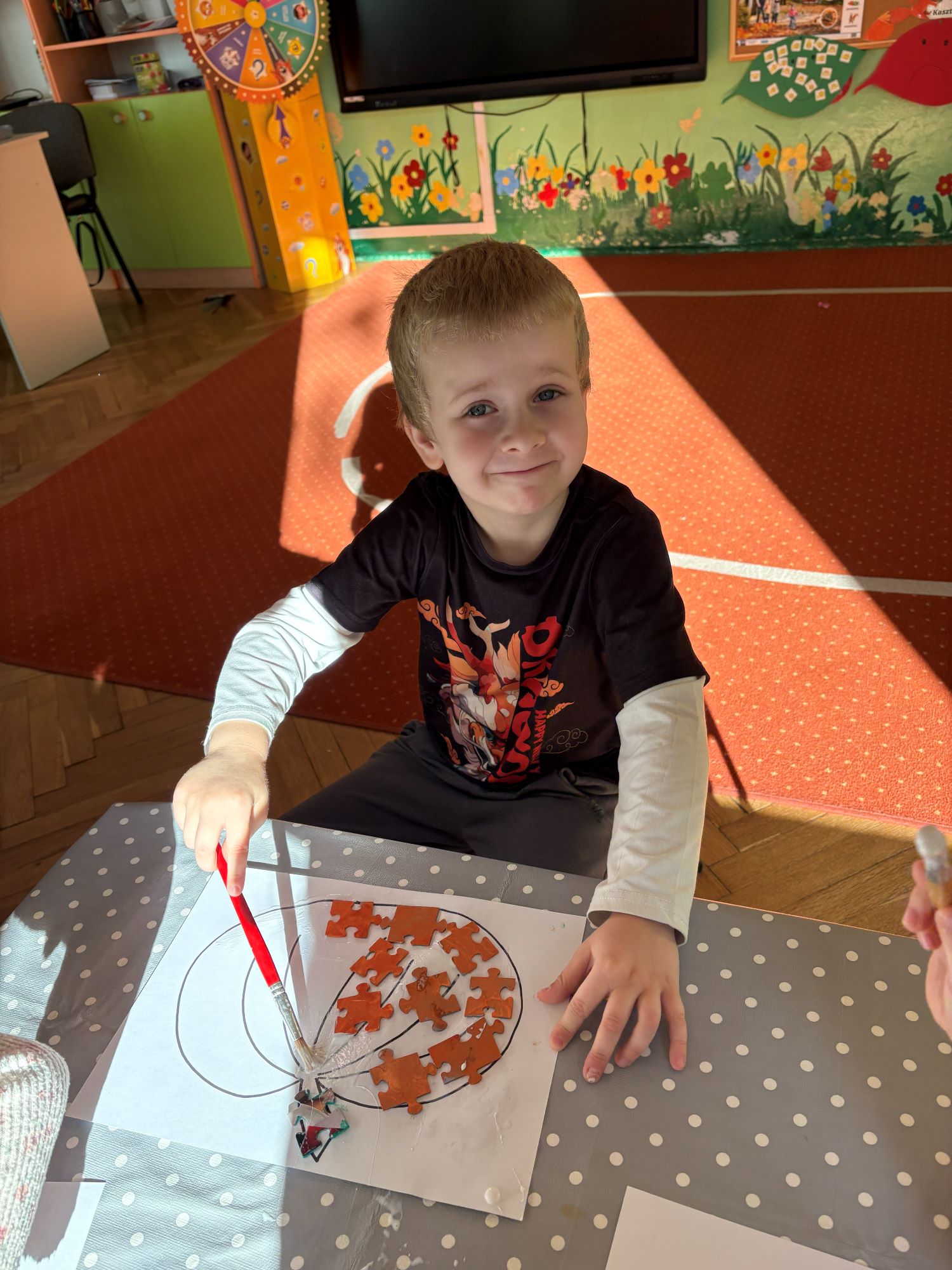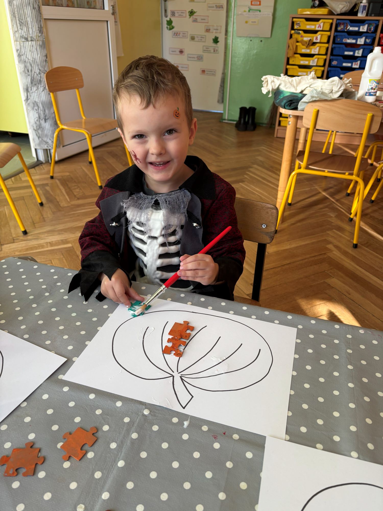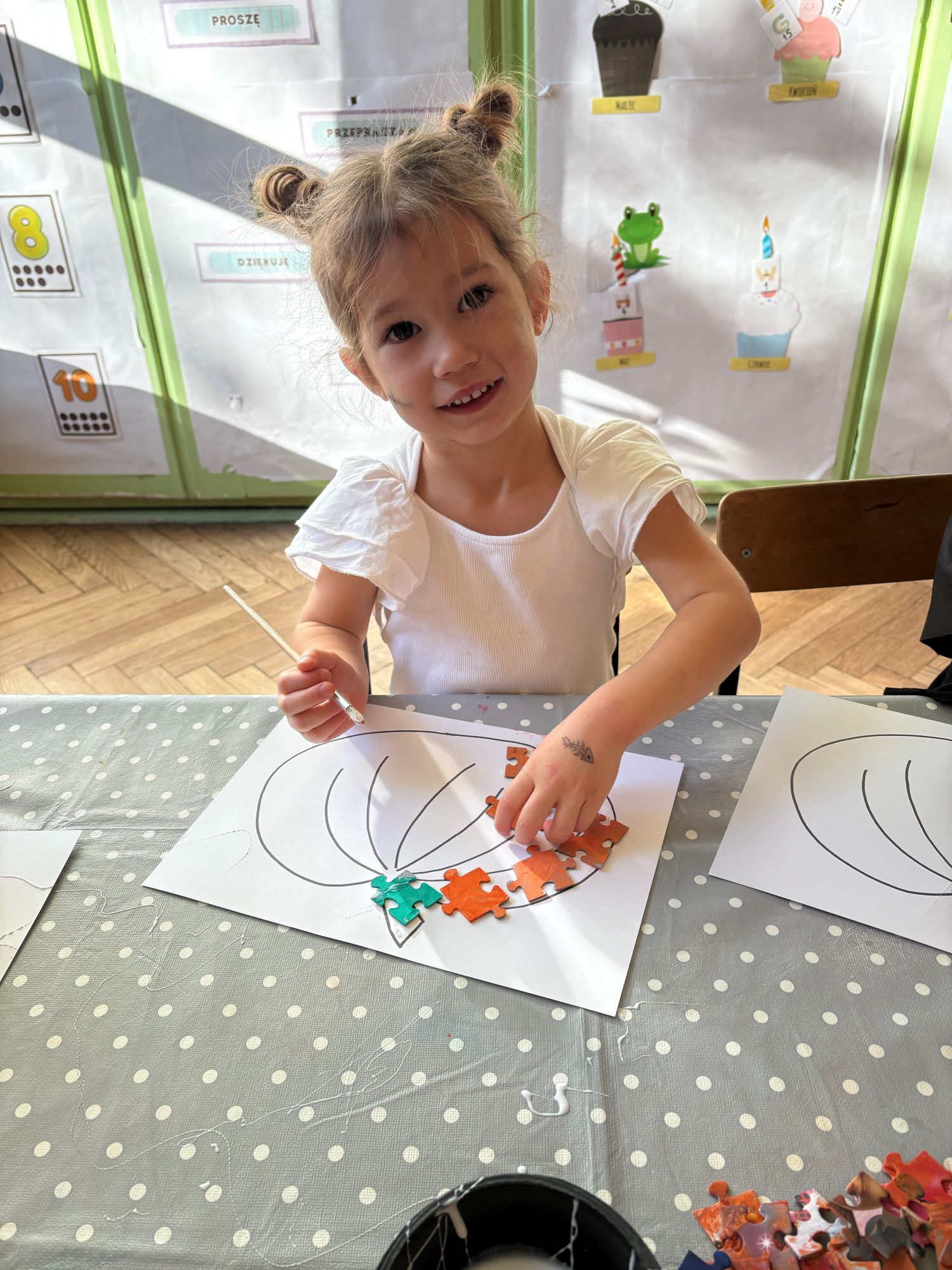 Każde z dzieci wykonało również swoją własną pracę plastyczną – dynię z puzzli. Na zakończenie, dzięki uprzejmości jednej z mam, czekała na nas „strasznie” słodka niespodzianka.
