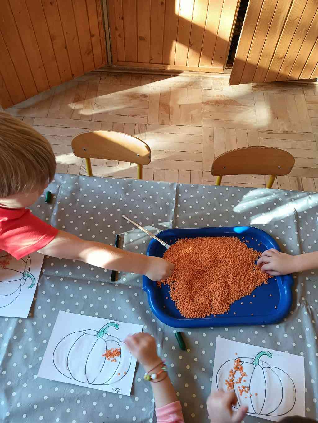W dniu 31 października obchodziliśmy w naszym przedszkolu Dzień Dyni. Bawiliśmy się w dyniowych przebraniach przy piosenkach Halloweenowych a także stworzyliśmy niepowtarzalne dynie z użyciem czerwonej soczewicy. Wyszły jak prawdziwe :) To był bardzo fajny dzień!!