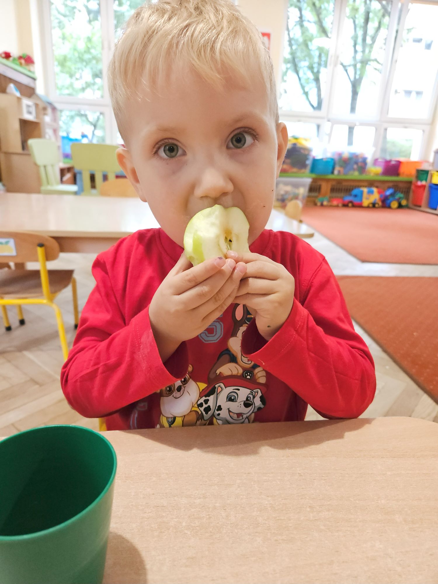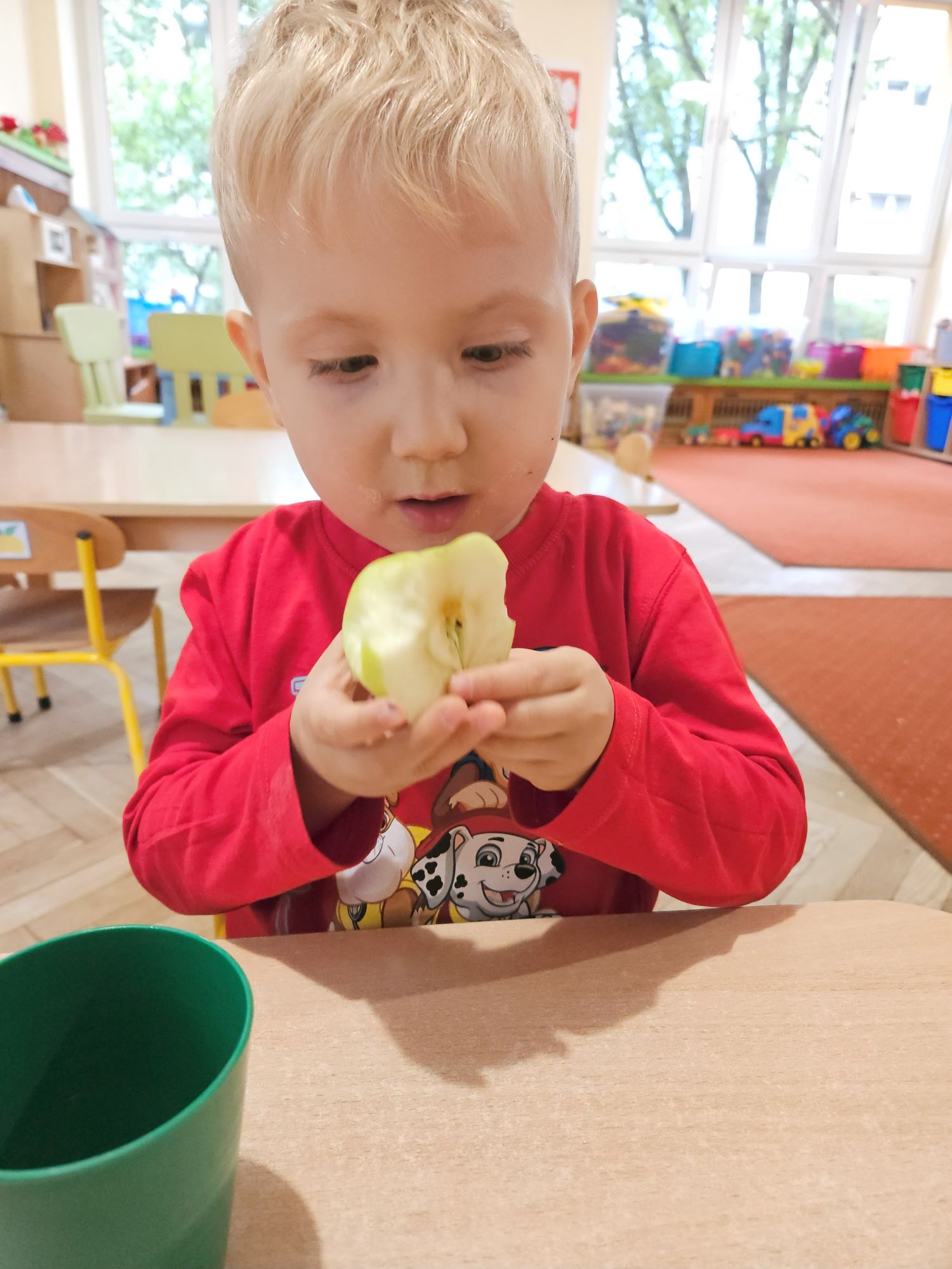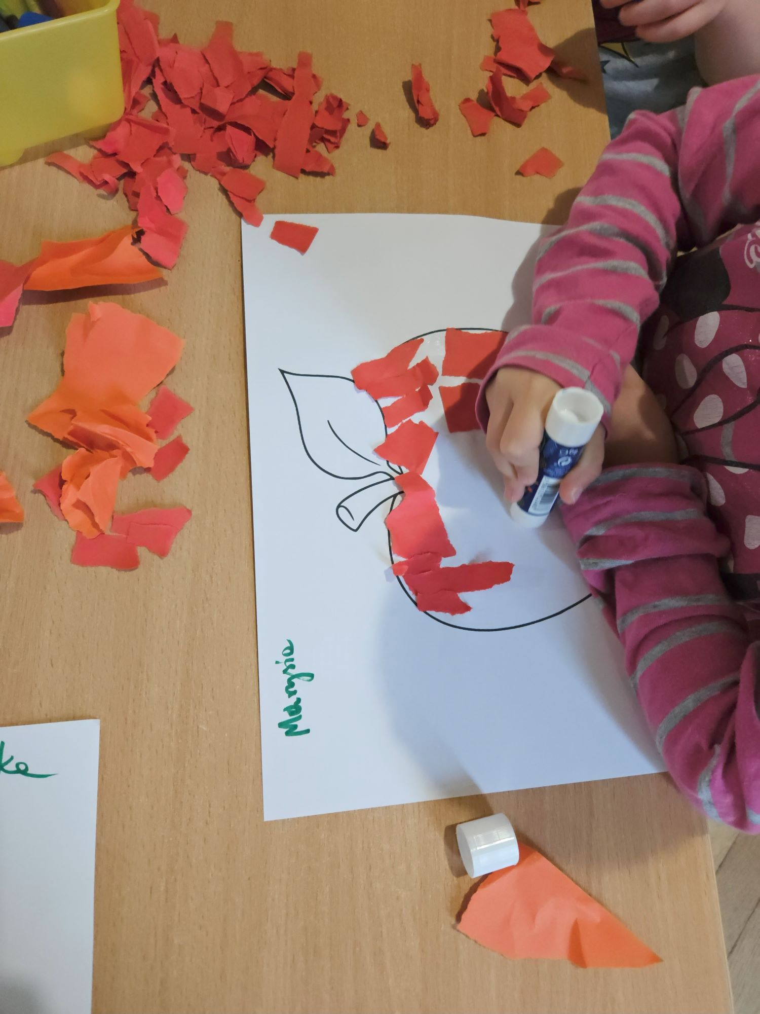 30 września dzieci z grupy Muchomorki świętowały Międzynarodowy Dzień Jabłka. Dzieci miały okazję skosztować różnych odmian, zatańczyć do piosenki o 5 rumianych jabłuszkach oraz wykonać pracę plastyczną metodą wydzieranki. Rozpoczęliśmy również realizację projektu "20minutDlaMatematyki" - dzieci wykonywały działania na zbiorach oraz figurach geometrycznych.