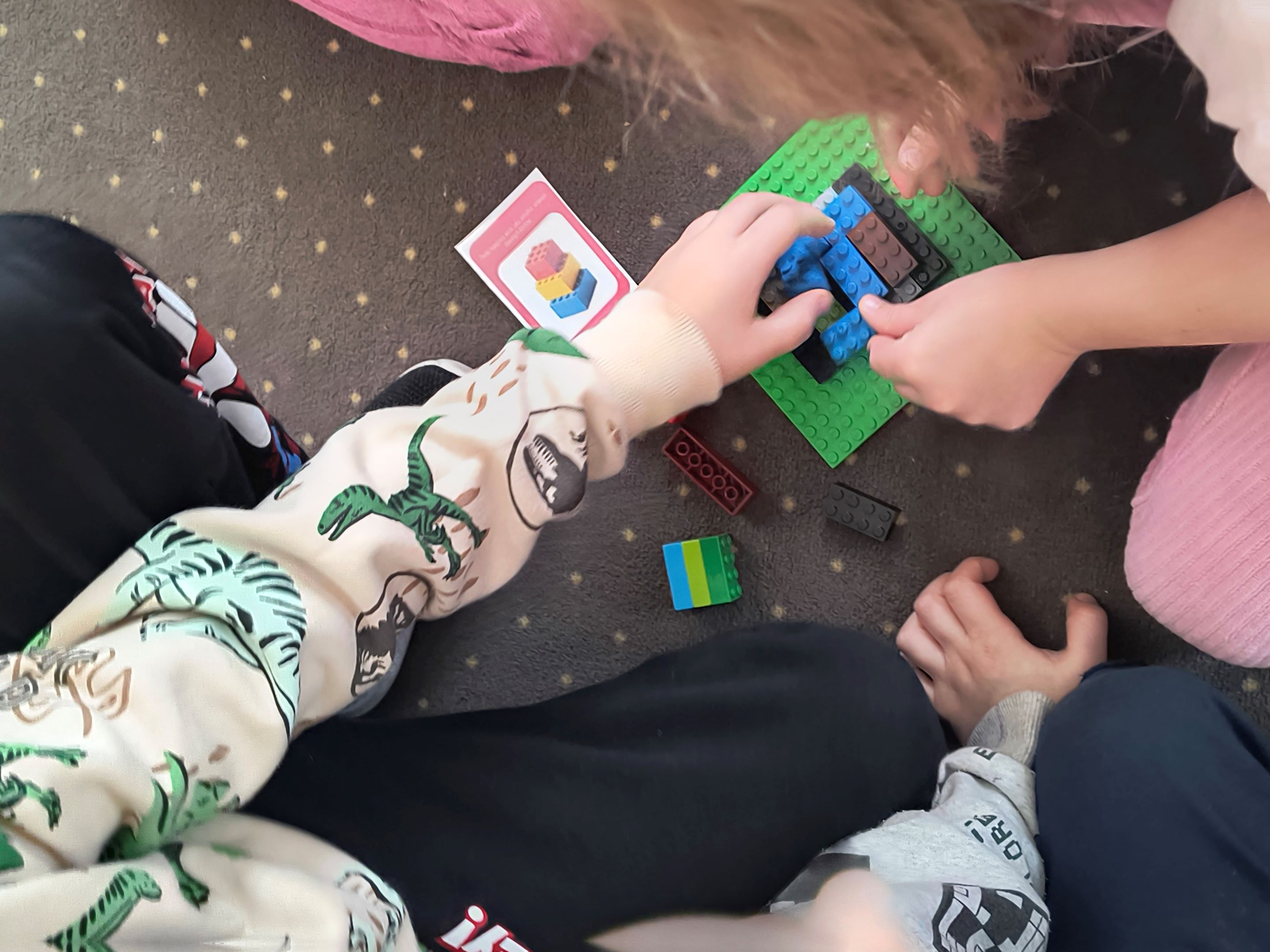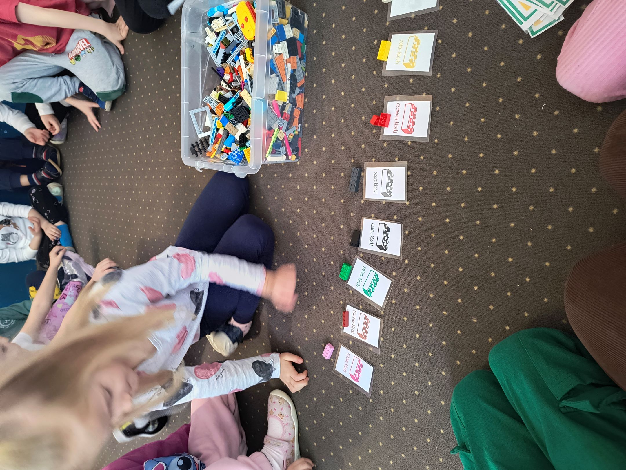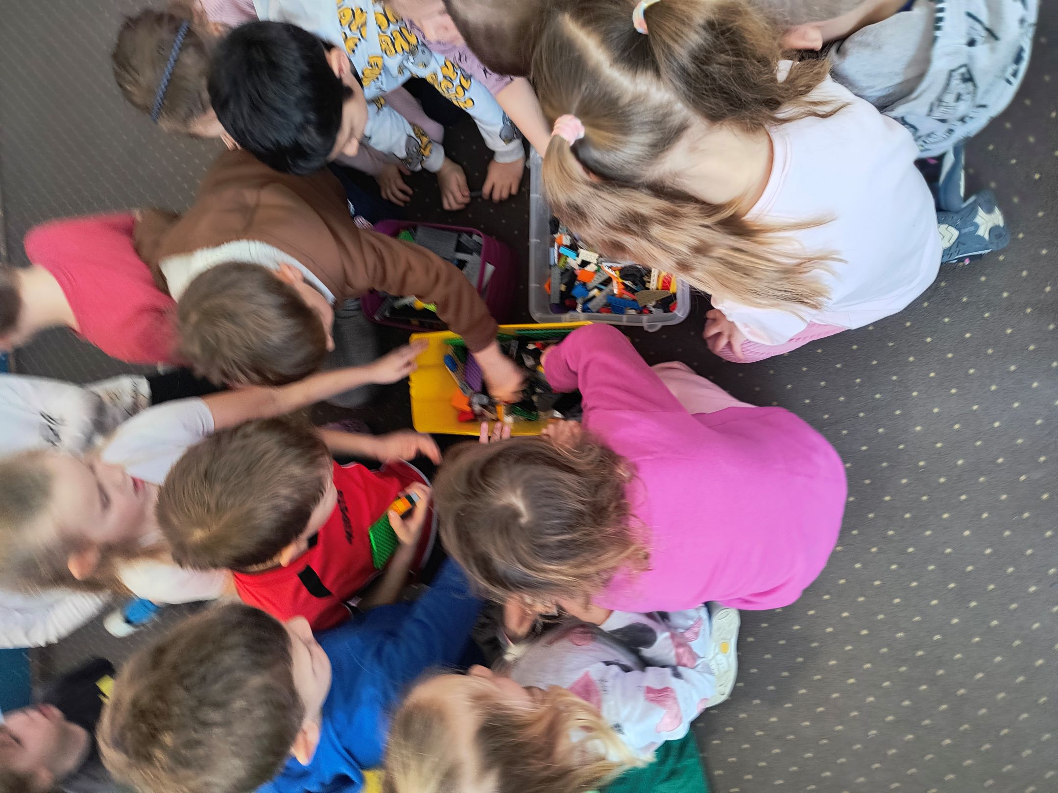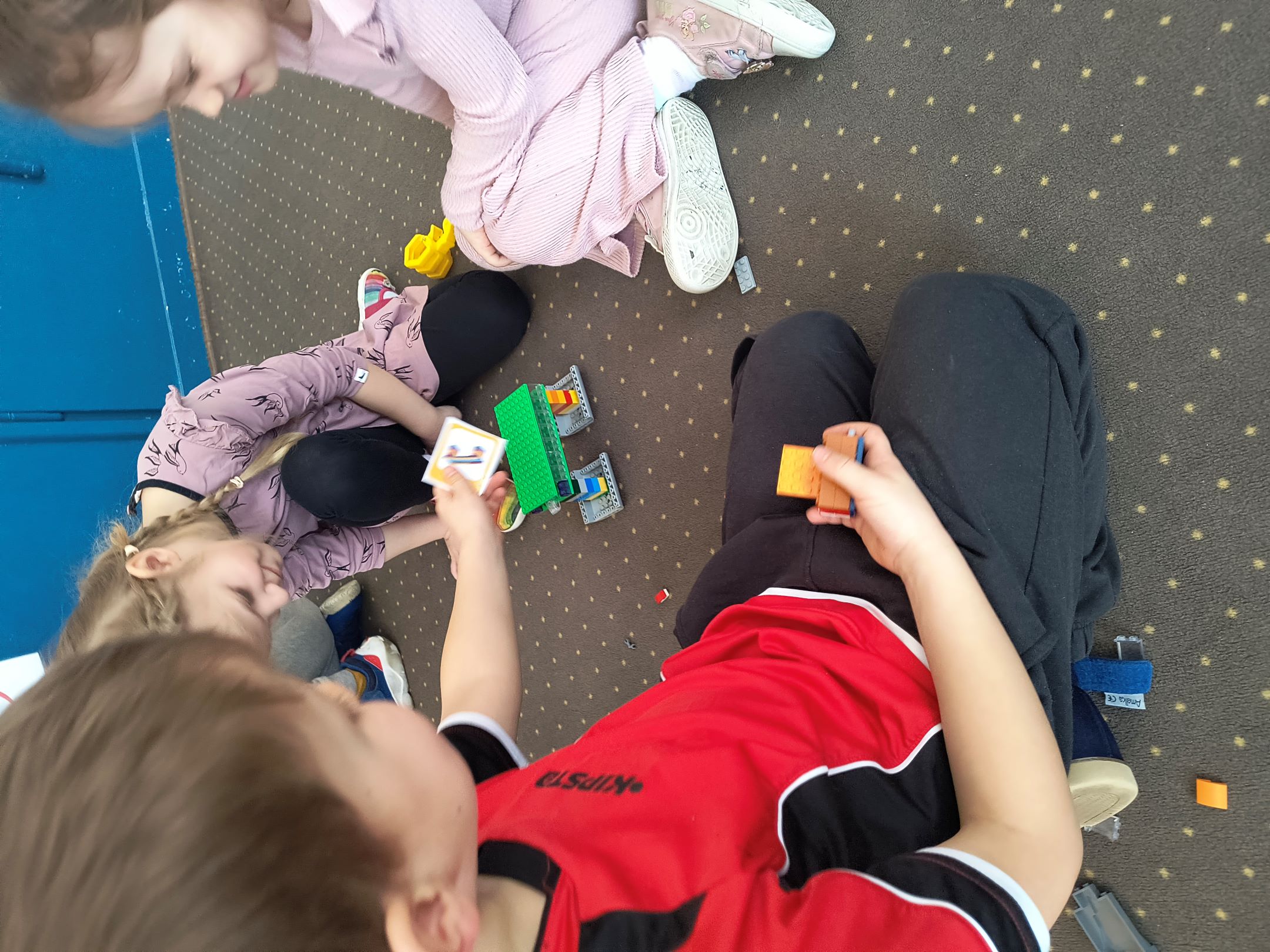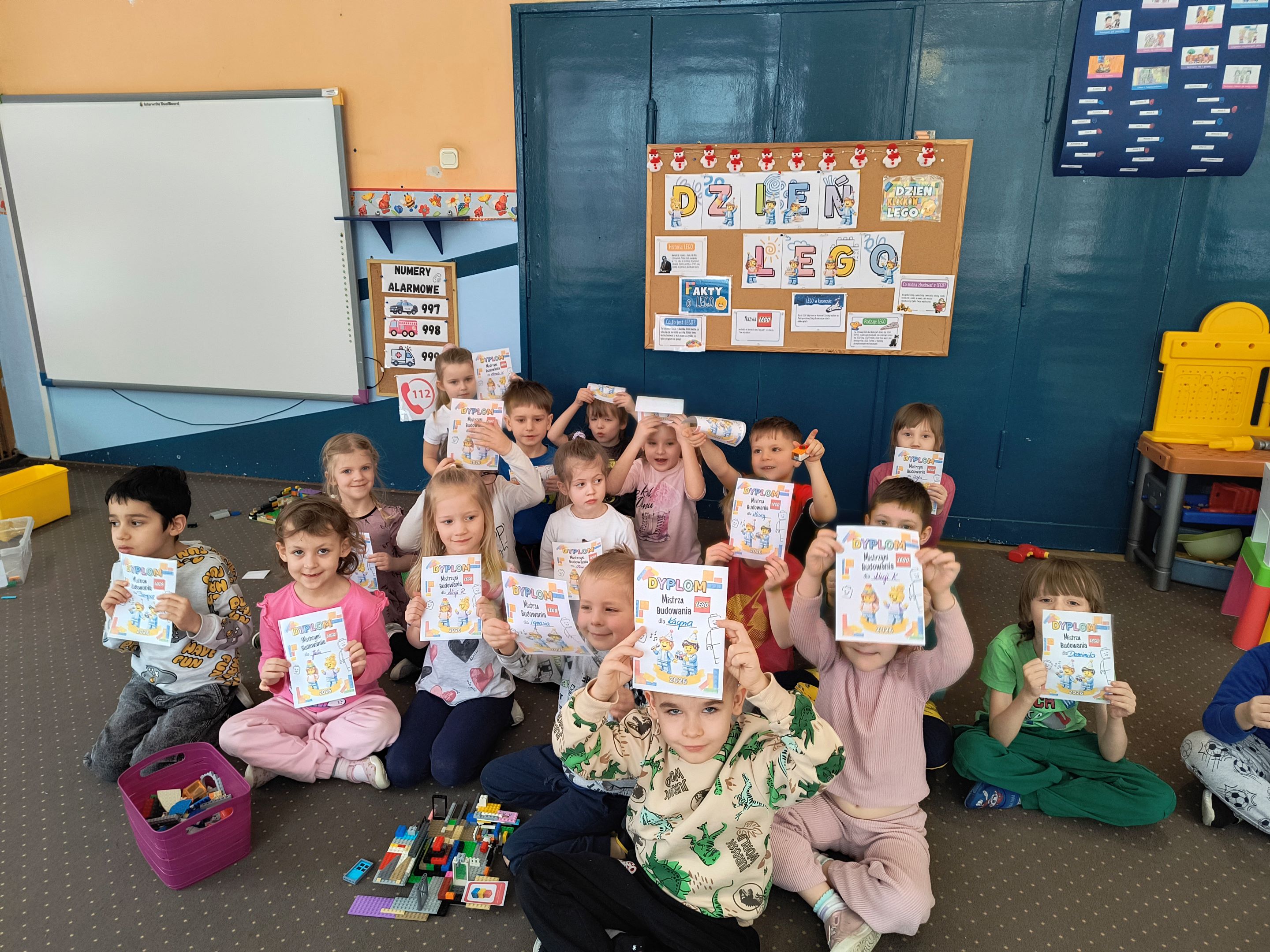 W trakcie dnia odbywały się różne zabawy: swobodne budowanie według własnych pomysłów, budowanie na czas lub według wzoru, praca w grupach – np. wspólne miasto, zgadywanki i liczenie klocków według kolorów i wielkości. Na zakończenie dzieci otrzymały dyplomy. To dzień pełen kreatywności, współpracy i świetnej zabawy, który rozwija wyobraźnię, cierpliwość i zdolności manualne dzieci.