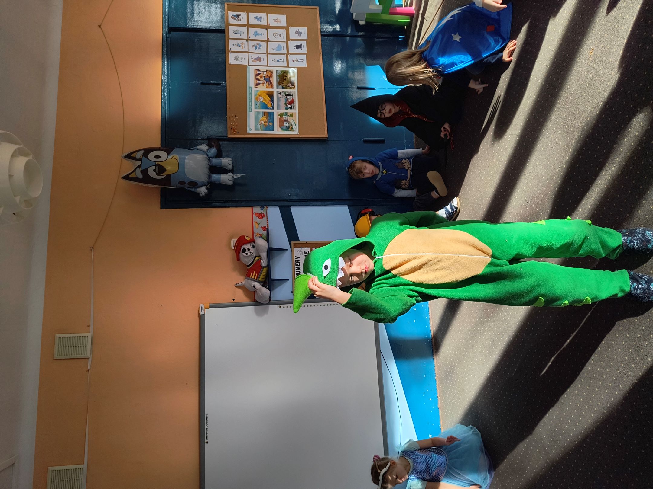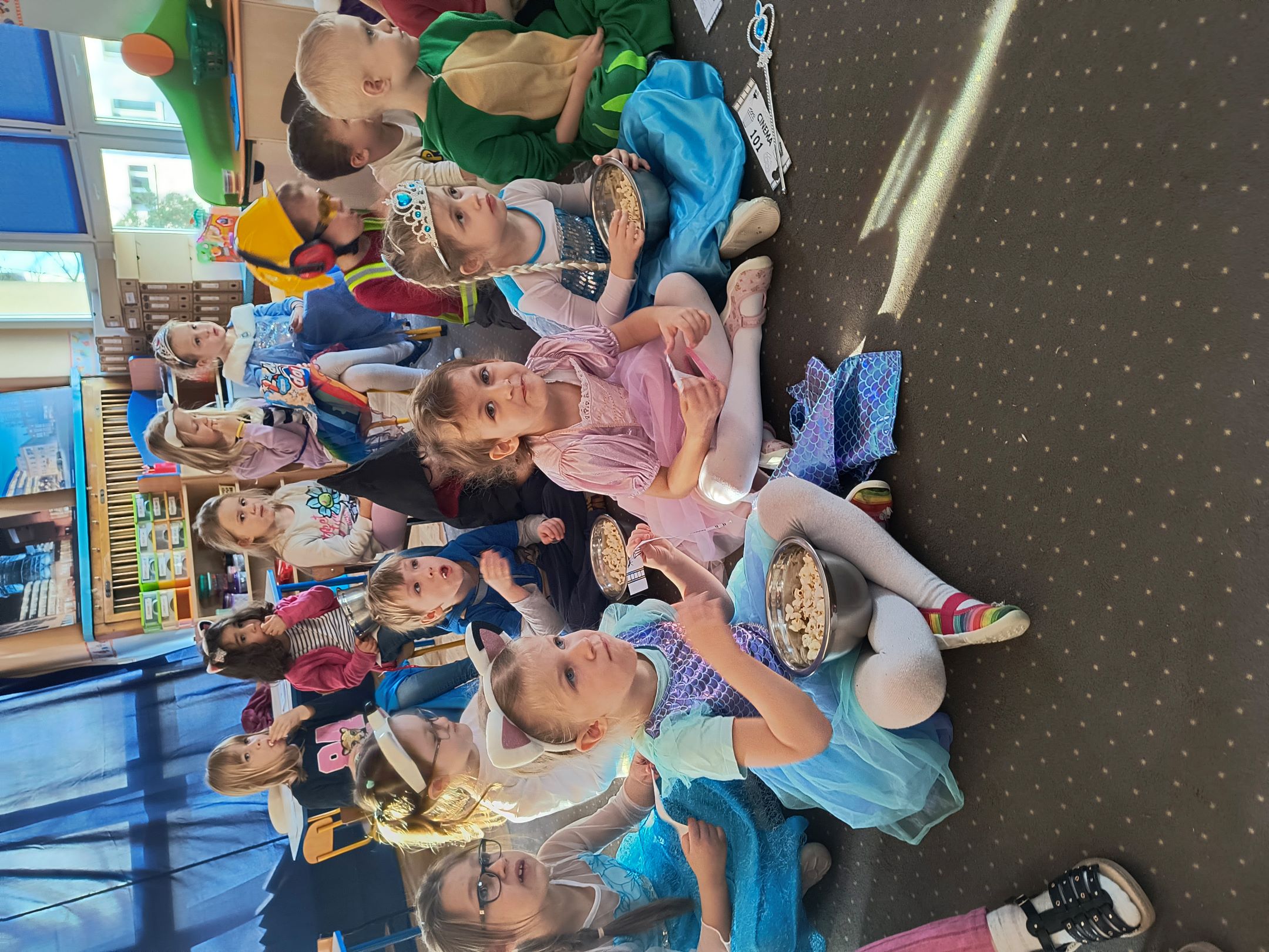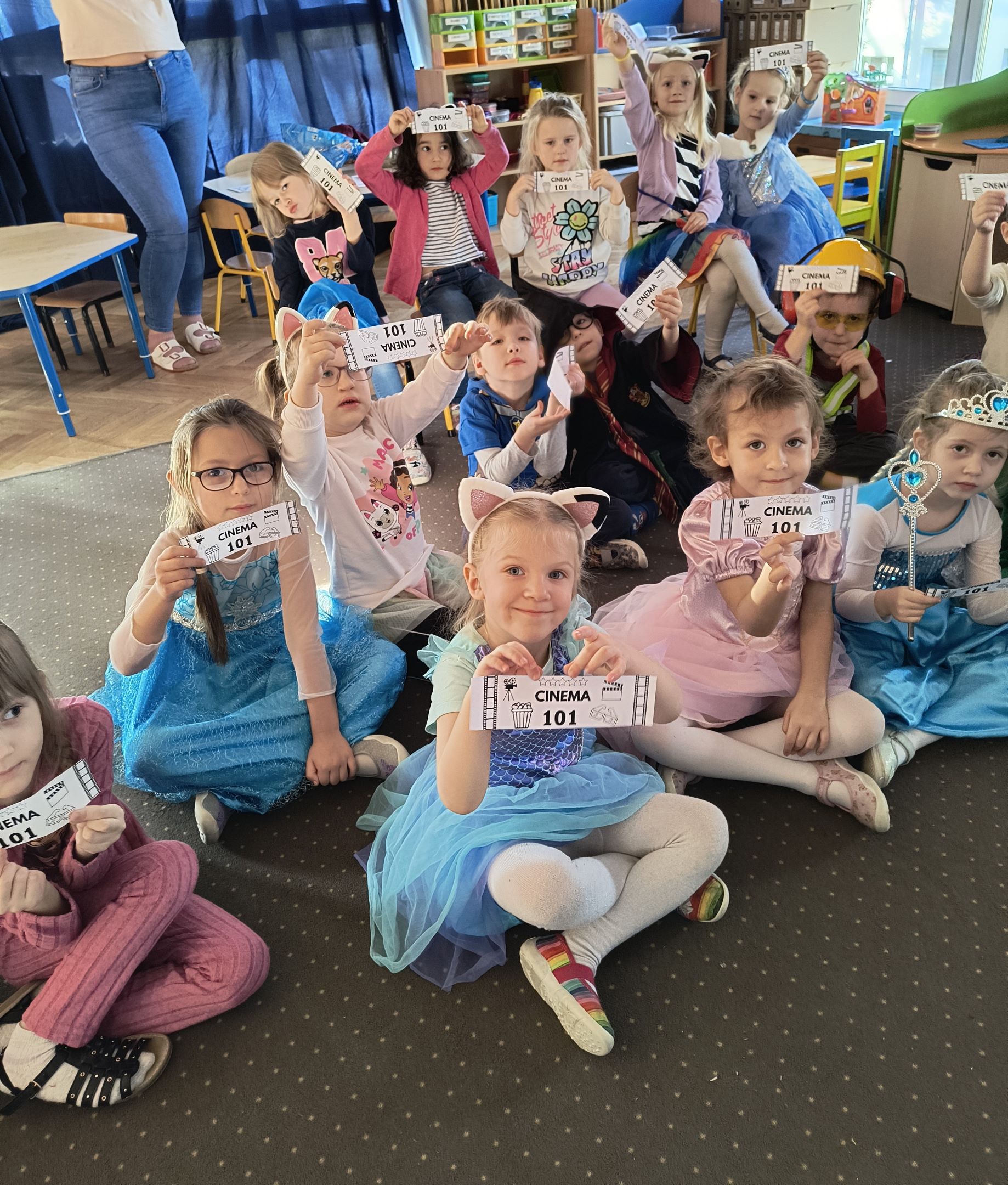 Dzisiaj grupa stokrotek przeniosła się do bajkowej krainy, obchodziliśmy wspólnie Dzień Postaci z Bajek. Dzień zaczął się od wspólnego powitania i parady kostiumów – każde dziecko miało okazję zaprezentować swój strój i powiedzieć, za kogo się przebrało. Potem odbywały się zabawy ruchowe, konkursy i zagadki związane z bajkami. Dzieci również otrzymały zaproszenie do kina, gdzie każdy z nich musiał "kupić" sobie bilet,.