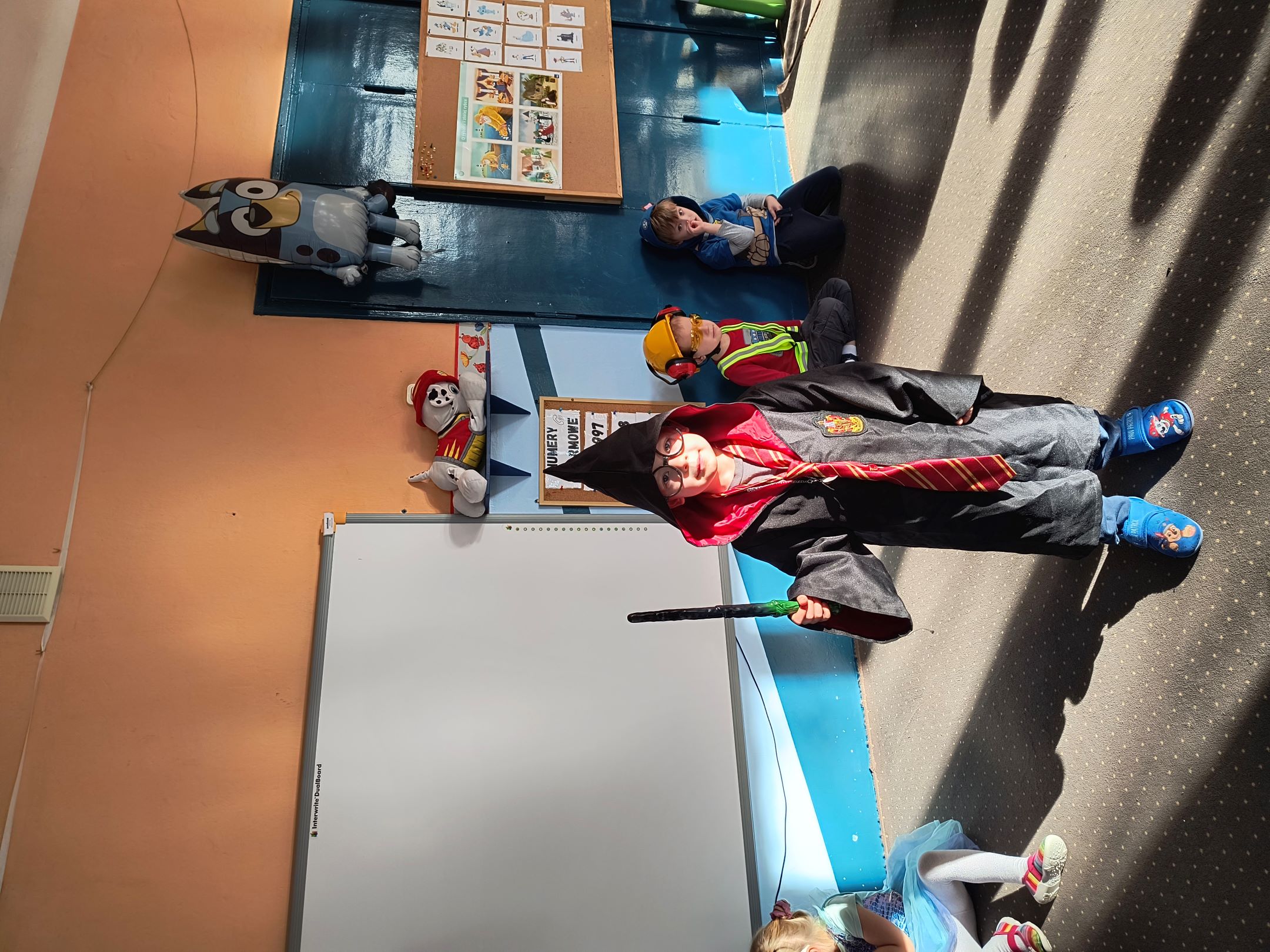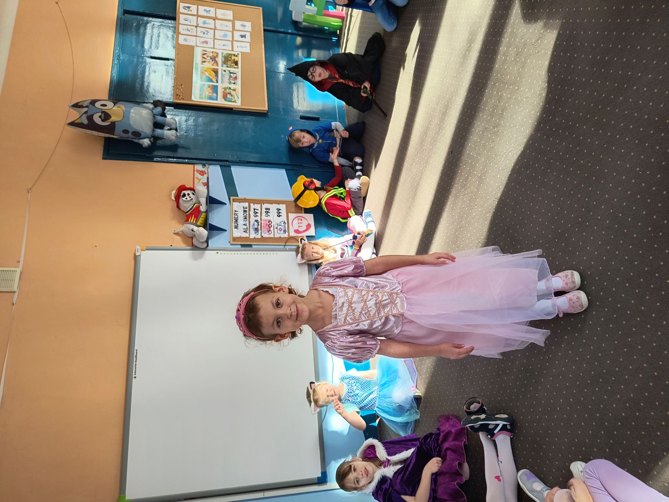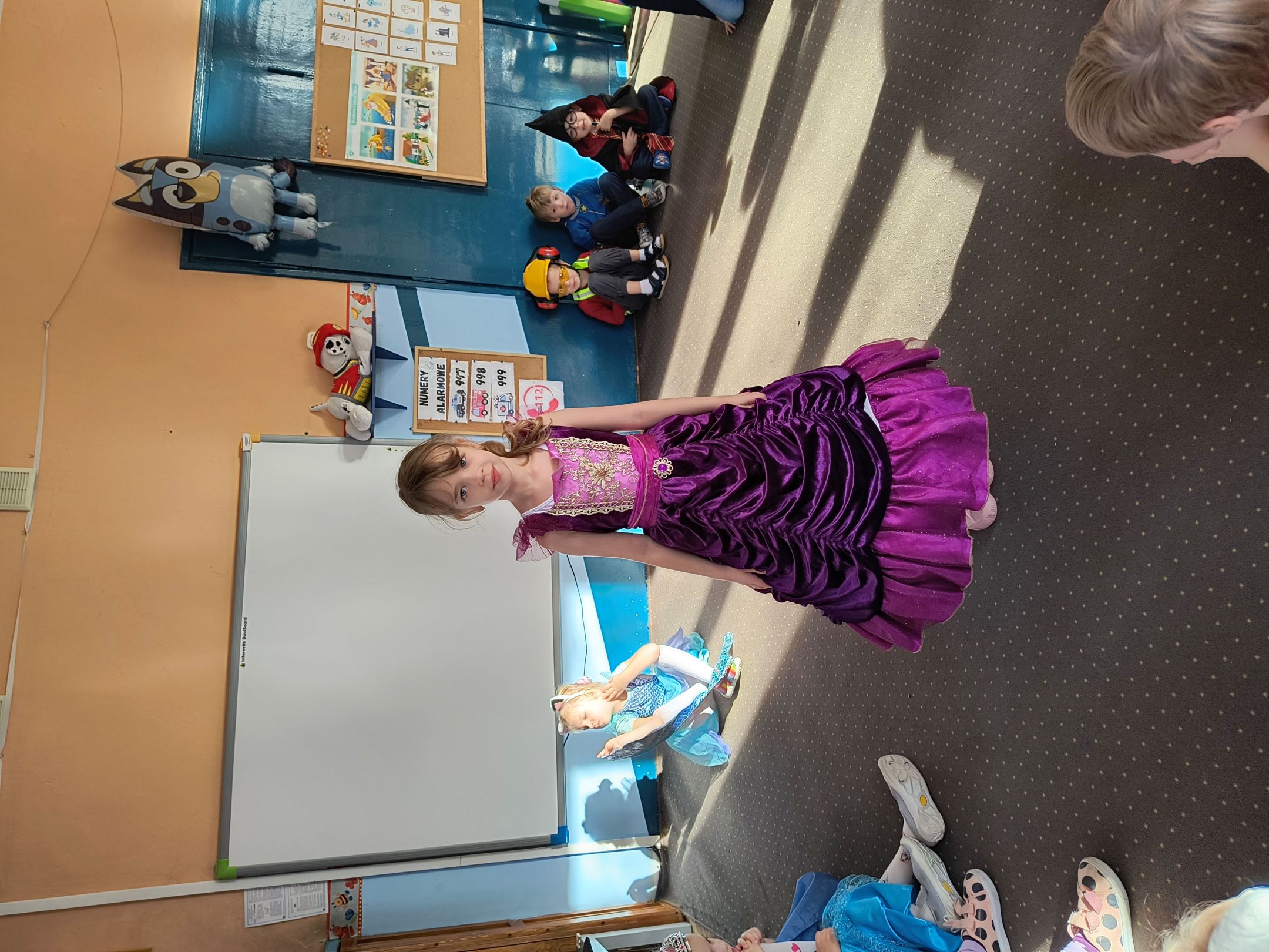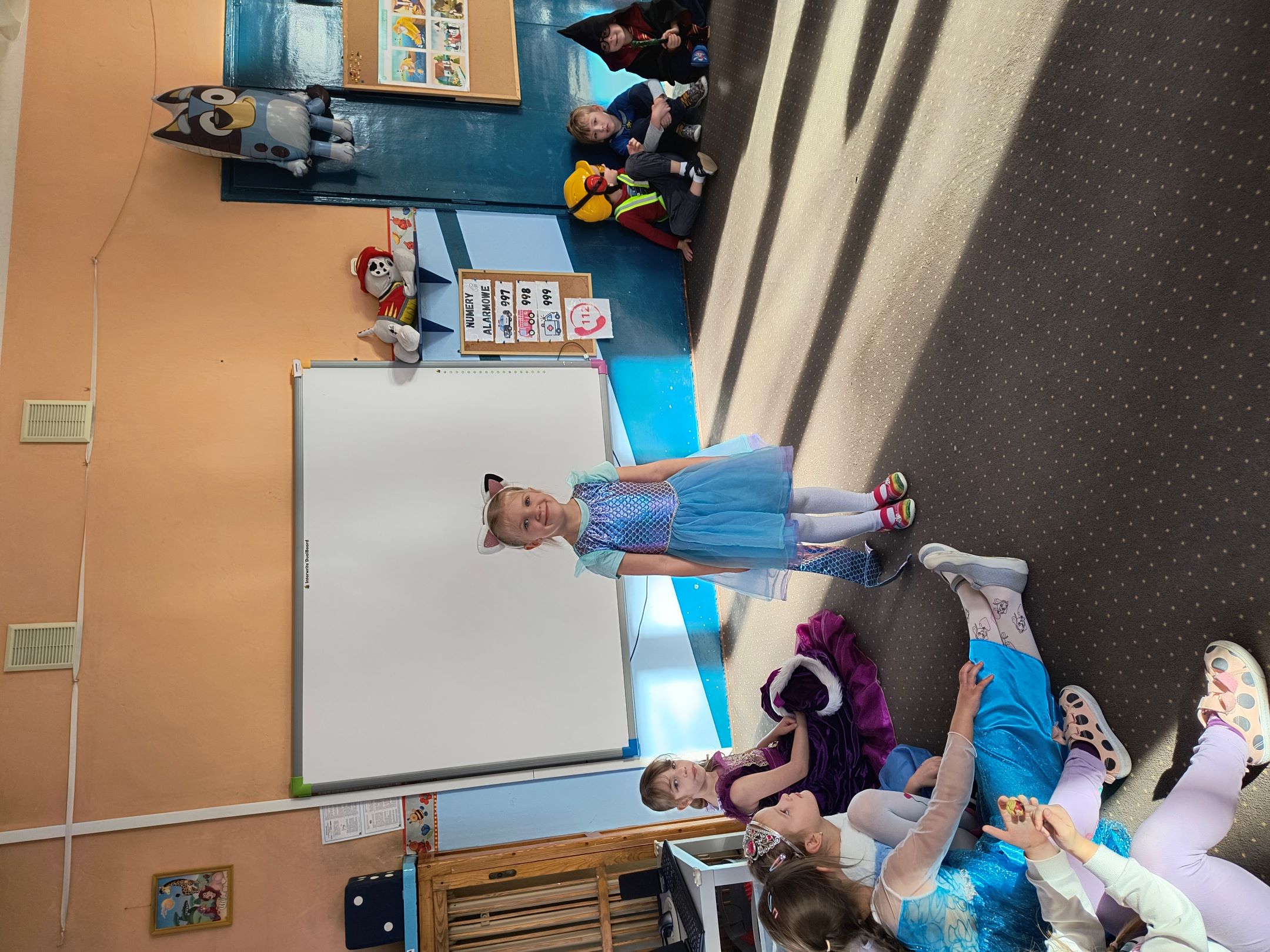 Dzisiaj grupa stokrotek przeniosła się do bajkowej krainy, obchodziliśmy wspólnie Dzień Postaci z Bajek. Dzień zaczął się od wspólnego powitania i parady kostiumów – każde dziecko miało okazję zaprezentować swój strój i powiedzieć, za kogo się przebrało. Potem odbywały się zabawy ruchowe, konkursy i zagadki związane z bajkami. Dzieci również otrzymały zaproszenie do kina, gdzie każdy z nich musiał "kupić" sobie bilet,.