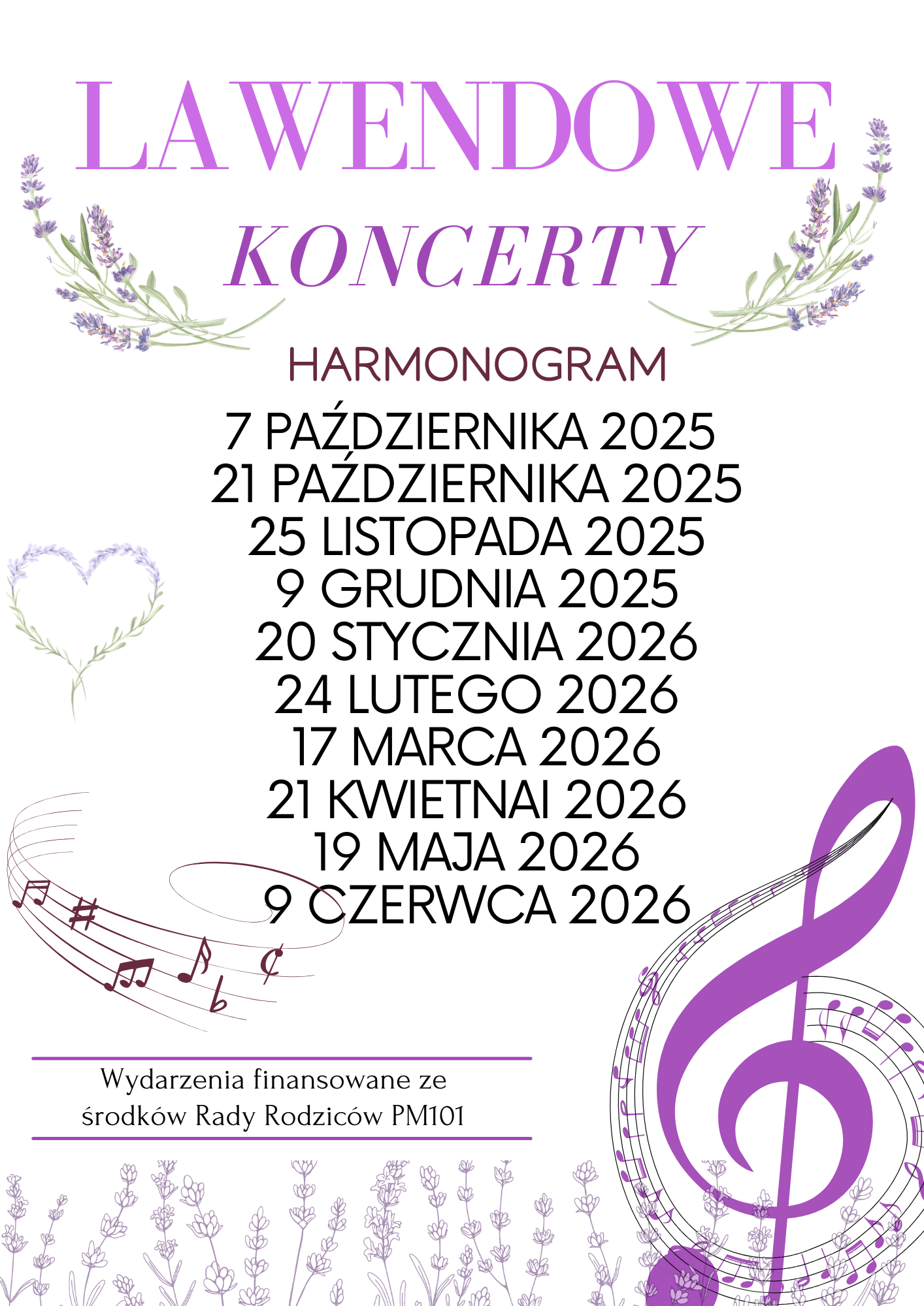 raz w miesiącu w naszym przedszkolu będą odbywać się "Lawendowe koncerty" dla dzieci, finansowane ze środków Rady Rodziców.