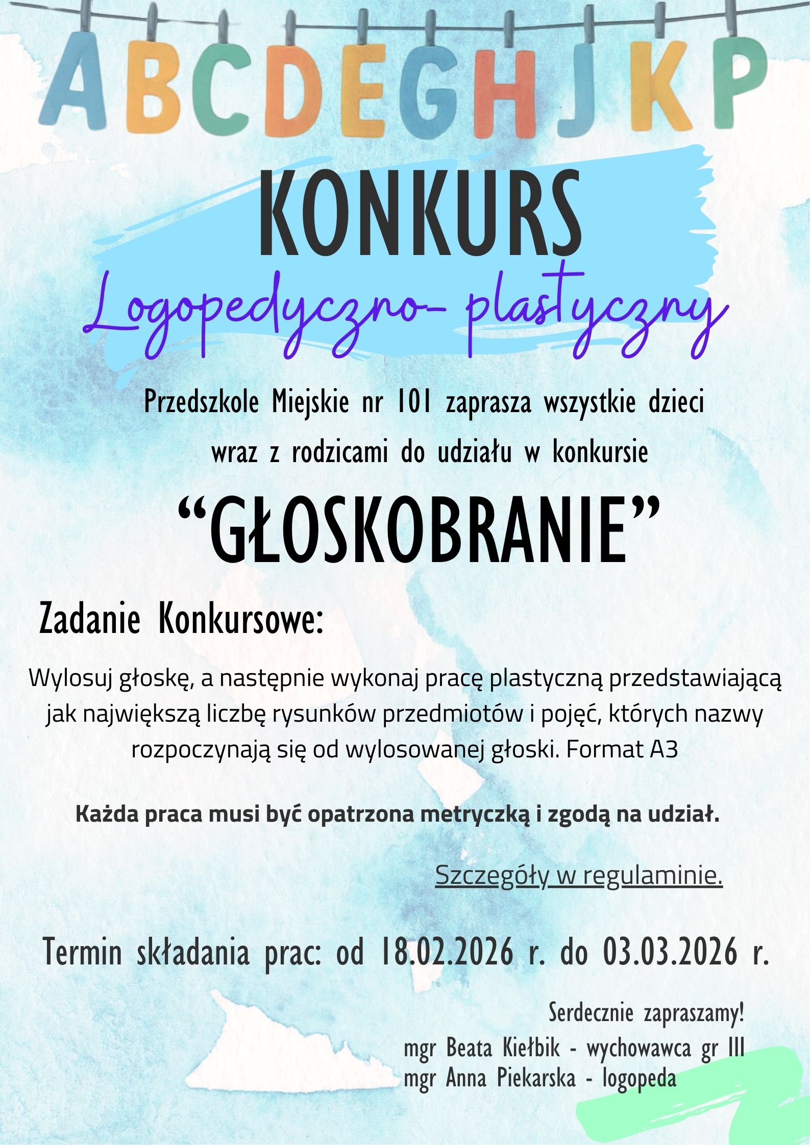 Serdecznie zachęcamy do udziału – czeka świetna zabawa oraz twórcze emocje. Niech głoski zamienią się w kolorowe obrazki!