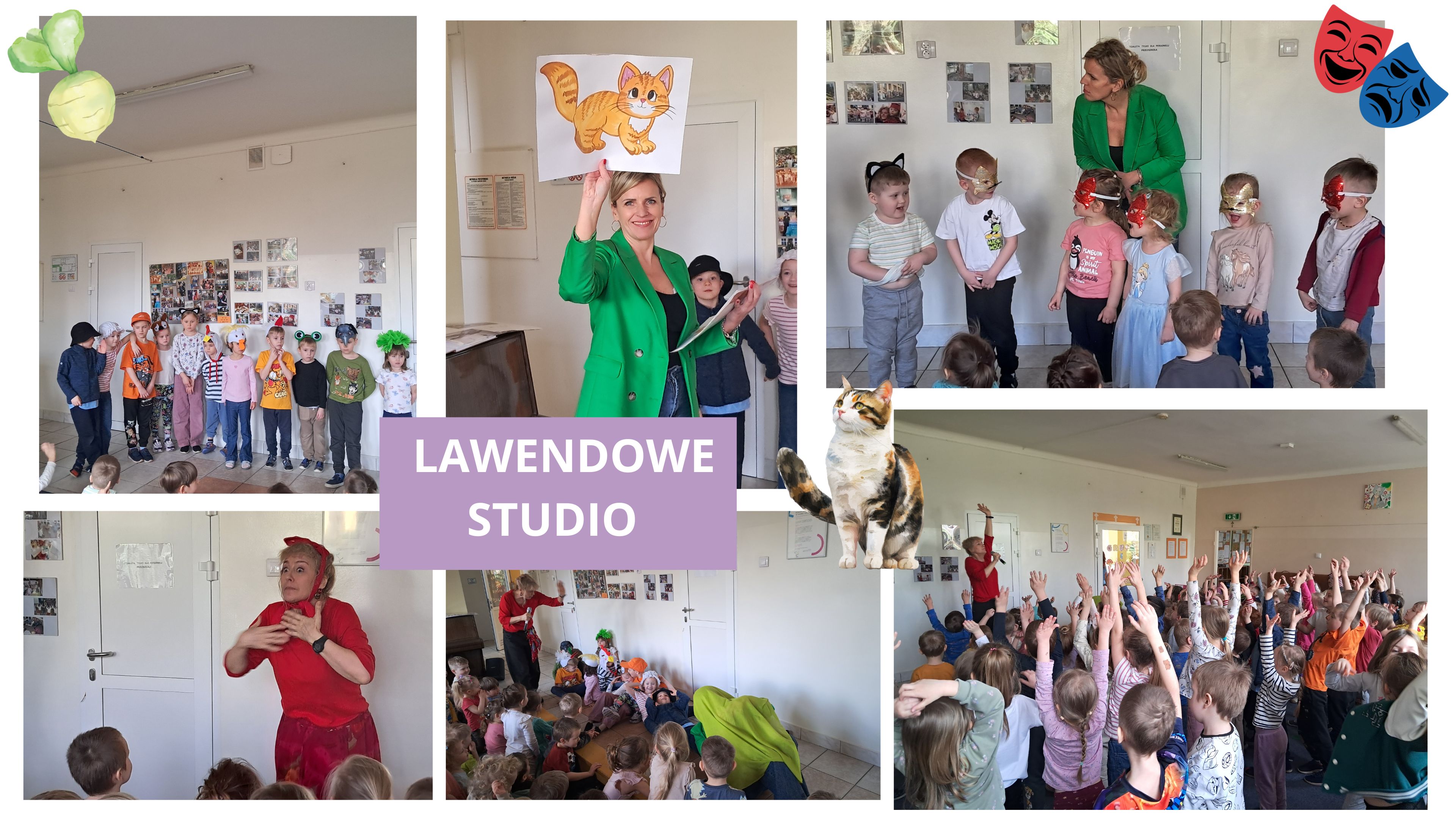Lawendowy Koncert był nie tylko pełen muzyki i zabawy, ale zawierał również elementy aktorstwa. Spotkanie rozpoczęło się od ćwiczeń językowo-oddechowych, które pomogły usprawnić aparat mowy – niezbędny w pracy aktora. Następnie przedszkolaki brały udział w zabawie polegającej na odgadywaniu bajek na podstawie obrazków.