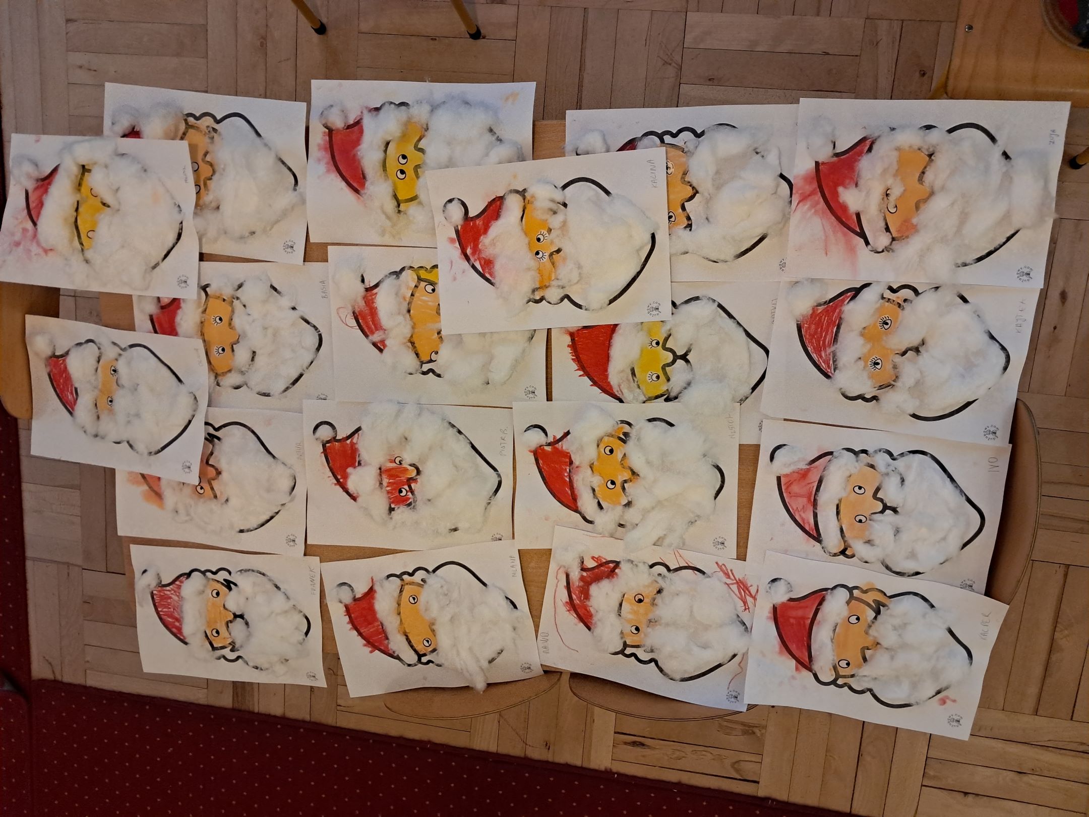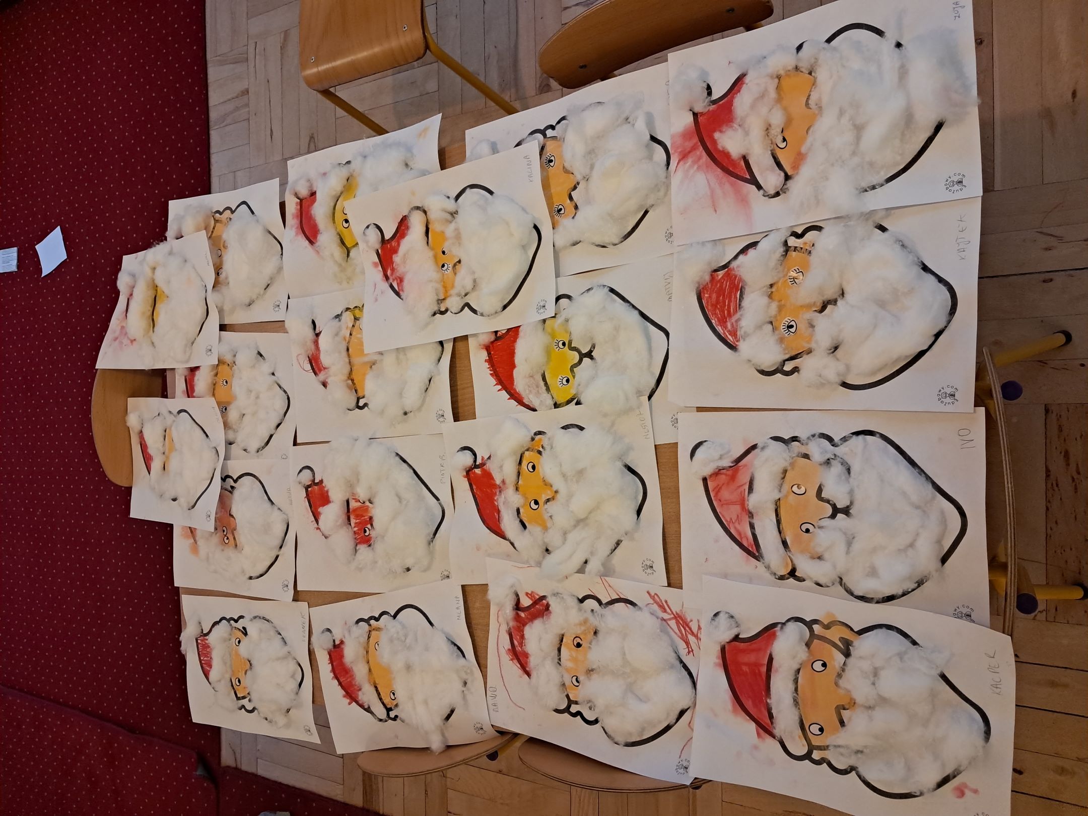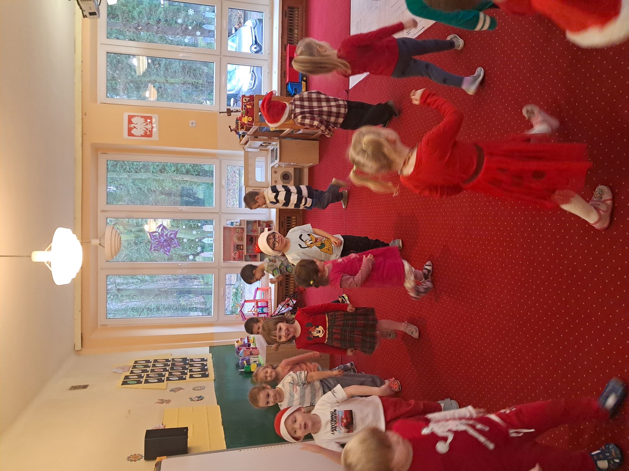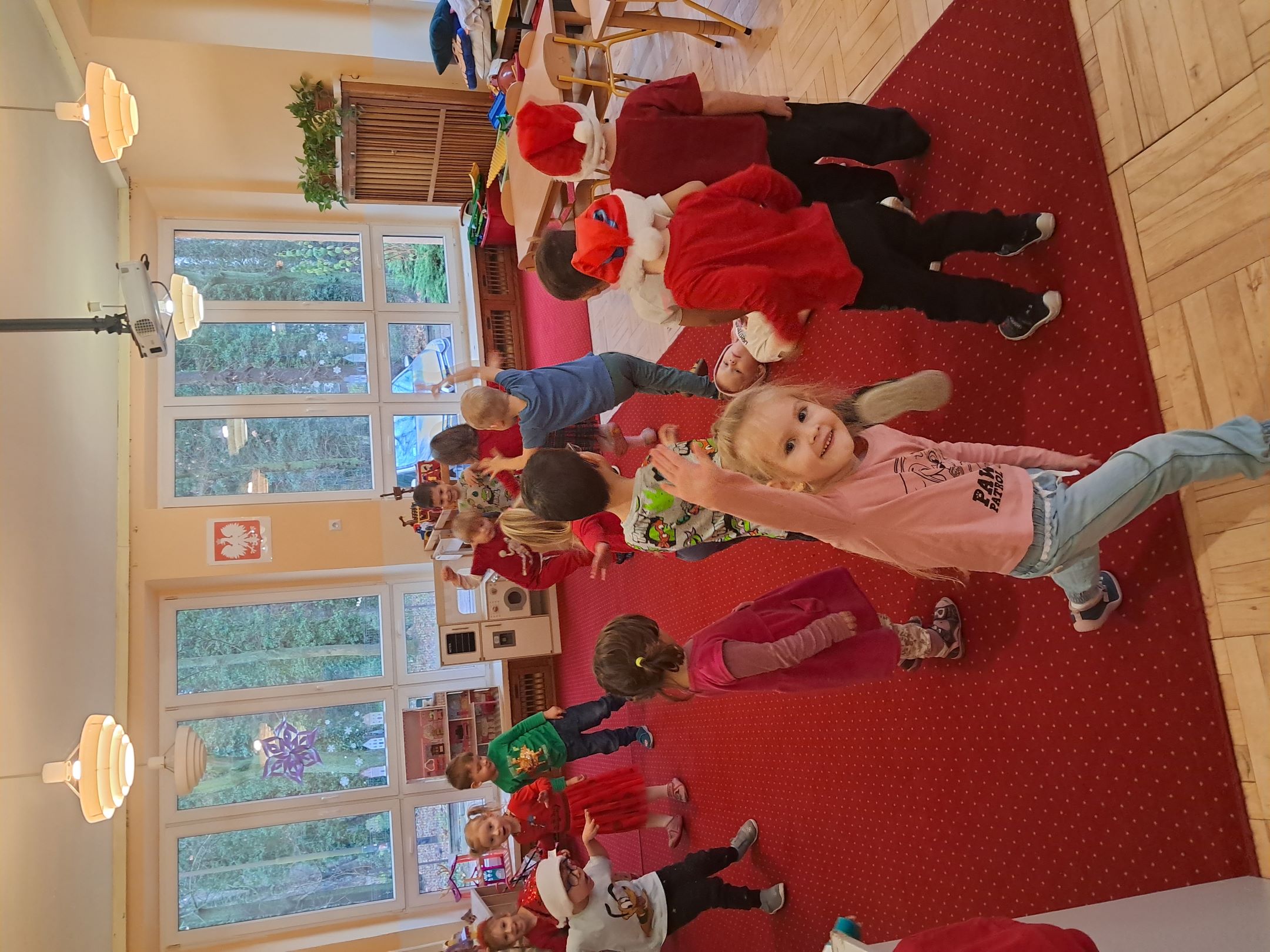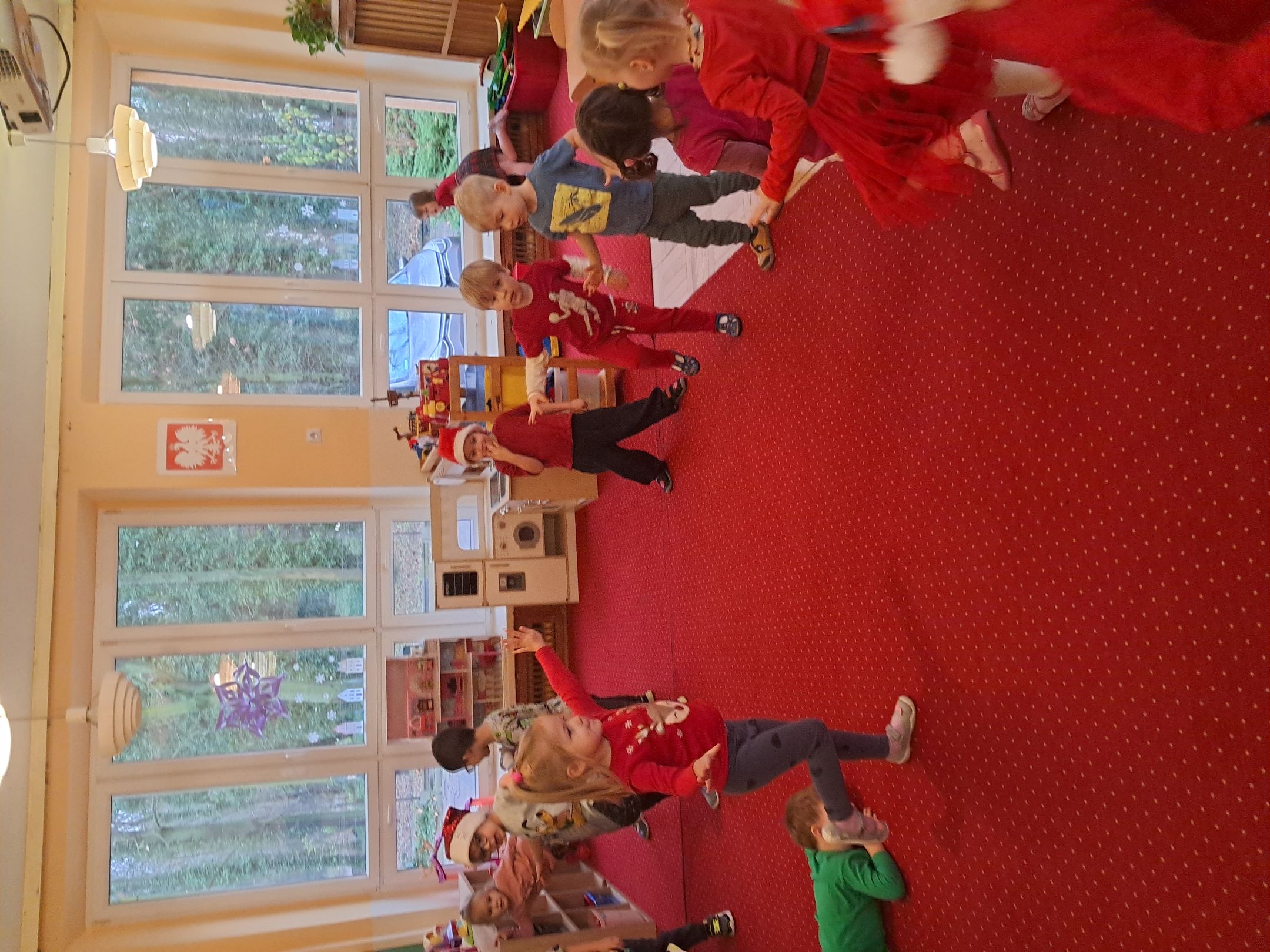 W przedszkolnej szatni w dniu 5 grudnia czekał na dzieci Mikołaj i częstował cukierkami. W sali odbyły się wesołe zabawy przy muzyce. Następnie Słoneczka pomagały w ubieraniu choinki – wieszały bombki i ozdoby. Wykonały również prace plastyczną przedstawiającą głowę Świętego Mikołaja. Był to dzień pełen radości, uśmiechów i prawdziwej świątecznej magii