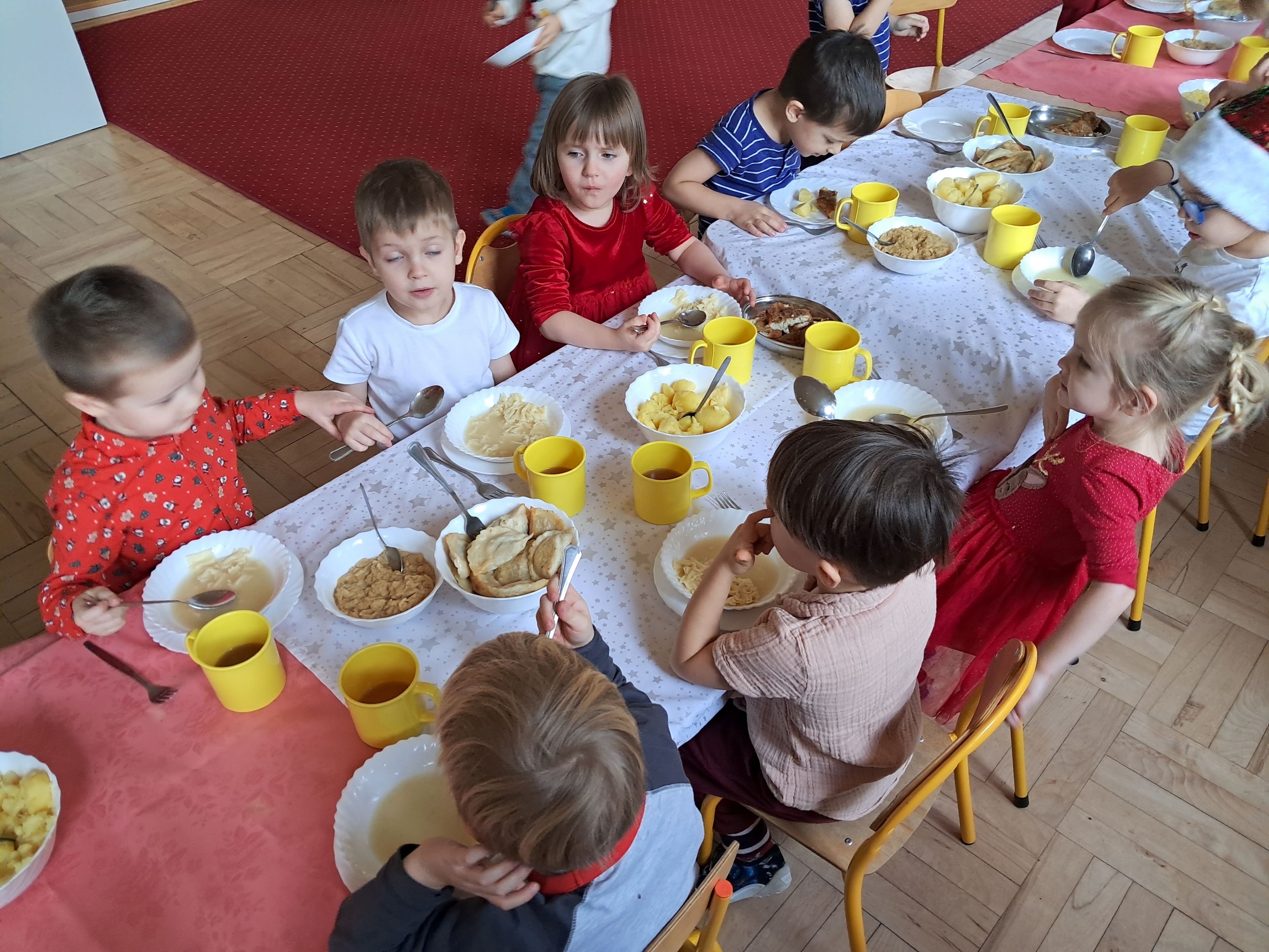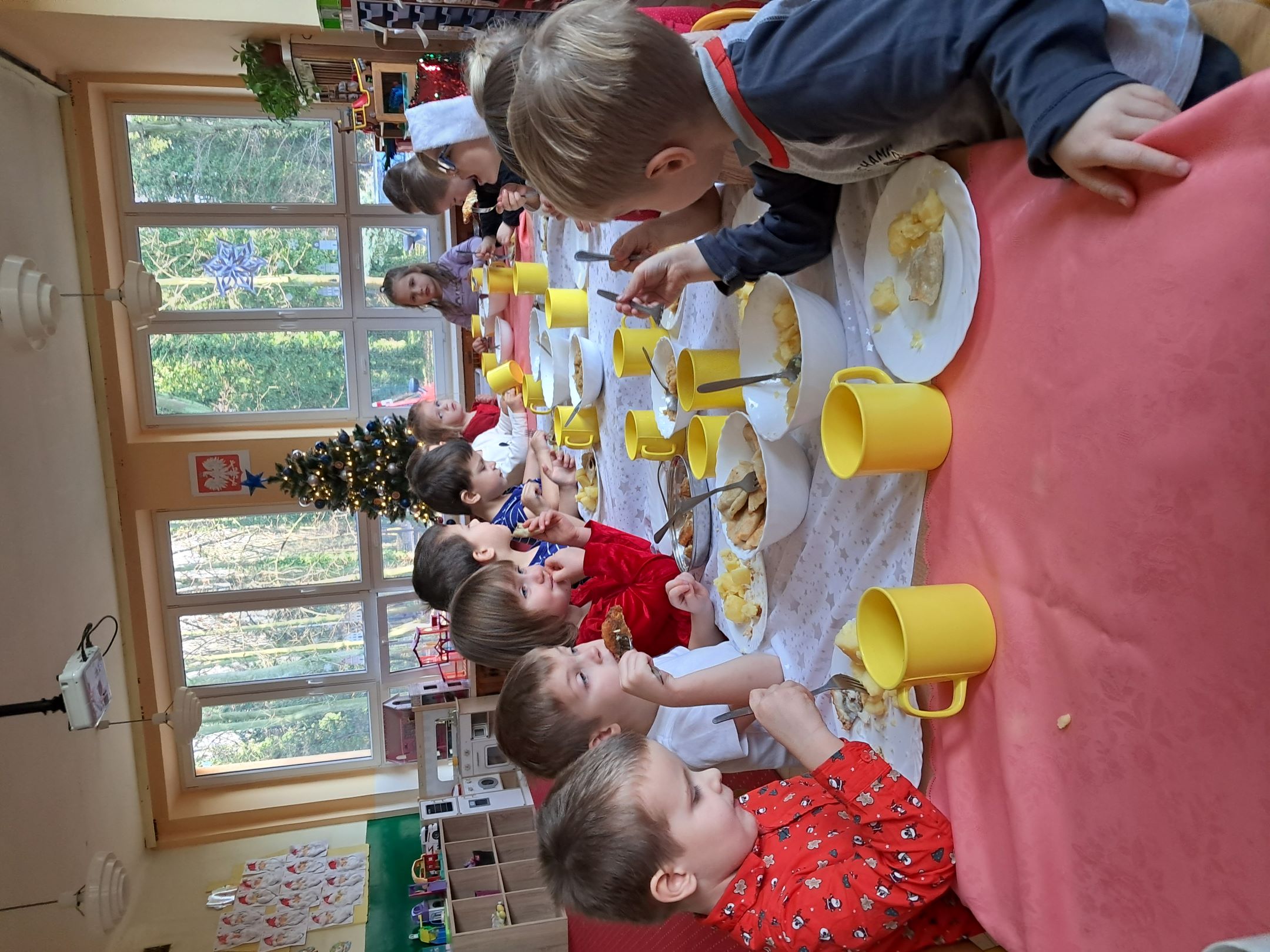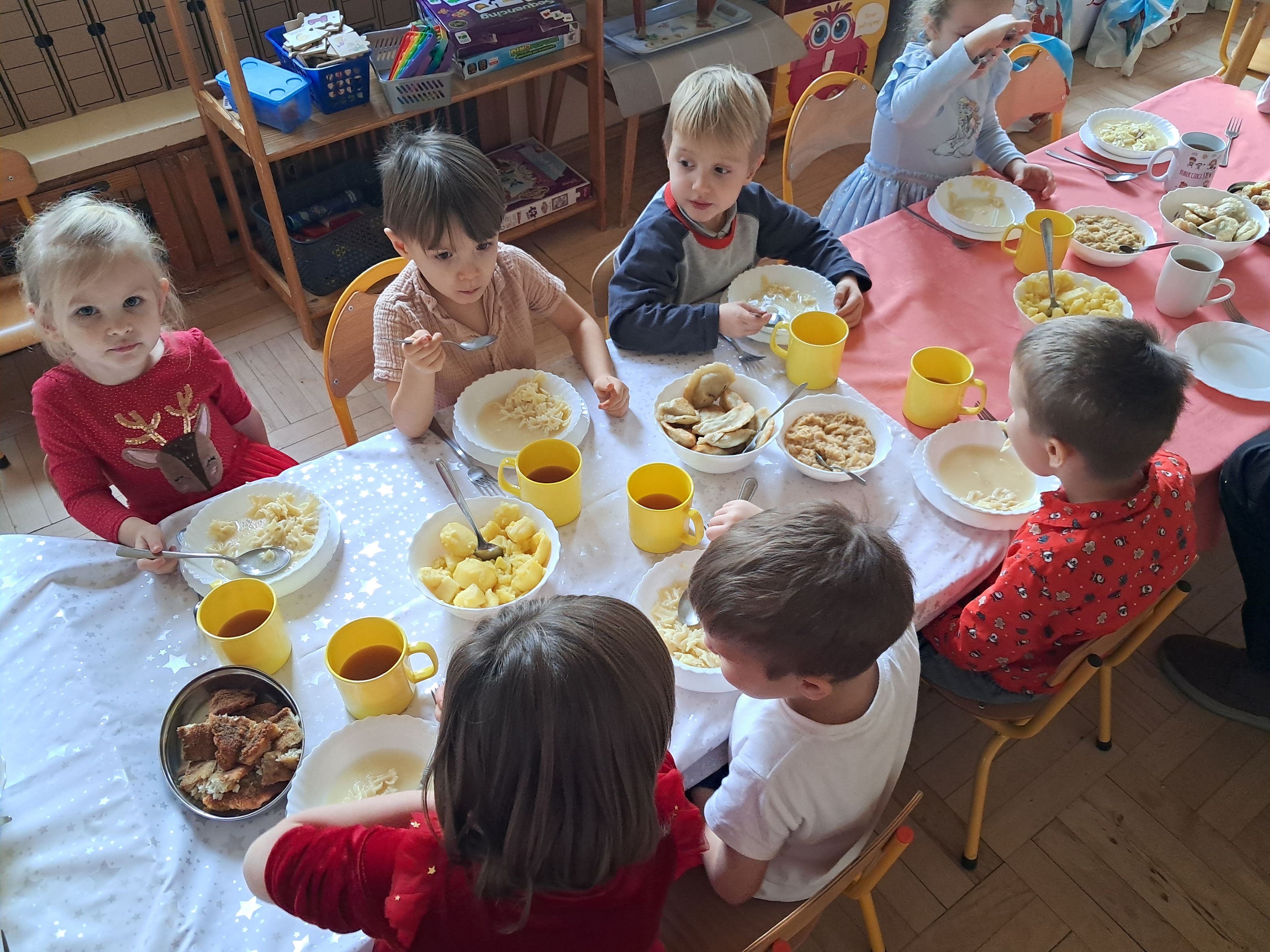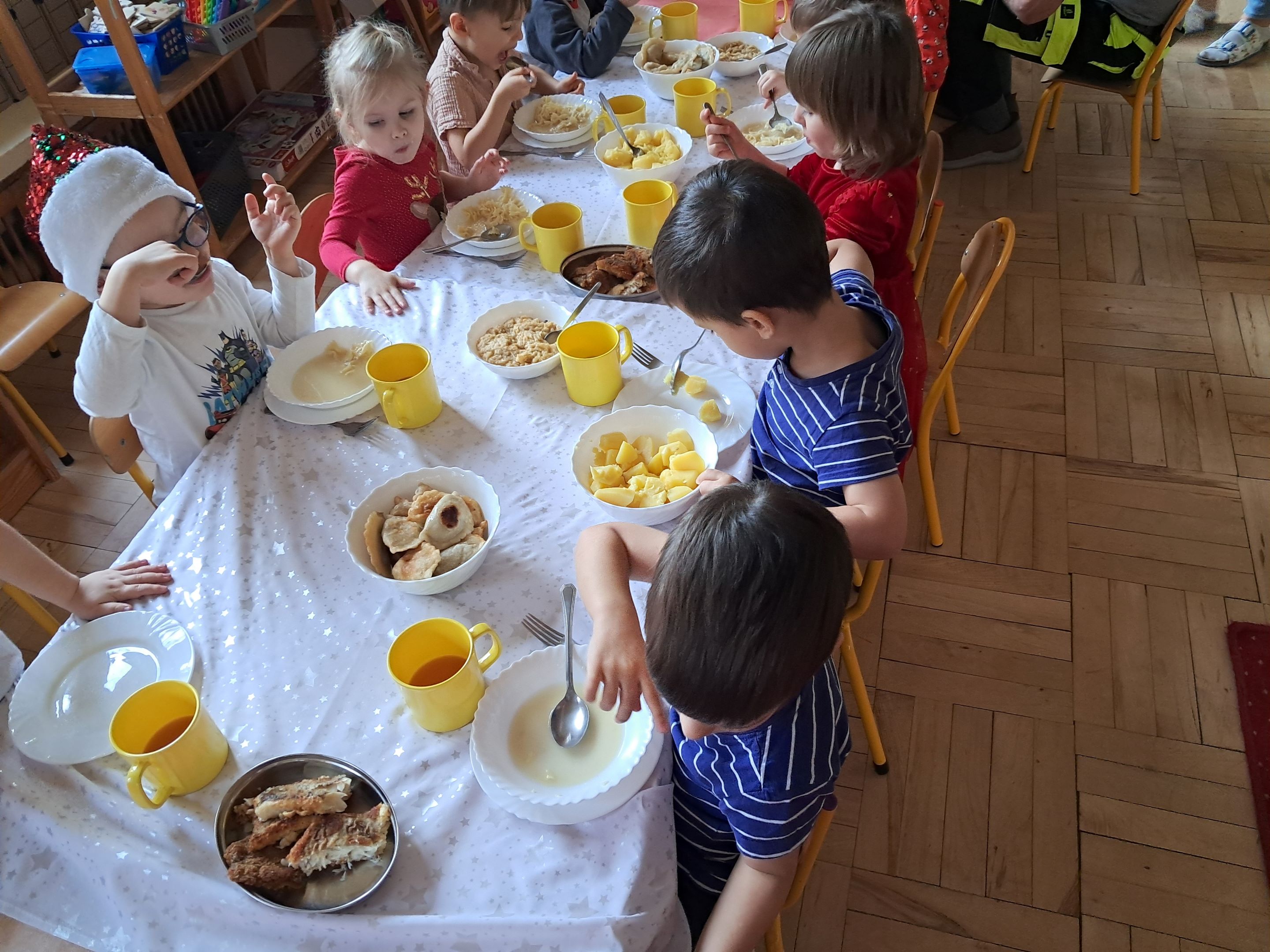 W dniu 19 grudnia panowała wyjątkowo świąteczna atmosfera, bo po spotkaniu z Mikołajem odbył się również uroczysty obiad wigilijny przy pięknie udekorowanym stole, pełen ciepła, życzliwości i świątecznego nastroju.