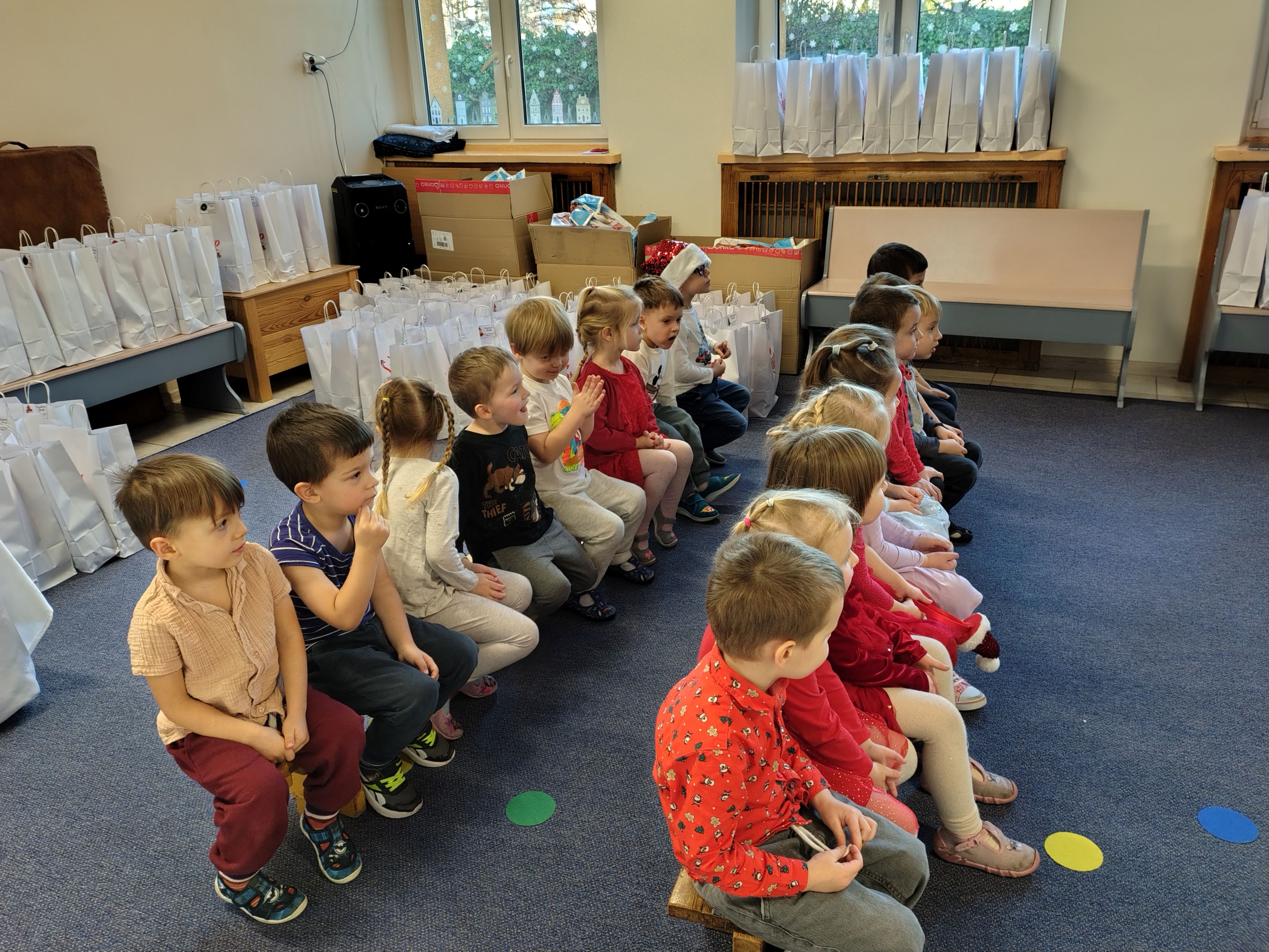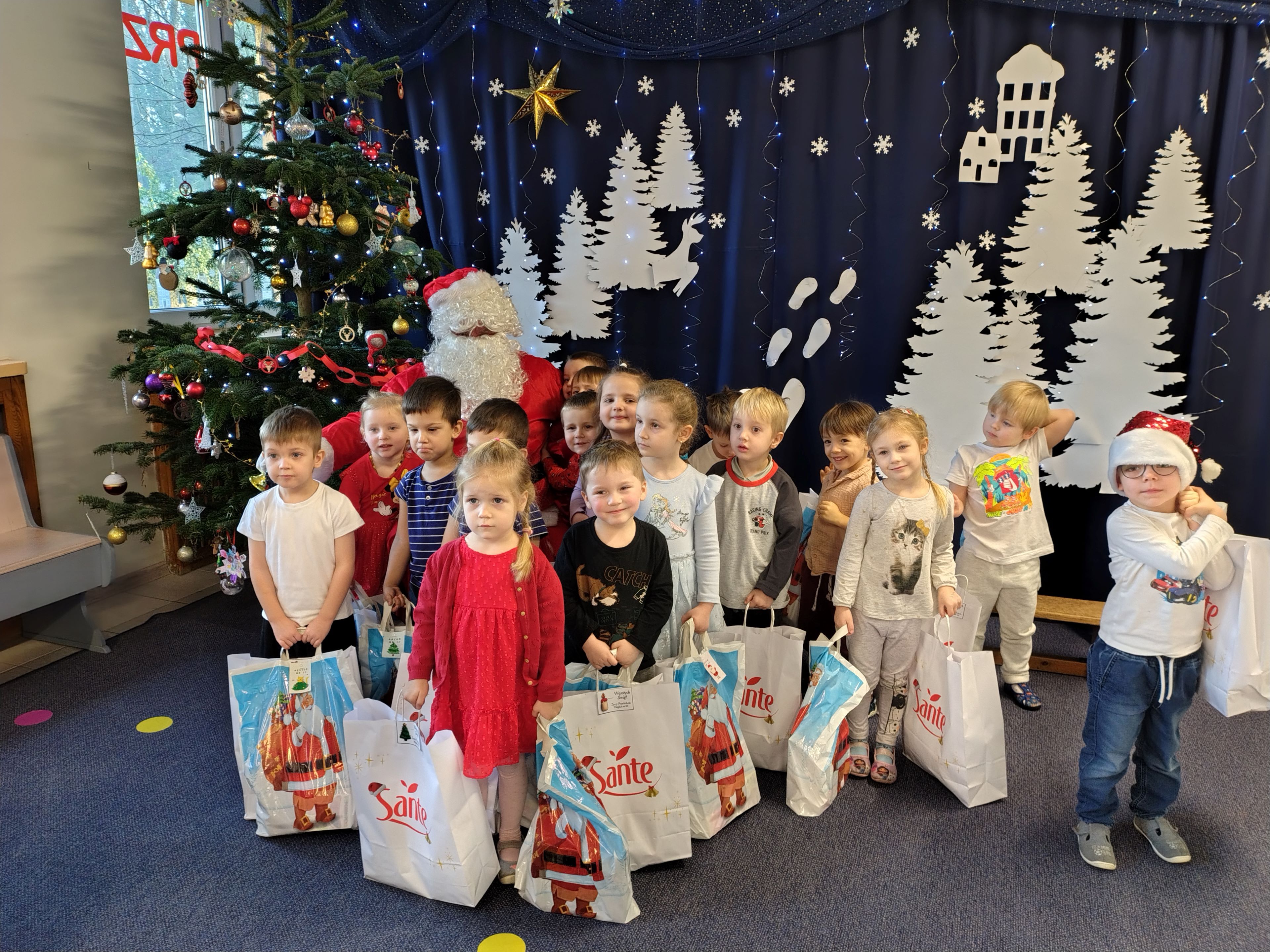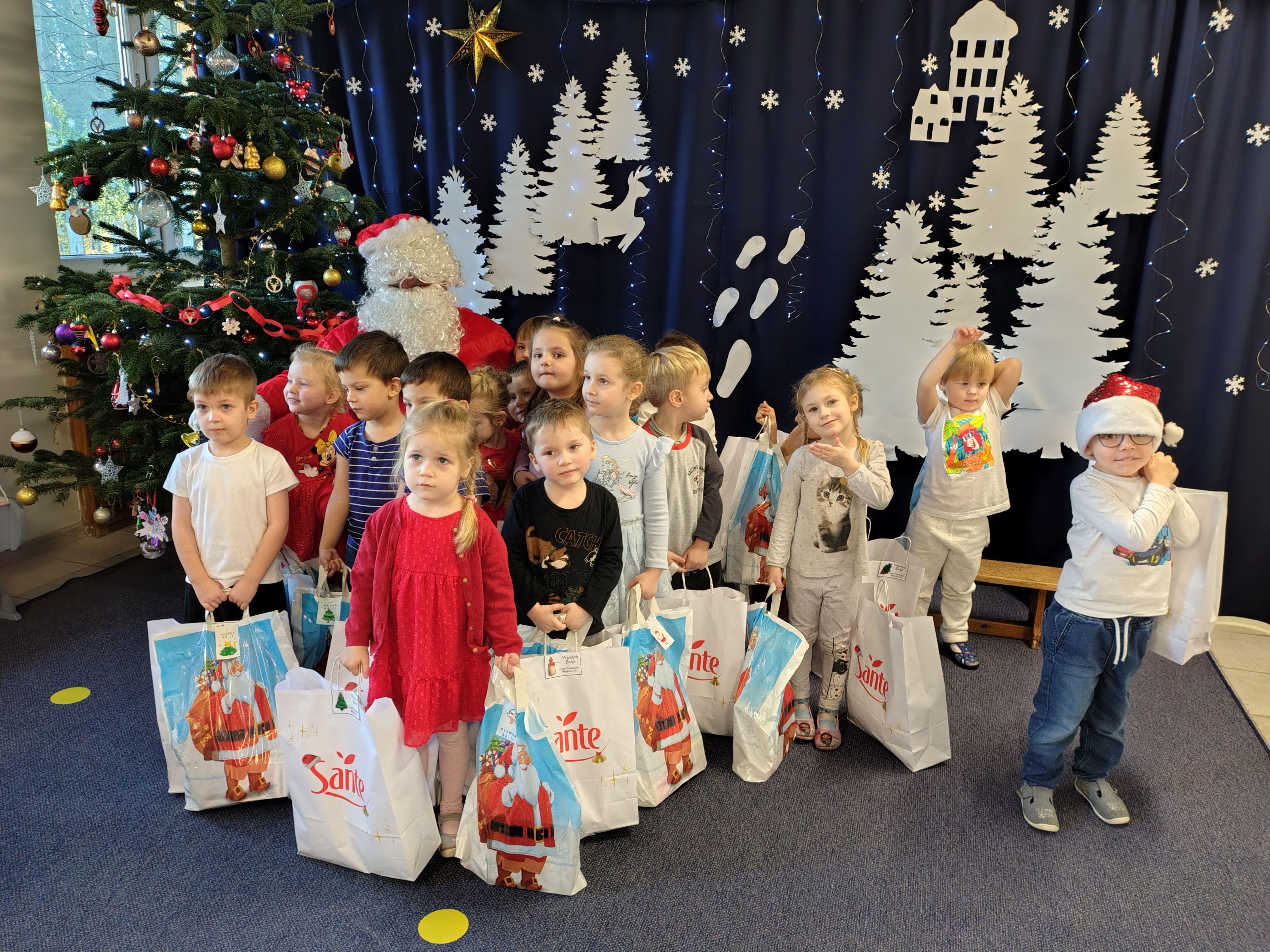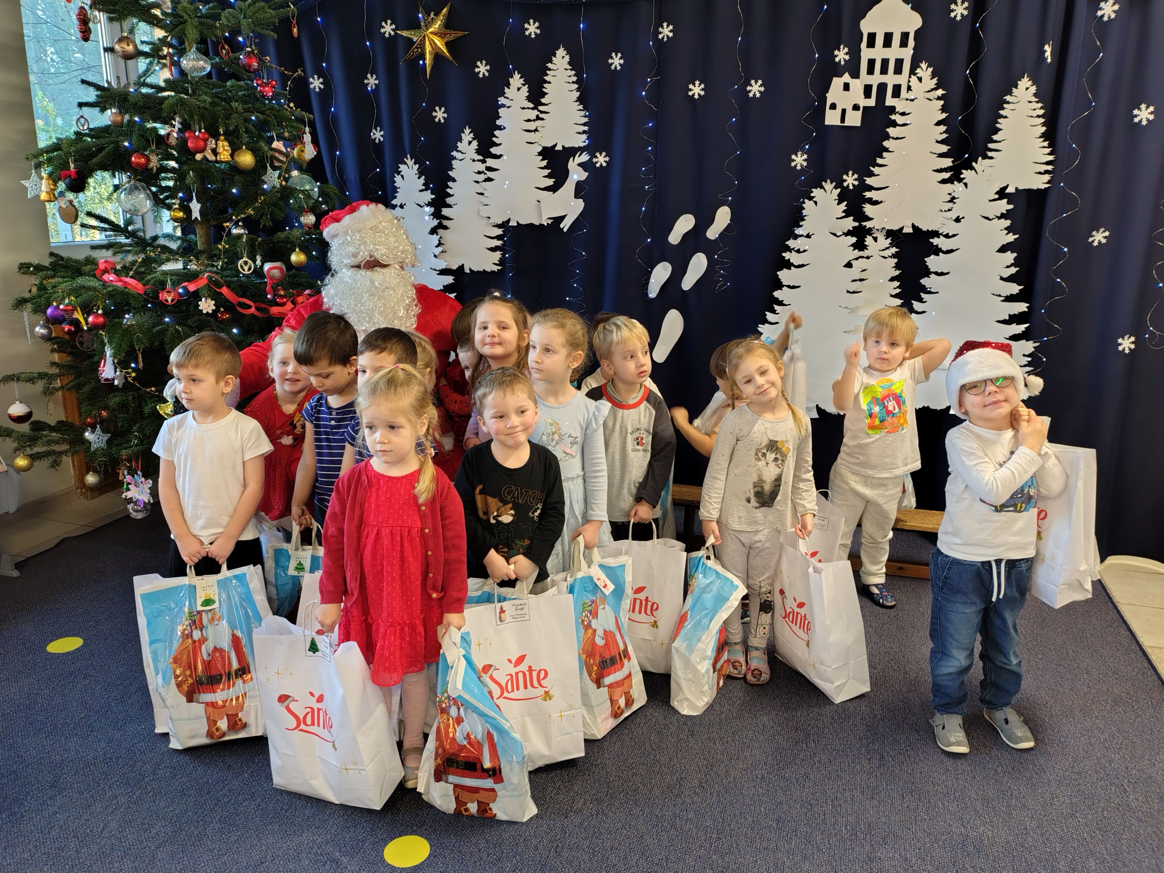 W dniu 19 grudnia nasze przedszkole odwiedził Mikołaj!!! Chyba byliśmy grzeczni Zaśpiewaliśmy mu piosenkę, a on obdarował nas prezentami!! Teraz cały następny rok musimy się starać być grzecznymi, tak jak obiecaliśmy Mikołajowi bo będzie patrzył...