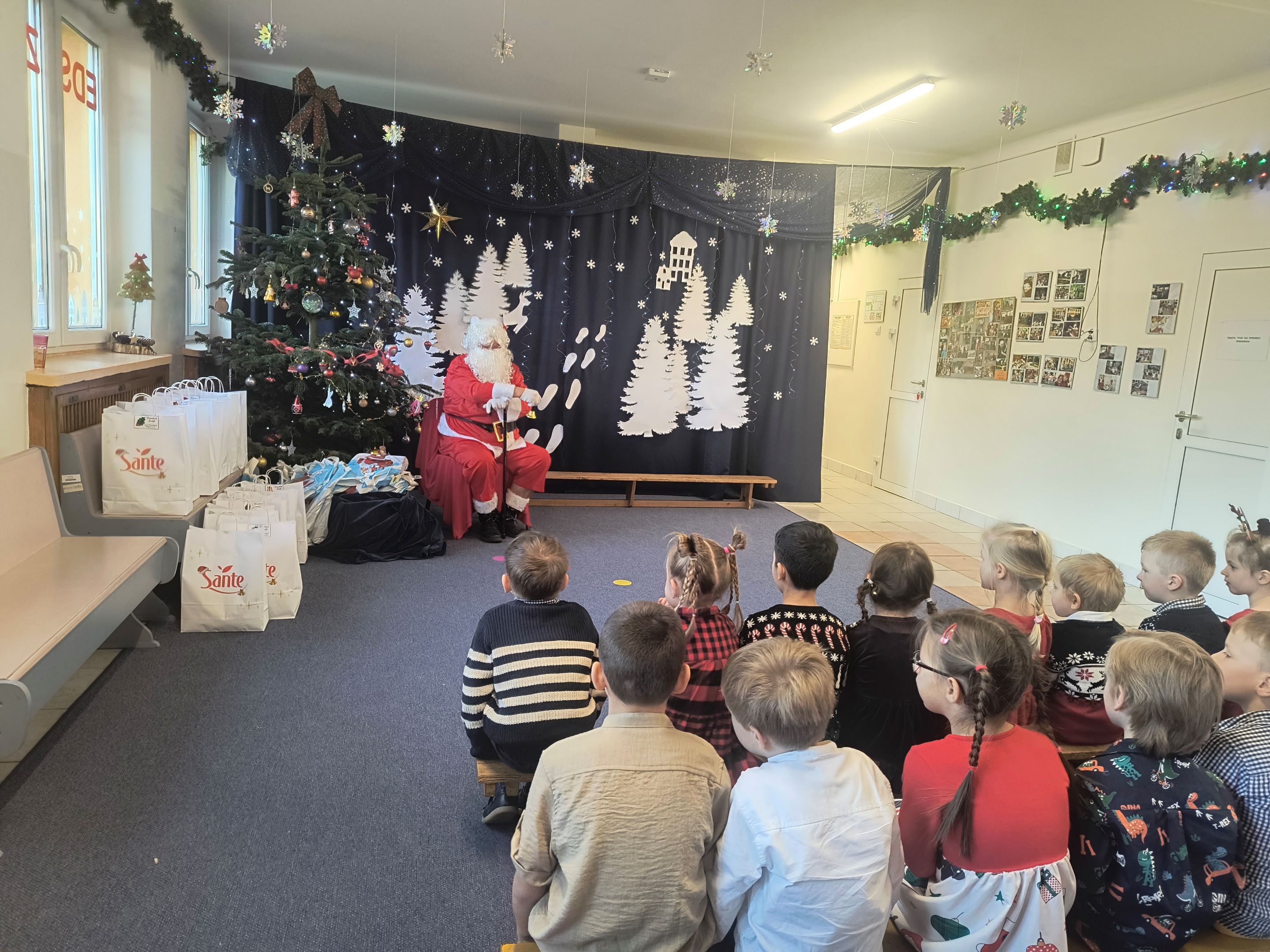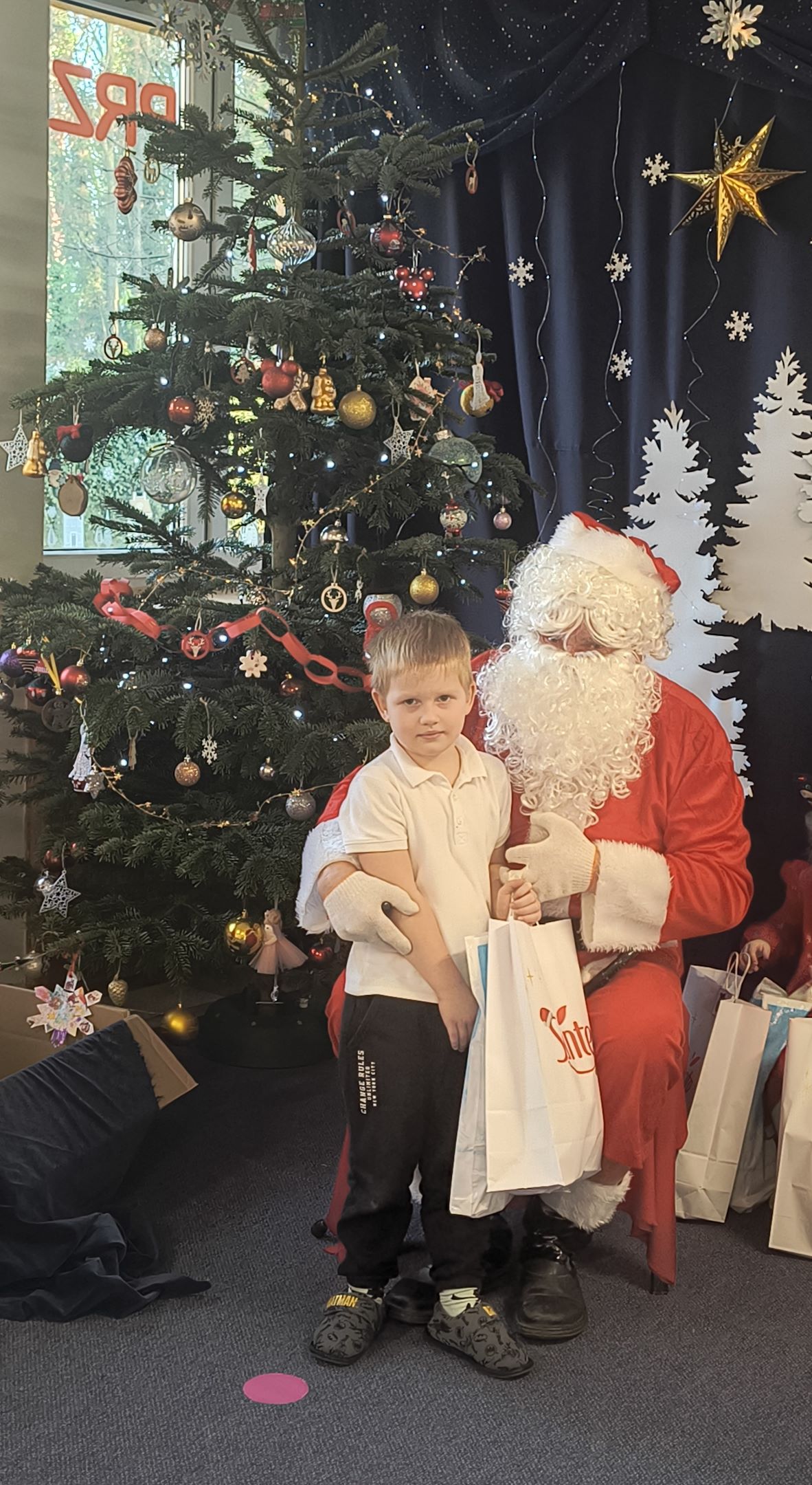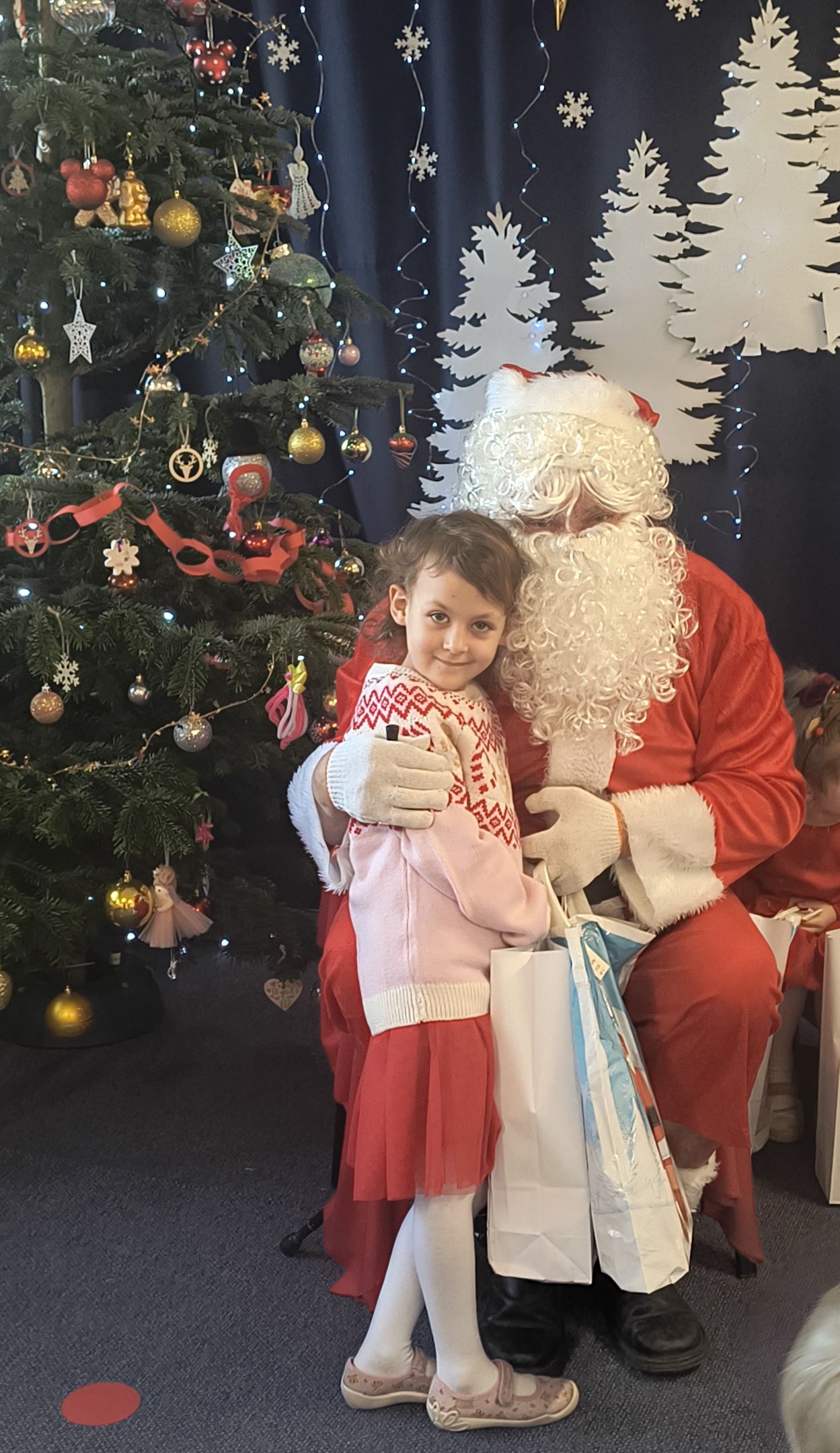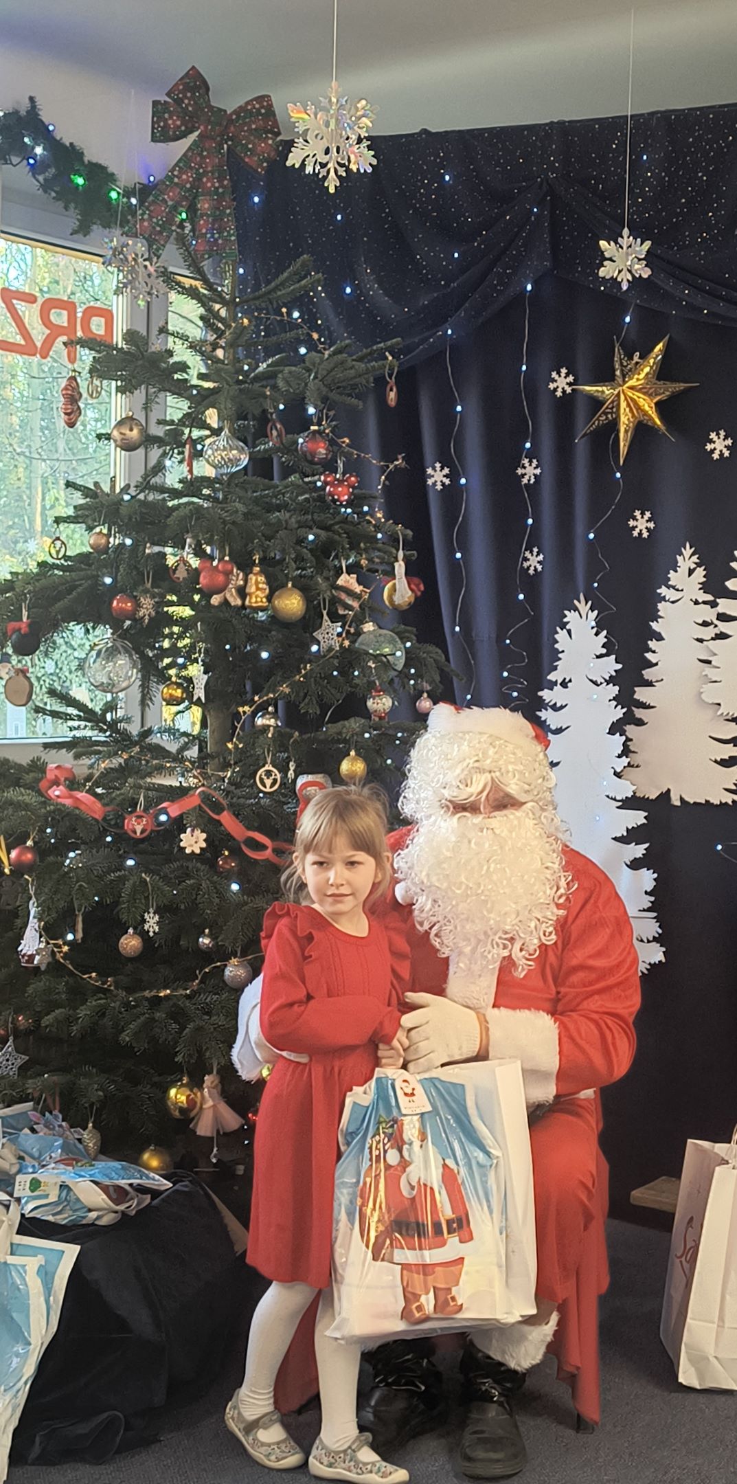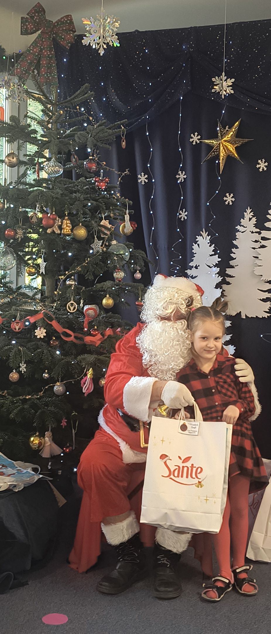 W naszym przedszkolu panowała wyjątkowa, świąteczna atmosfera. Dzieci z radością powitały Świętego Mikołaja, który wręczył im paczki świąteczne, wywołując wiele uśmiechów i radości. Następnie w grupach odbył się uroczysty obiad wigilijny przy pięknie udekorowanym stole, pełen ciepła, życzliwości i świątecznego nastroju.