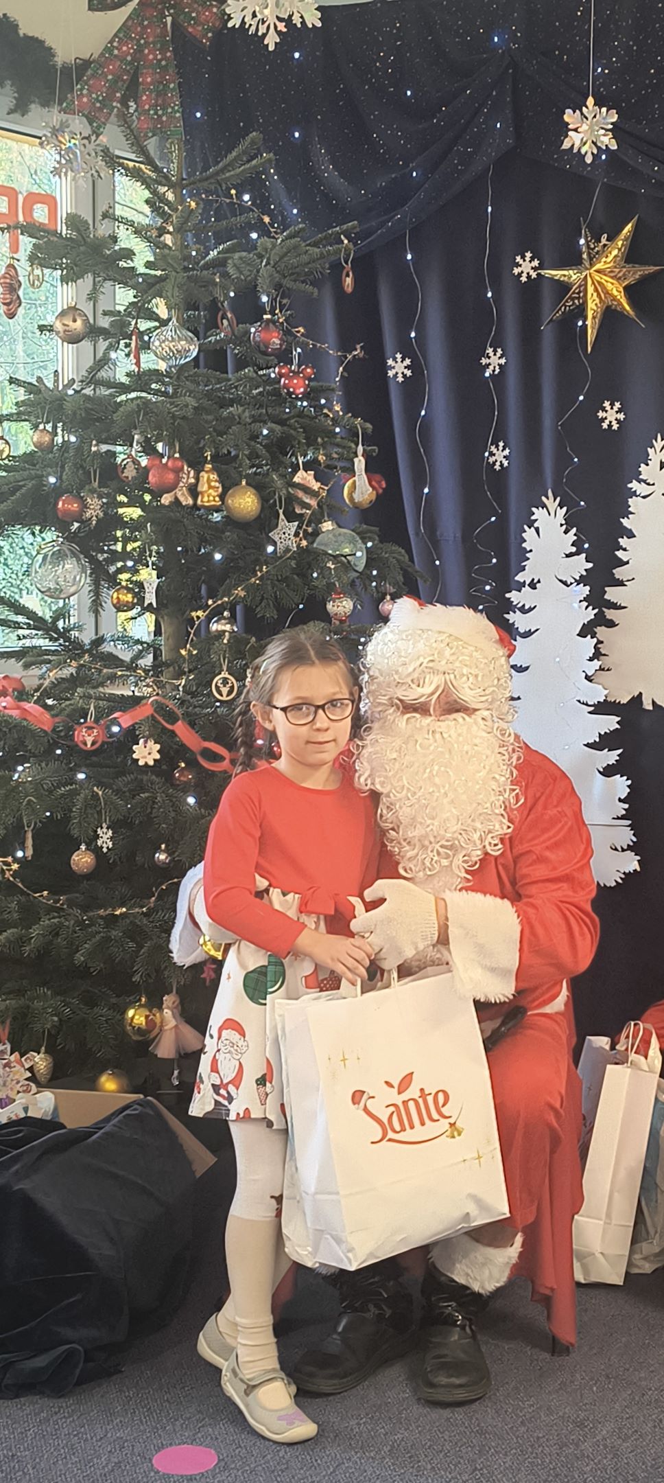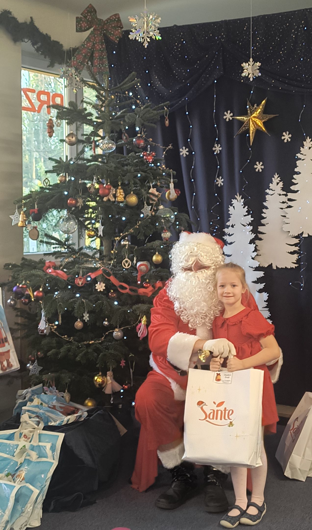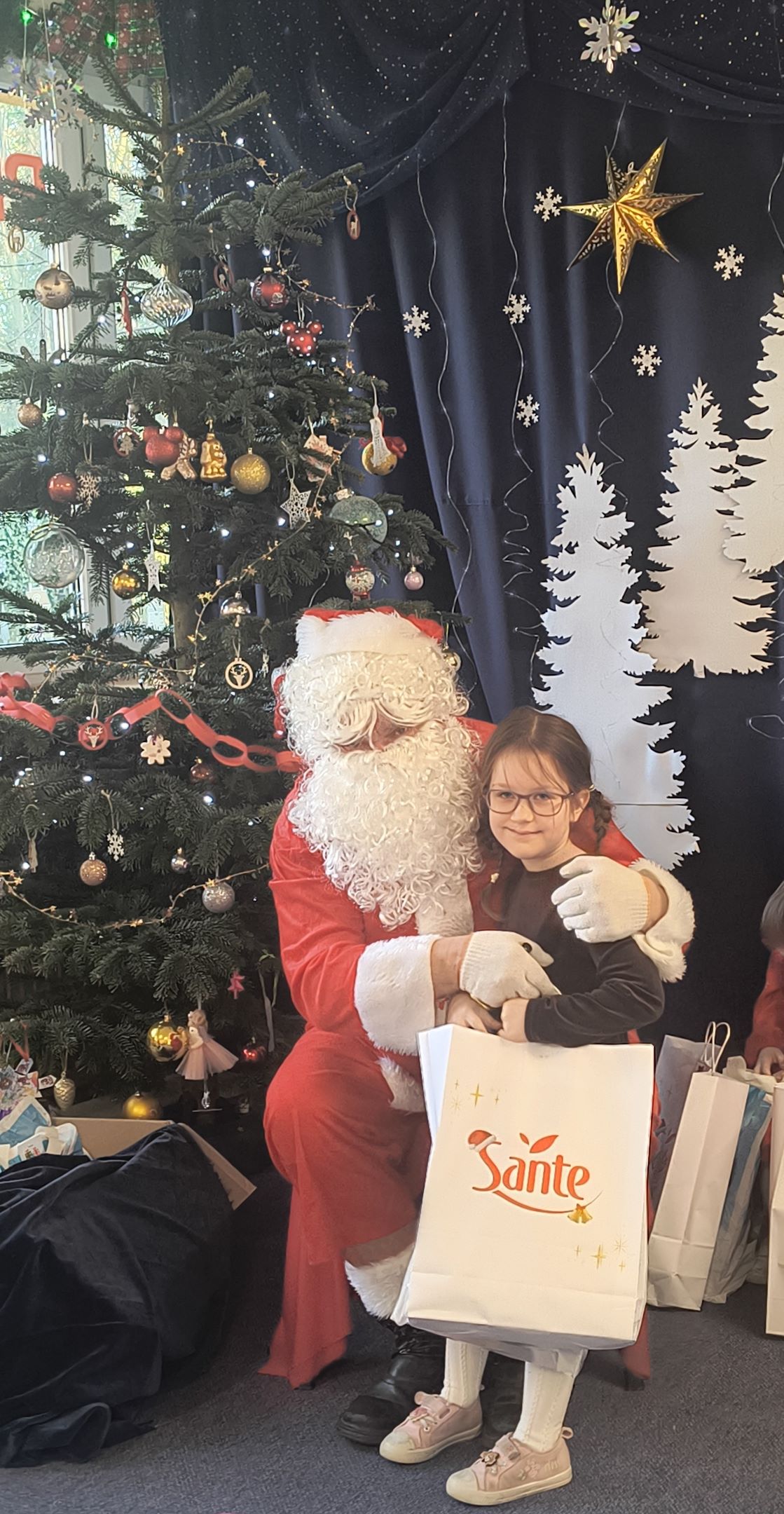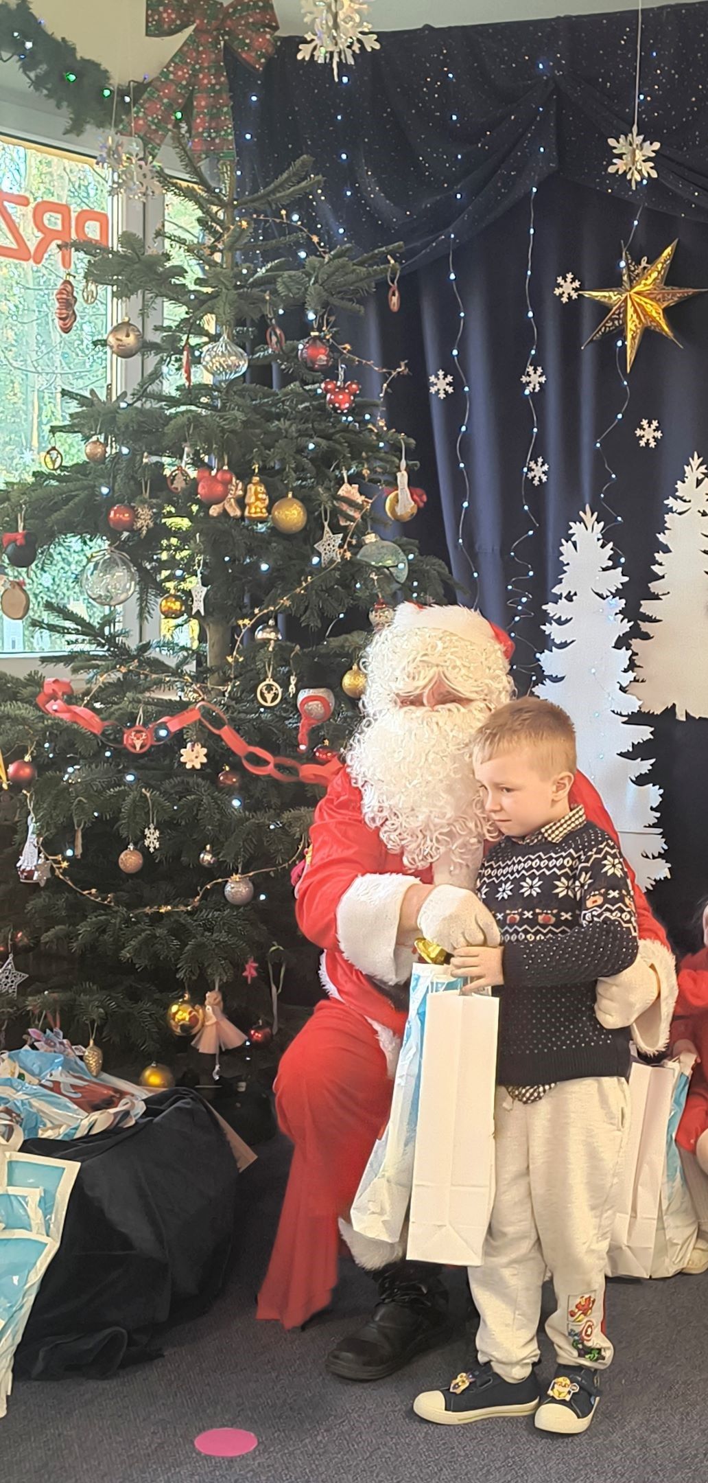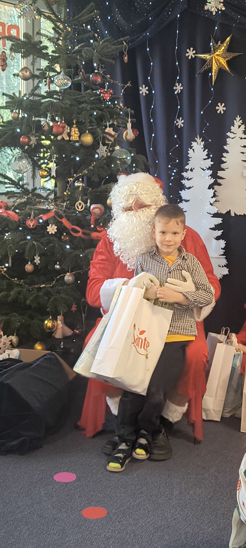W naszym przedszkolu panowała wyjątkowa, świąteczna atmosfera. Dzieci z radością powitały Świętego Mikołaja, który wręczył im paczki świąteczne, wywołując wiele uśmiechów i radości. Następnie w grupach odbył się uroczysty obiad wigilijny przy pięknie udekorowanym stole, pełen ciepła, życzliwości i świątecznego nastroju.