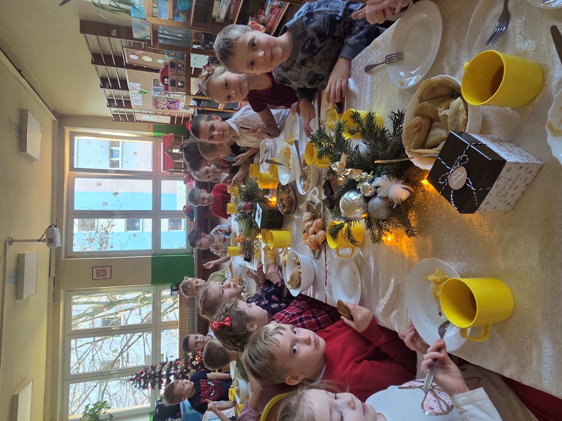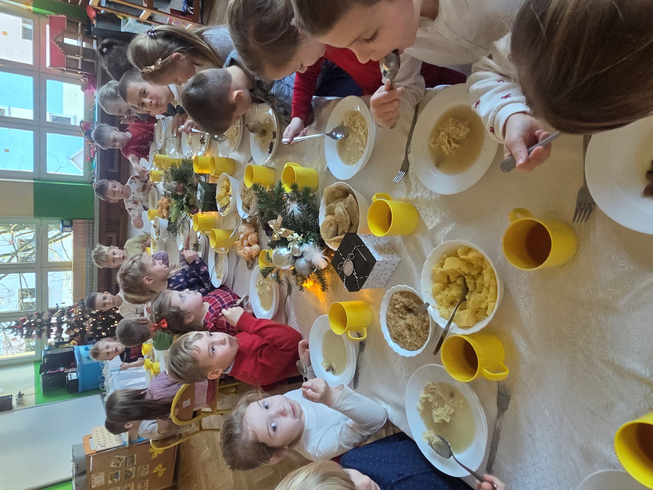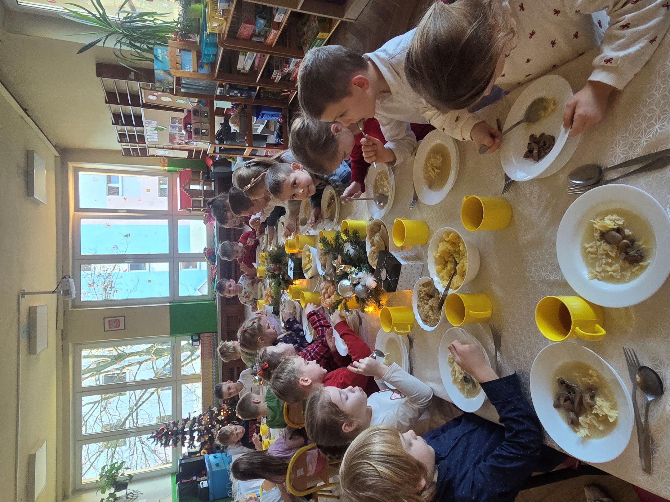 Tego dnia dzieci miały również okazję uczestniczyć w uroczystym Obiedzie Wigilijnym, który wprowadził wszystkich w radosną atmosferę Świąt Bożego Narodzenia i przybliżyły wszystkim uczestnikom istotę grudniowych świąt.