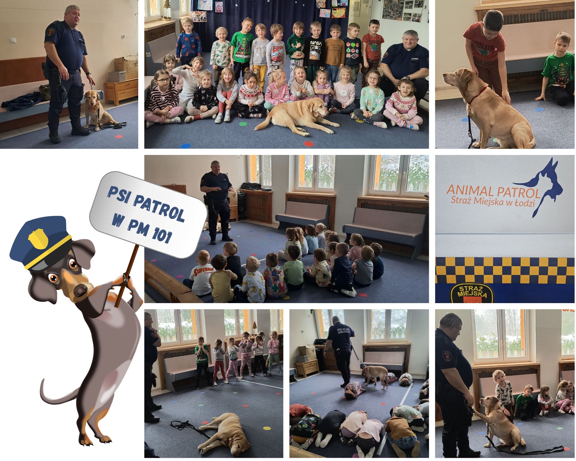 W dniu 14 stycznia nasze przedszkolaki miały okazję uczestniczyć w niezwykłym spotkaniu. Odwiedził nas funkcjonariusz ze Straży Miejskiej w towarzystwie swojego czworonożnego partnera – psa służbowego.
