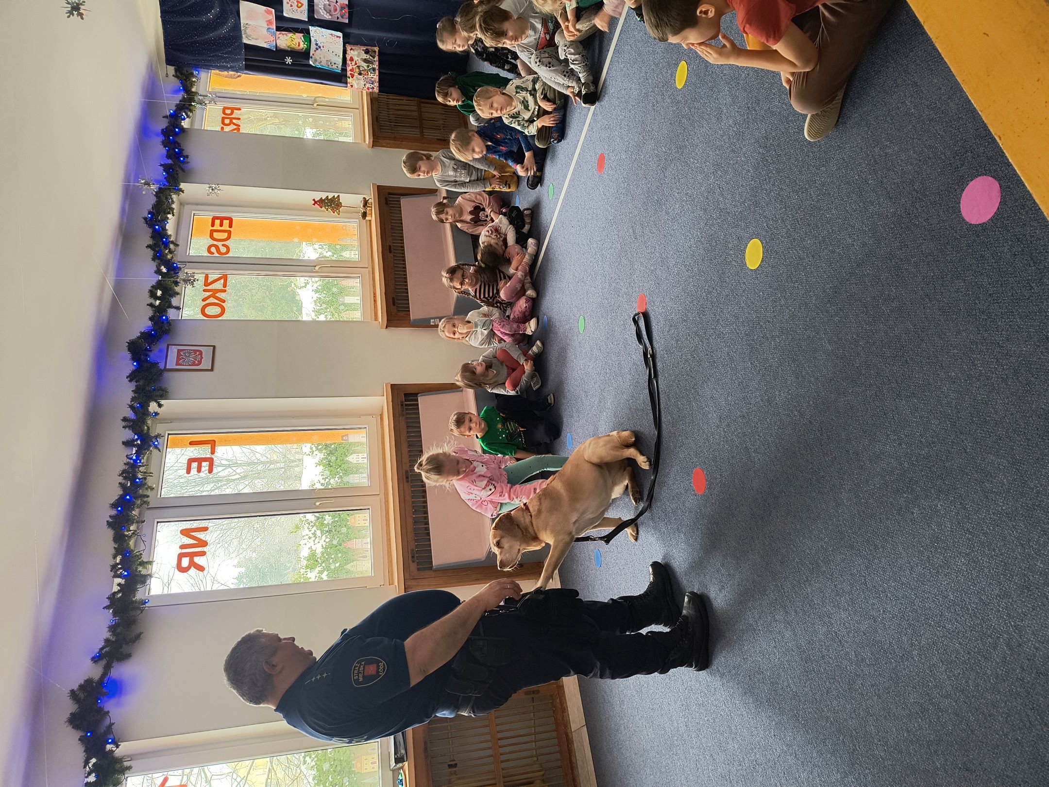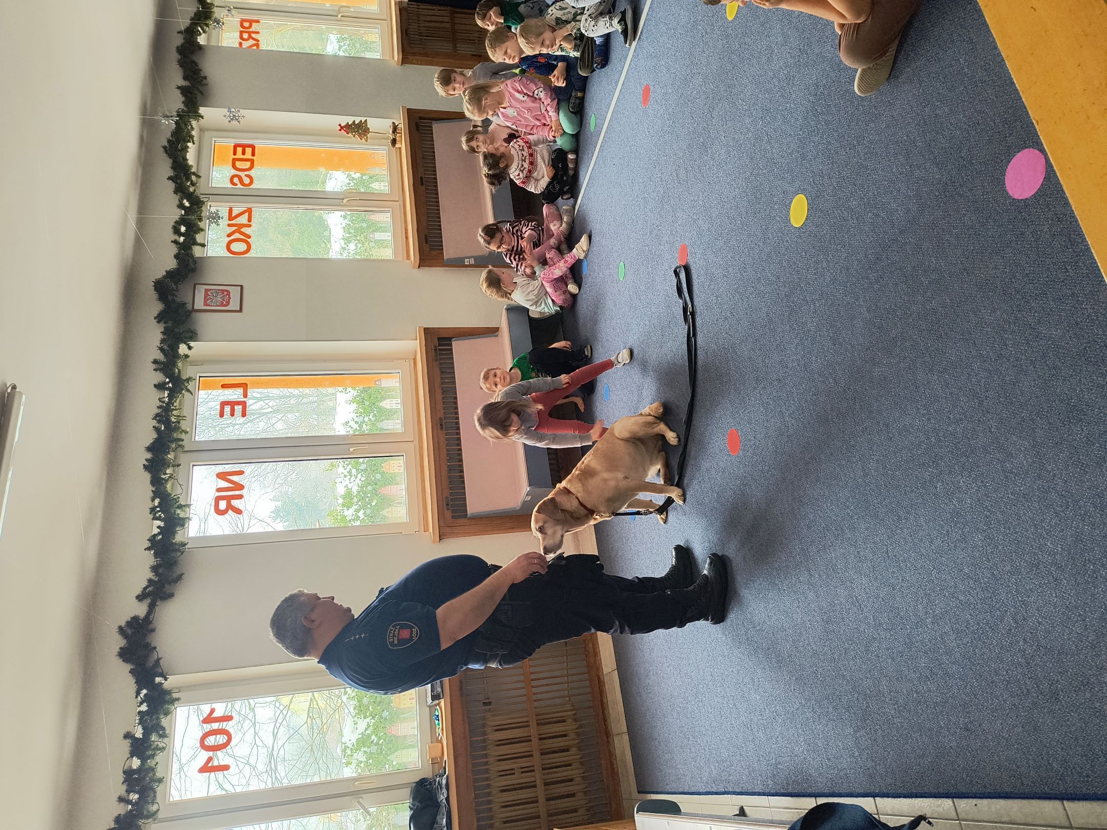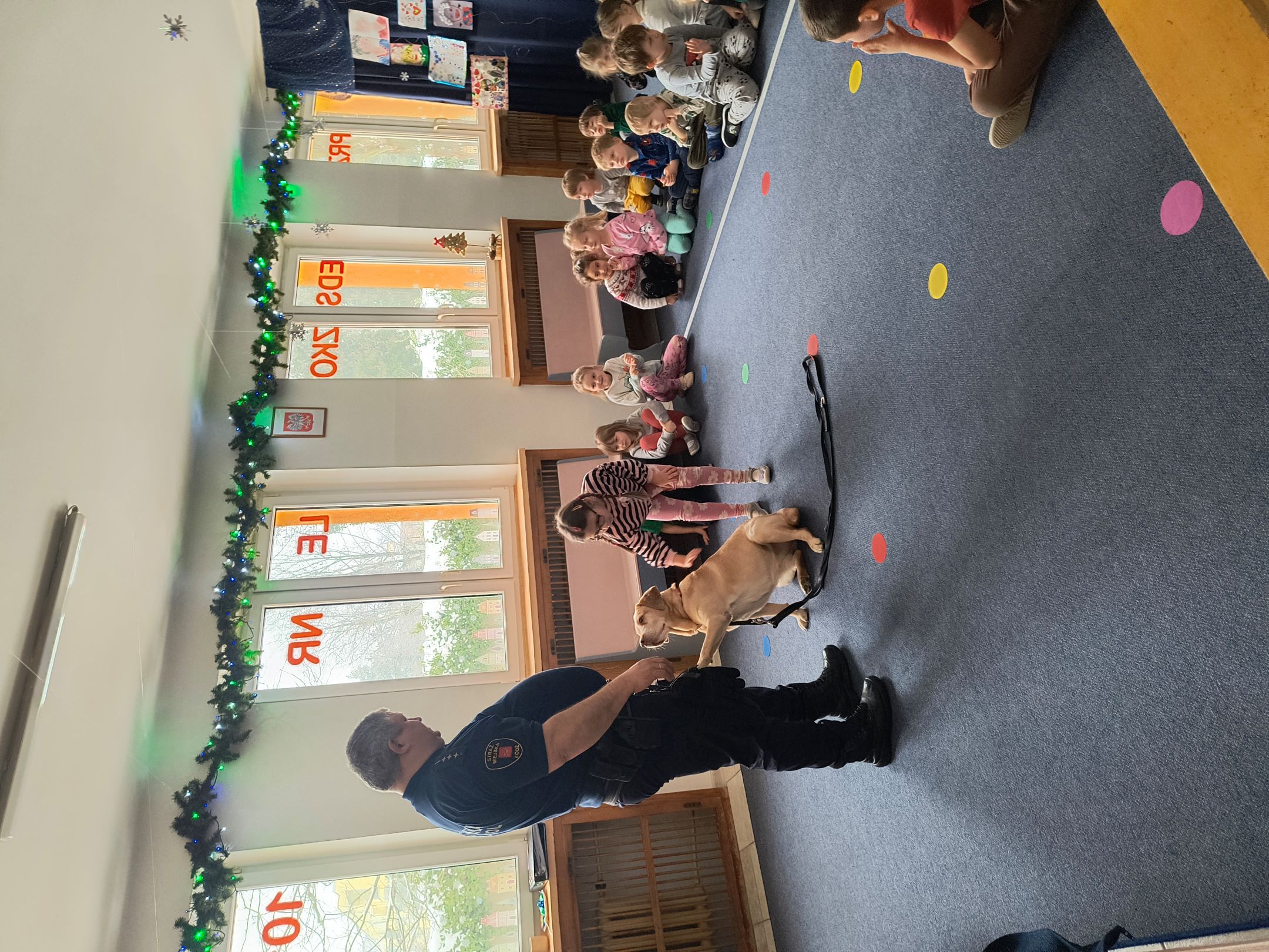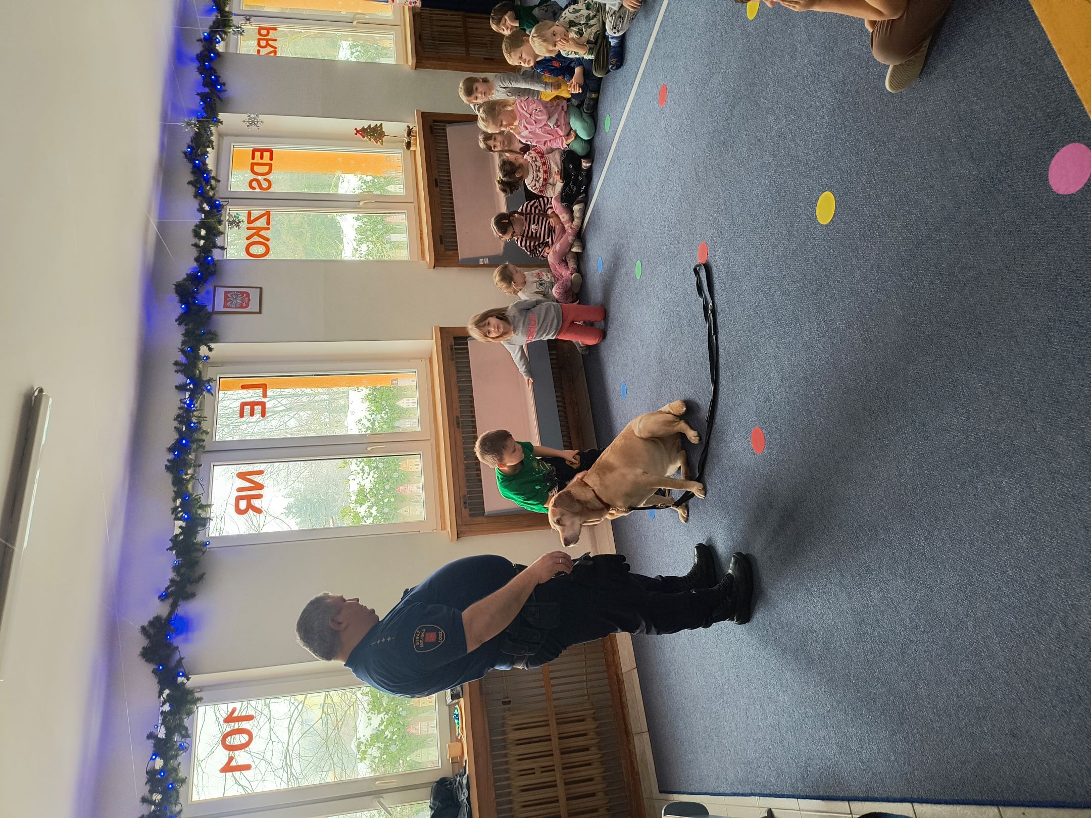 W przedszkolu odbyło się spotkanie ze strażą miejską poświęcone bezpiecznym kontaktom ze zwierzętami. Dzieci dowiedziały się, jak prawidłowo zachowywać się wobec psów i innych zwierząt oraz czego unikać, aby nie doszło do niebezpiecznych sytuacji. Spotkanie było ciekawe i pouczające.