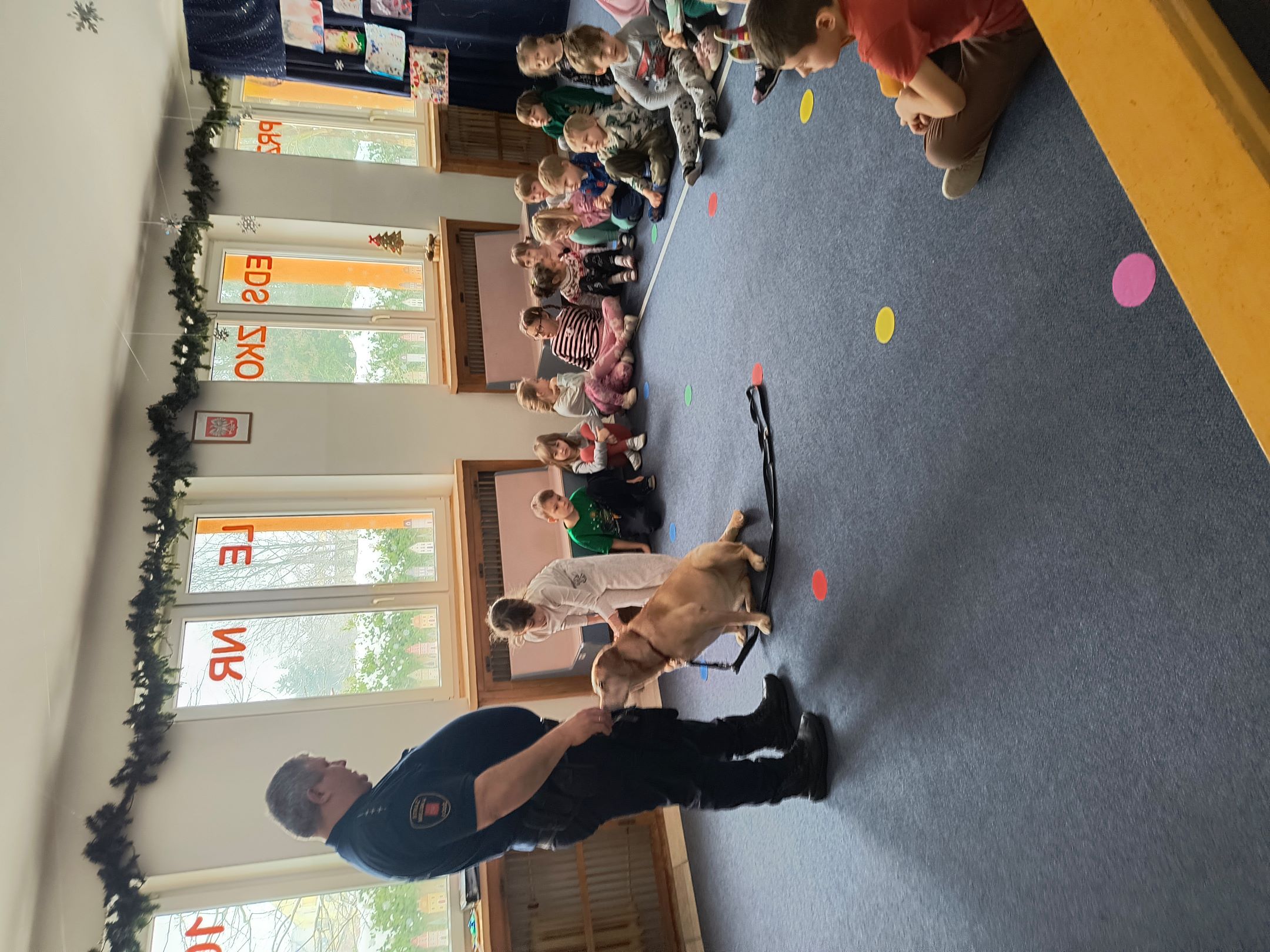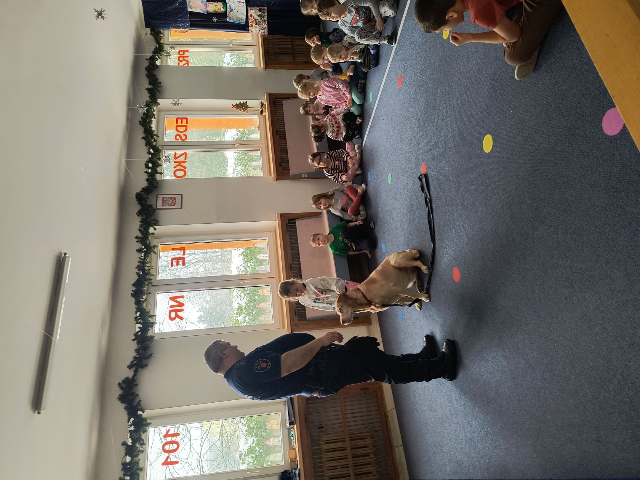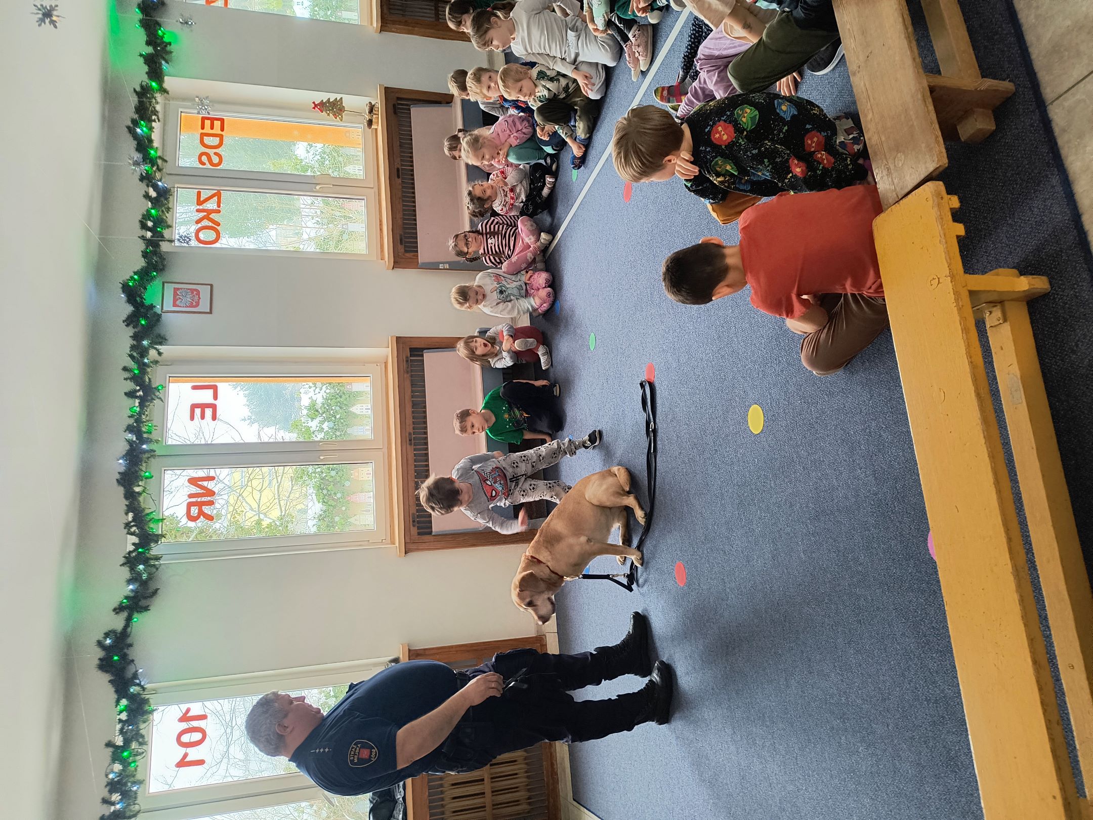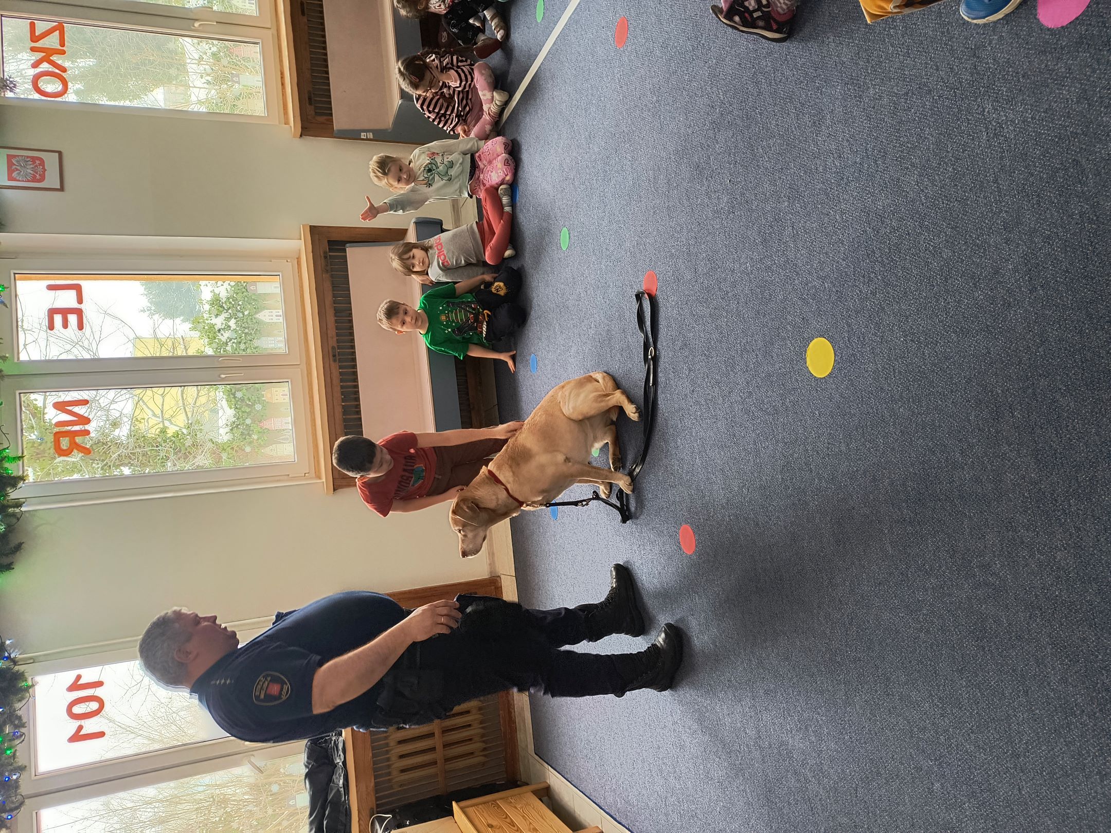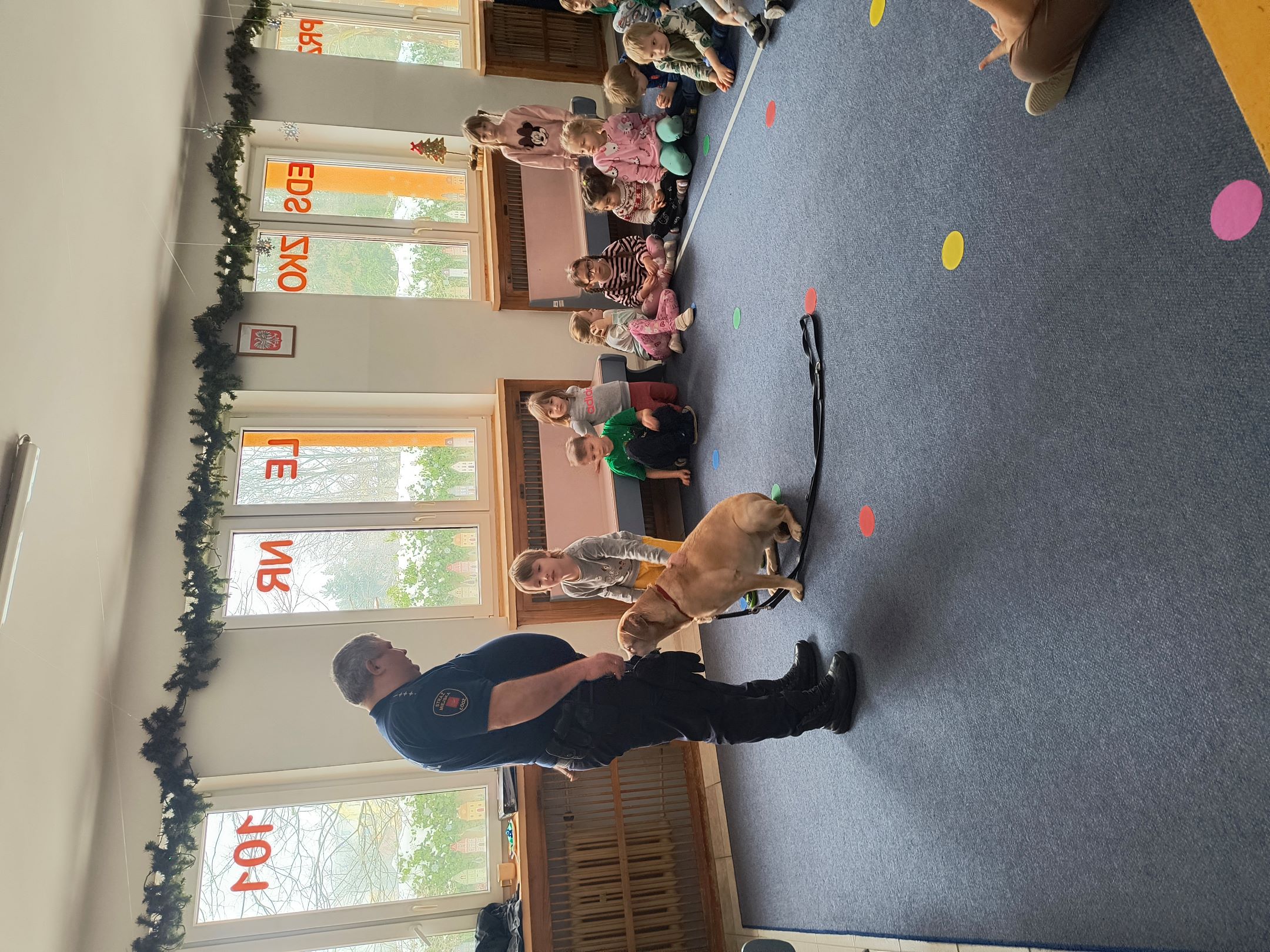 W przedszkolu odbyło się spotkanie ze strażą miejską poświęcone bezpiecznym kontaktom ze zwierzętami. Dzieci dowiedziały się, jak prawidłowo zachowywać się wobec psów i innych zwierząt oraz czego unikać, aby nie doszło do niebezpiecznych sytuacji. Spotkanie było ciekawe i pouczające.