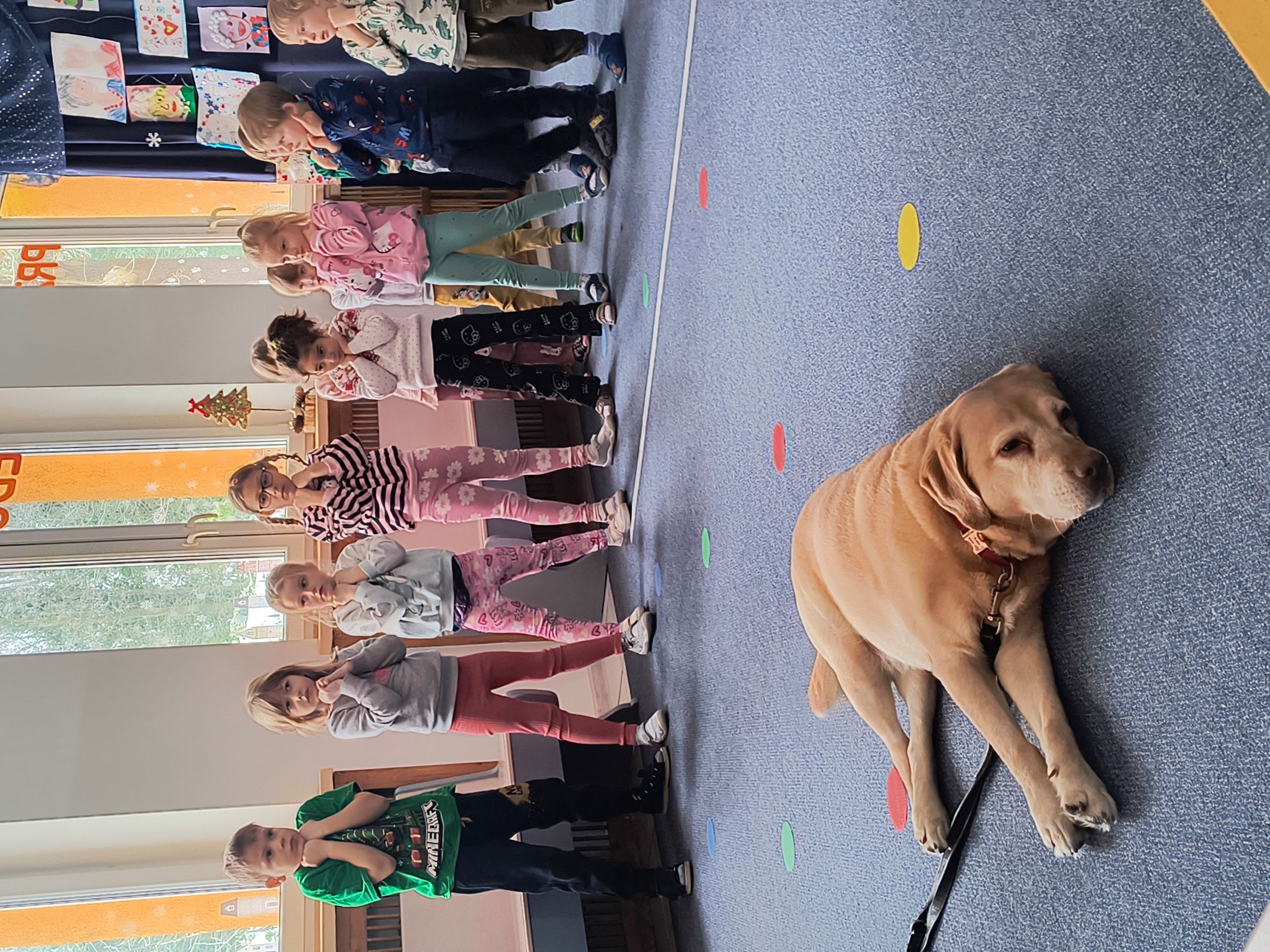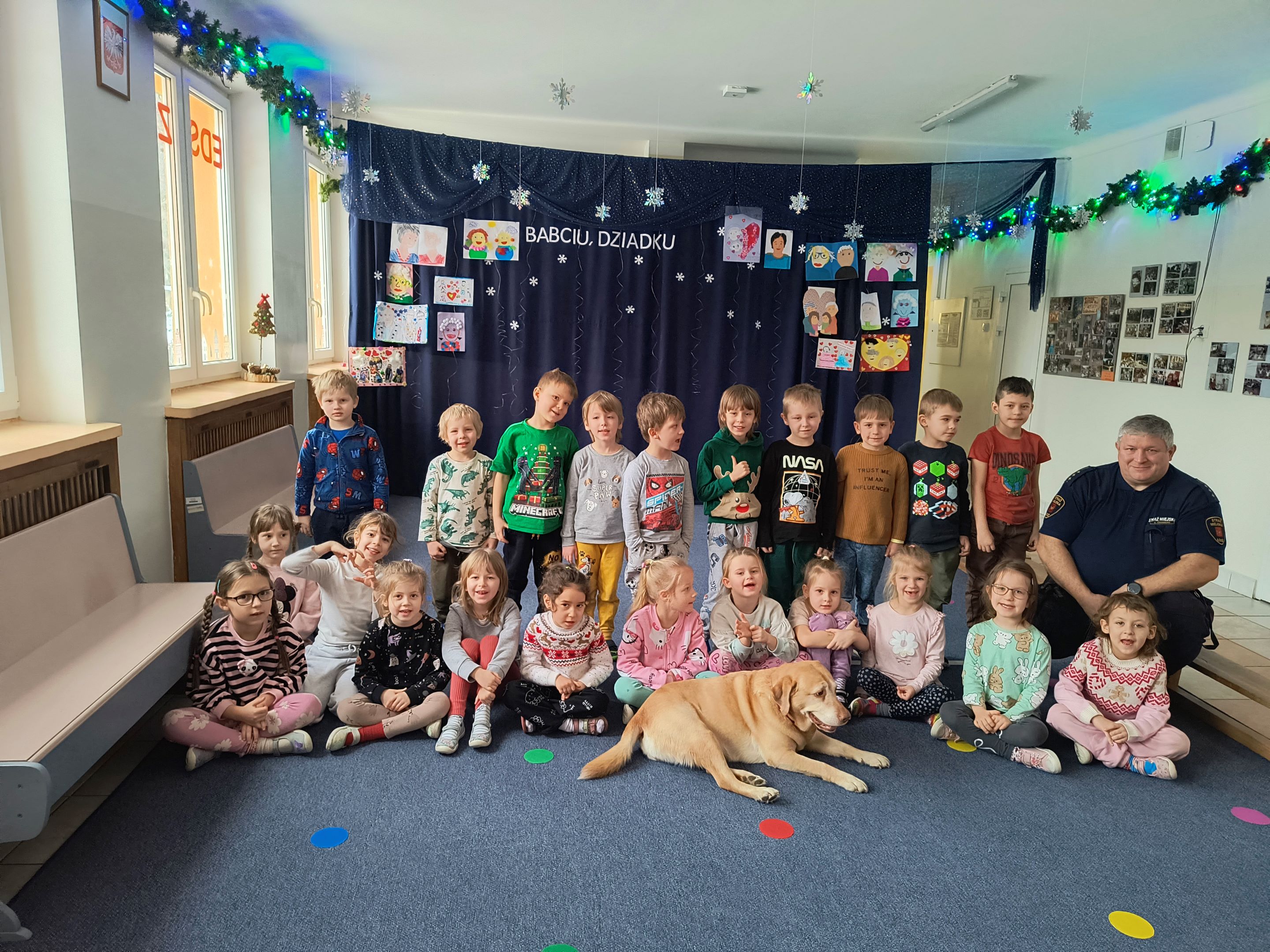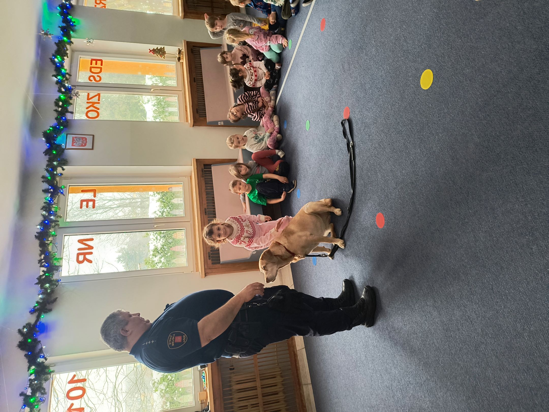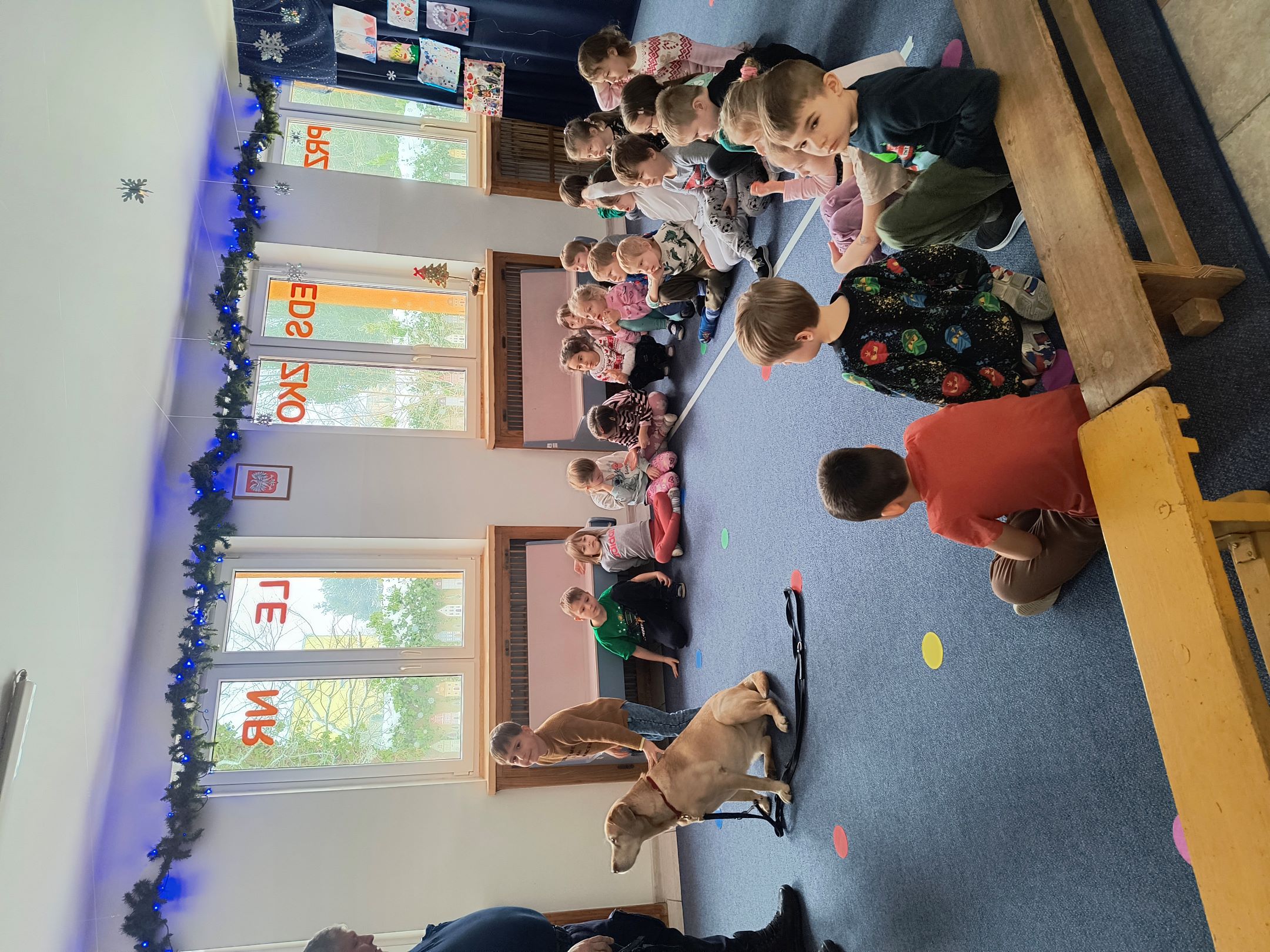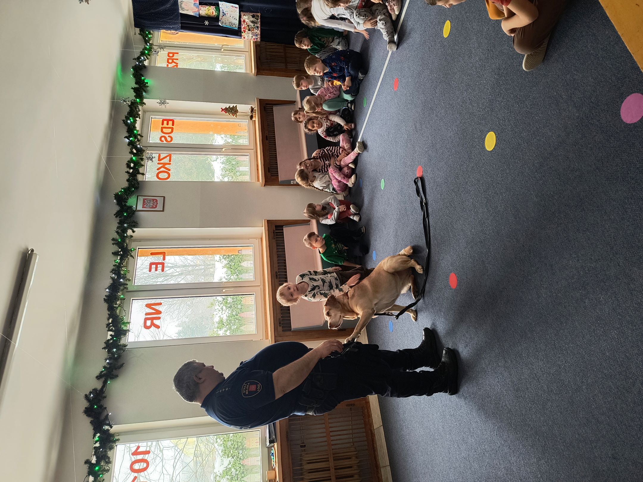 W przedszkolu odbyło się spotkanie ze strażą miejską poświęcone bezpiecznym kontaktom ze zwierzętami. Dzieci dowiedziały się, jak prawidłowo zachowywać się wobec psów i innych zwierząt oraz czego unikać, aby nie doszło do niebezpiecznych sytuacji. Spotkanie było ciekawe i pouczające.
