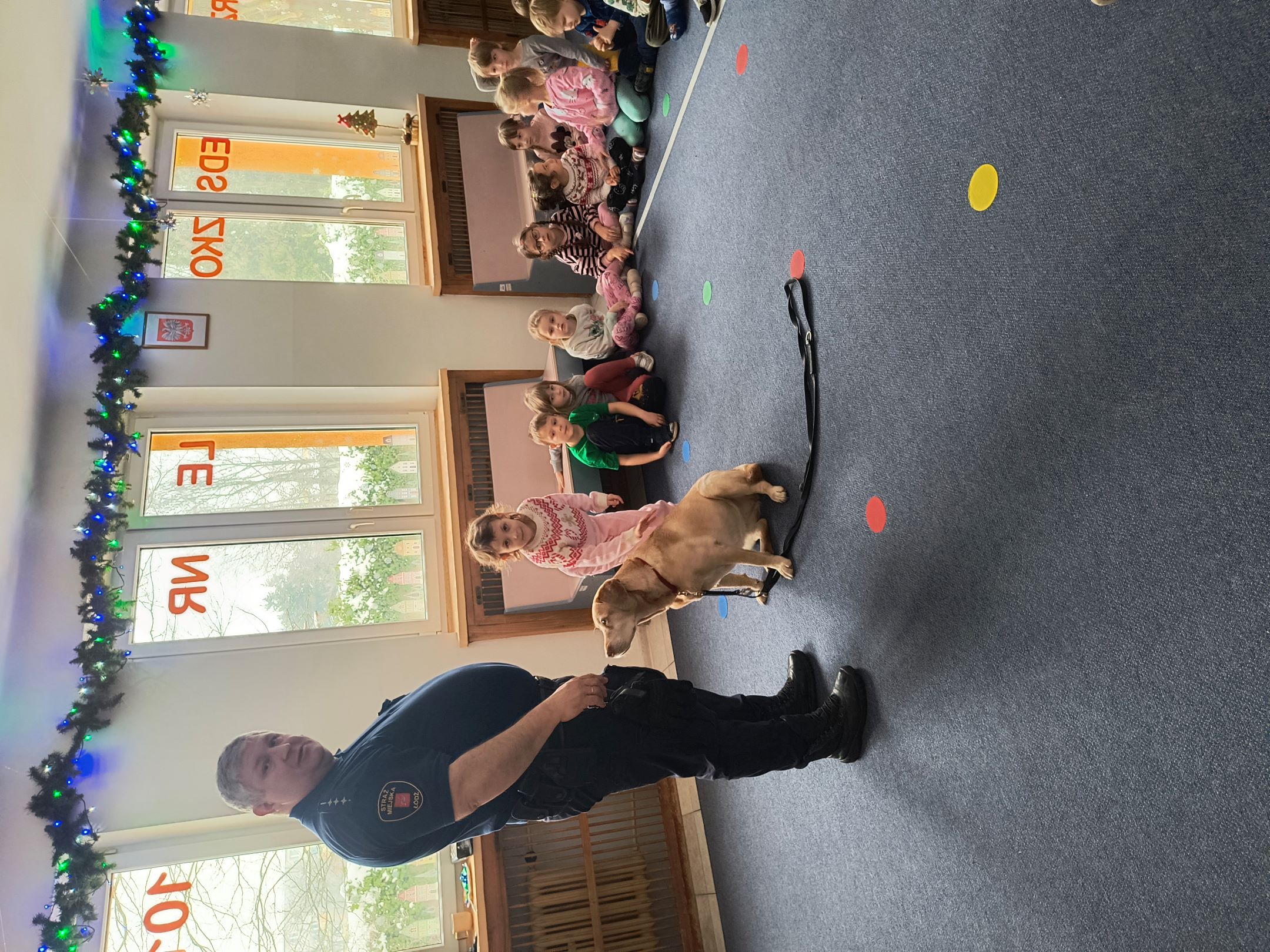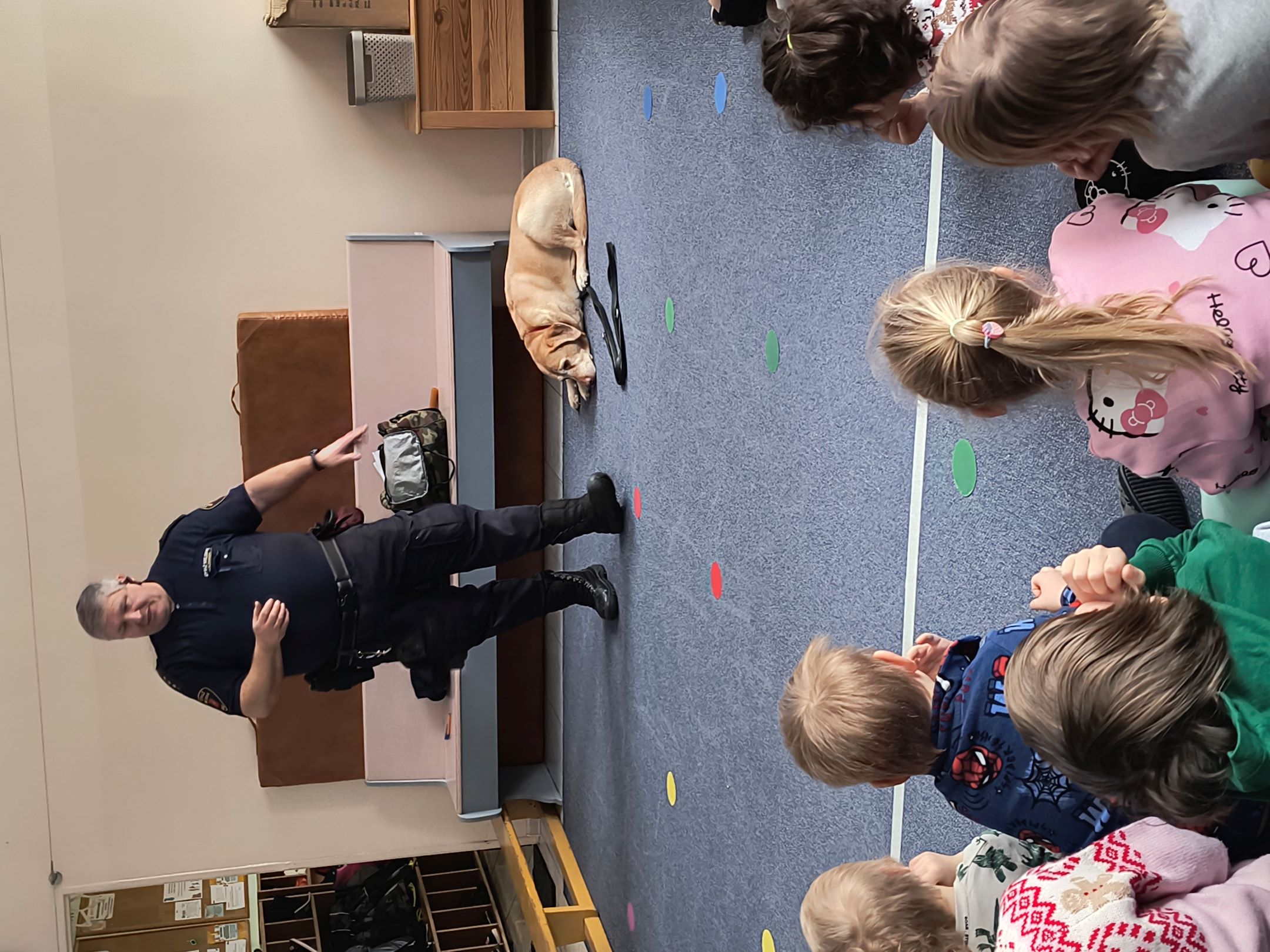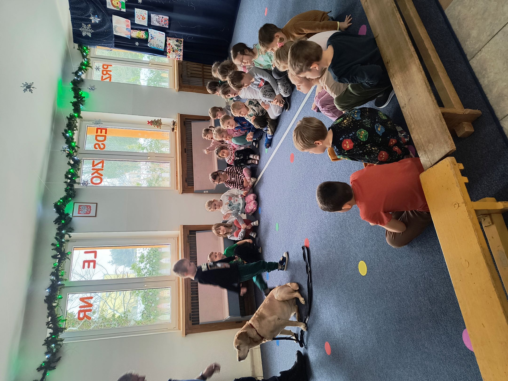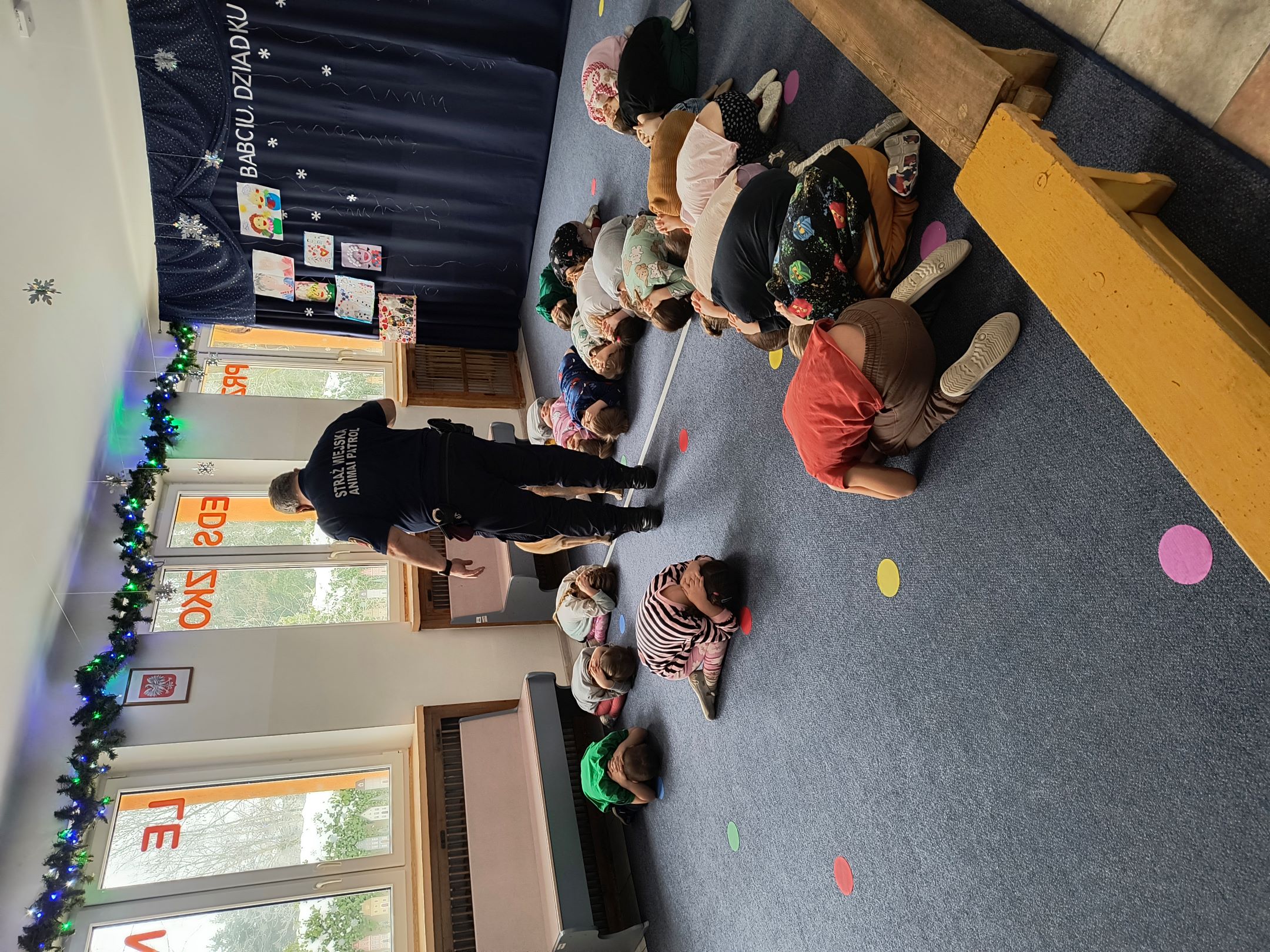 W przedszkolu odbyło się spotkanie ze strażą miejską poświęcone bezpiecznym kontaktom ze zwierzętami. Dzieci dowiedziały się, jak prawidłowo zachowywać się wobec psów i innych zwierząt oraz czego unikać, aby nie doszło do niebezpiecznych sytuacji. Spotkanie było ciekawe i pouczające.