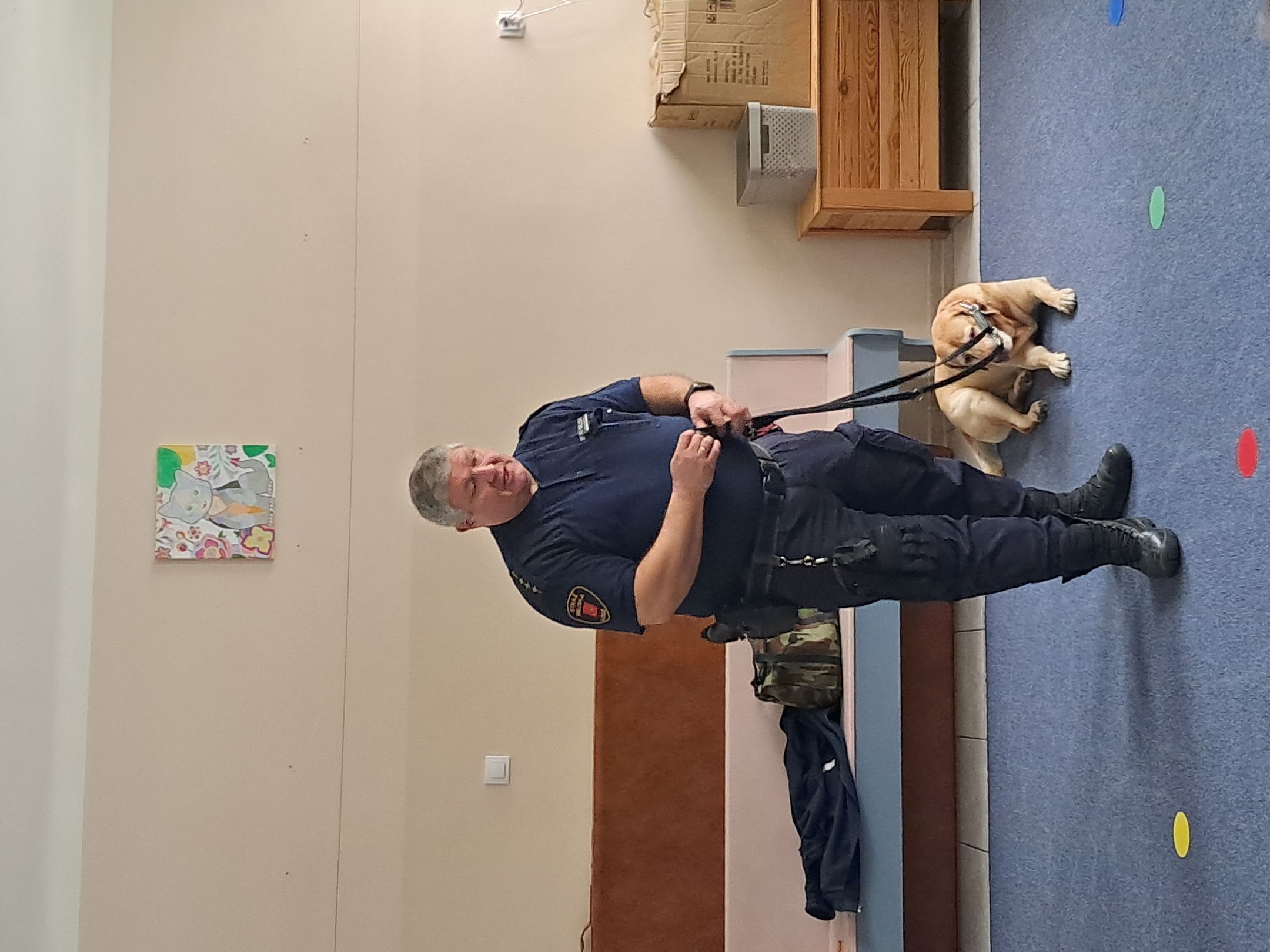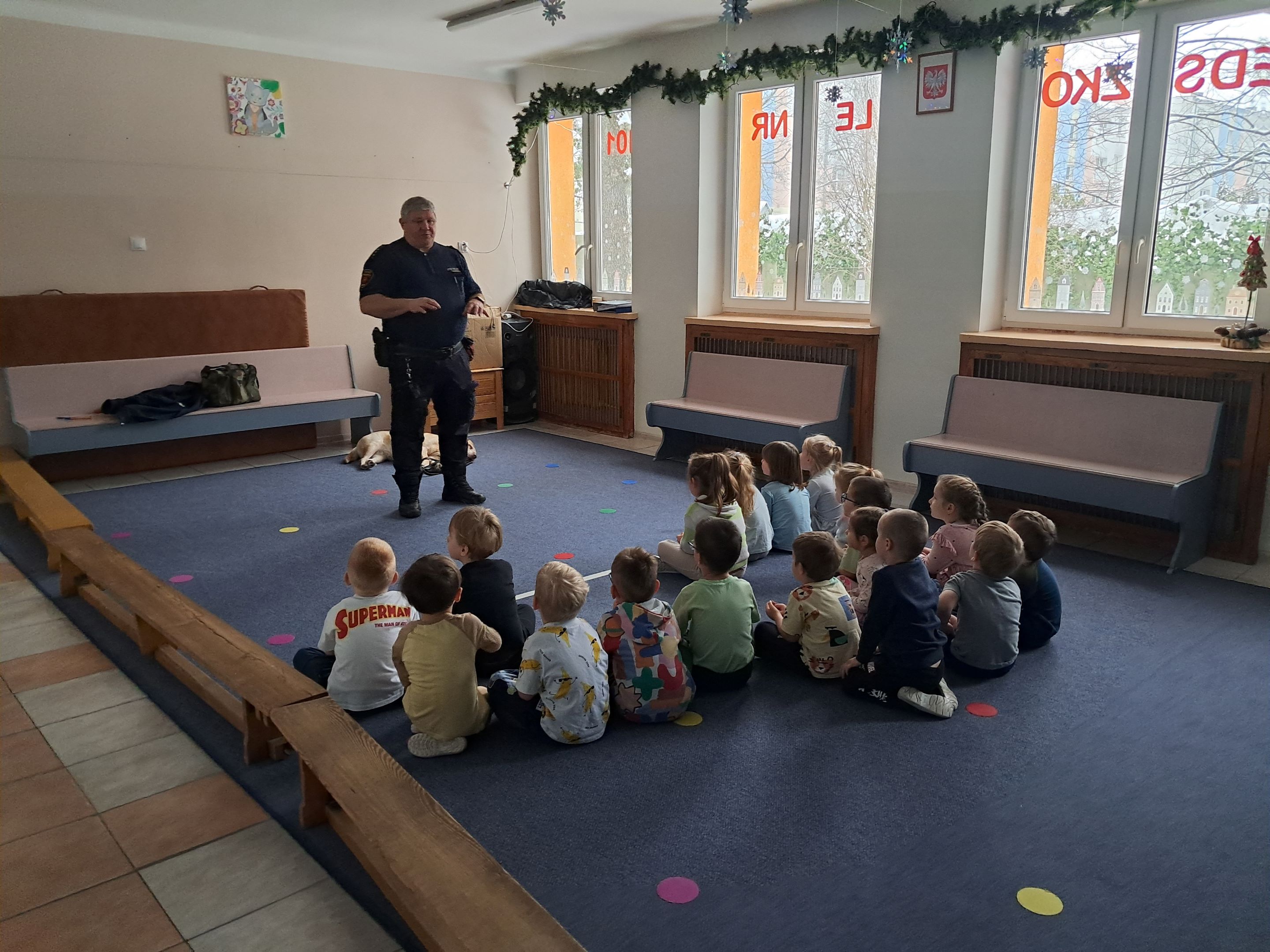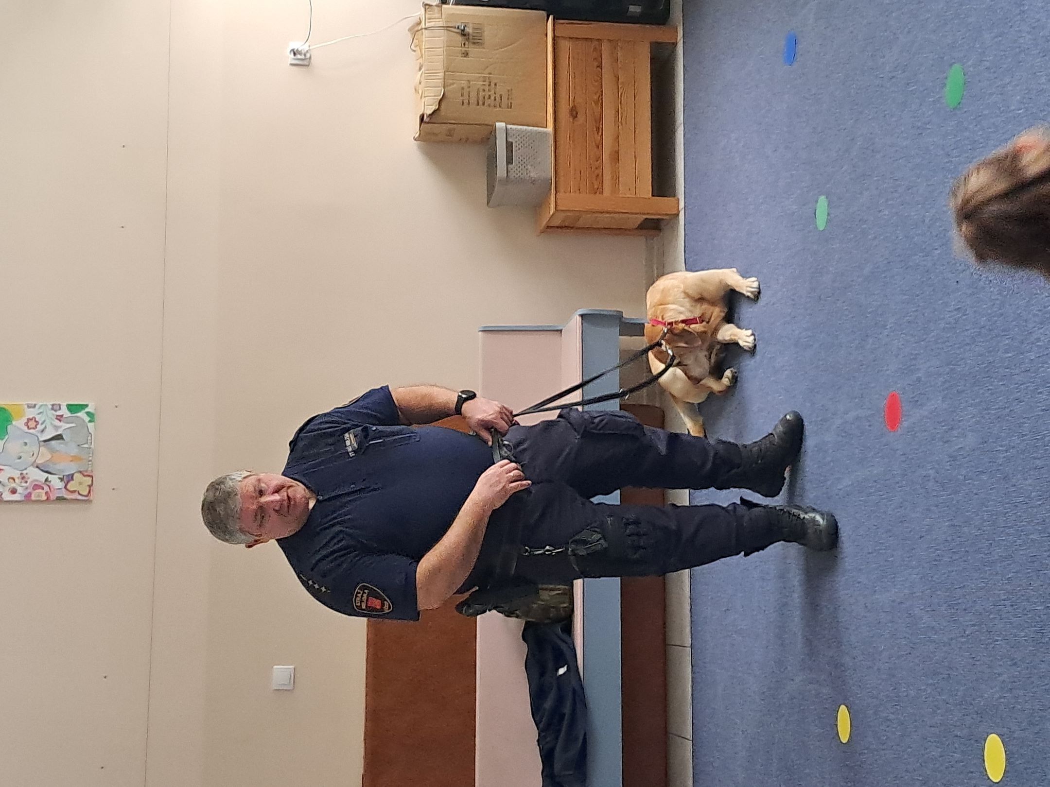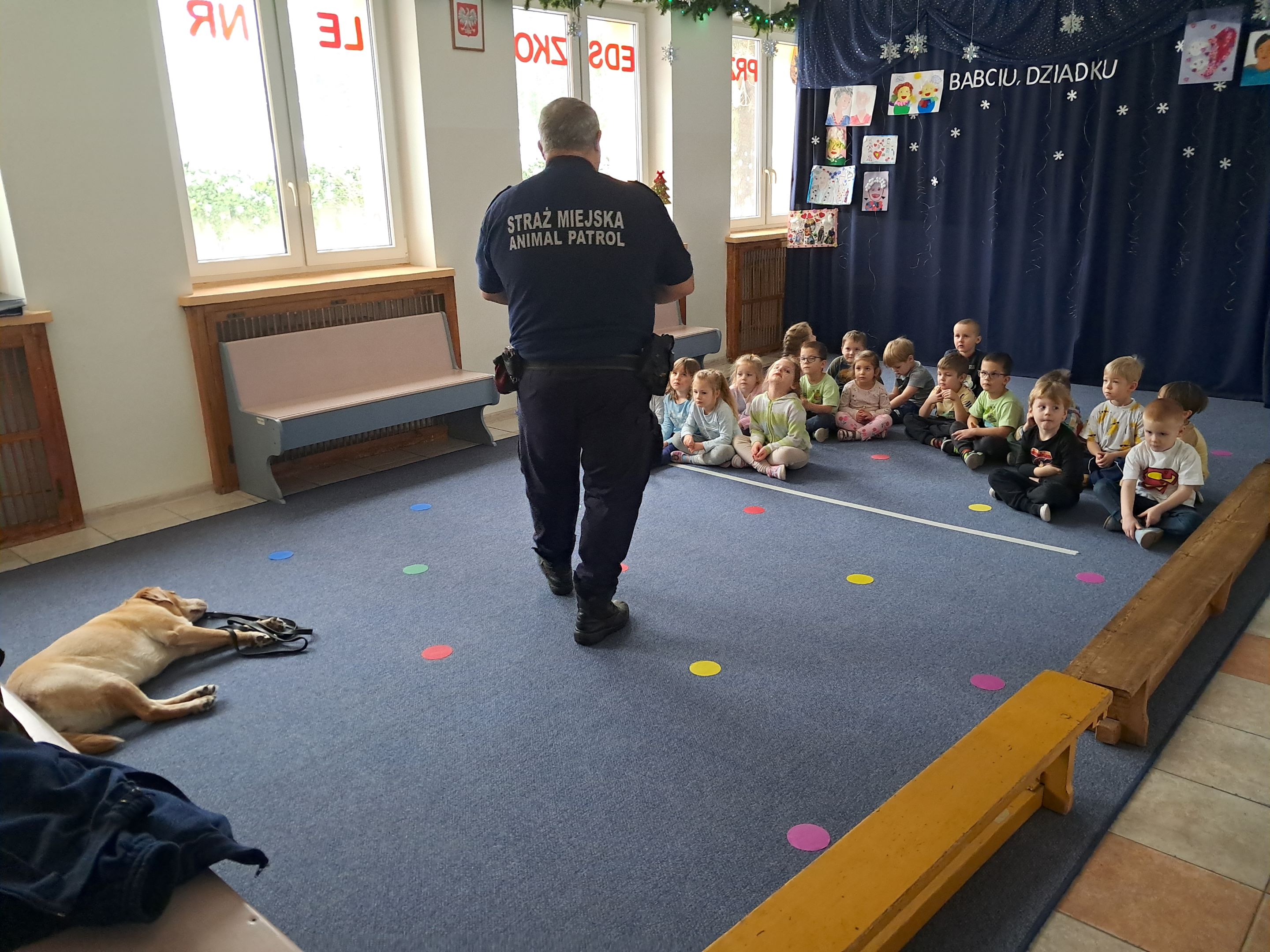 W naszym przedszkolu byli wyjątkowi goście – odwiedził nas funkcjonariusz Straży Miejskiej wraz ze swoim psem służbowym. Dzieci dowiedziały się, na czym polega praca strażników, jak dbać o bezpieczeństwo oraz jak zachować się w kontaktach z psem. Największą atrakcją było oczywiście spotkanie z czworonożnym bohaterem, które wzbudziło wiele radości i ciekawości. To było bardzo ciekawe i pouczające spotkanie!