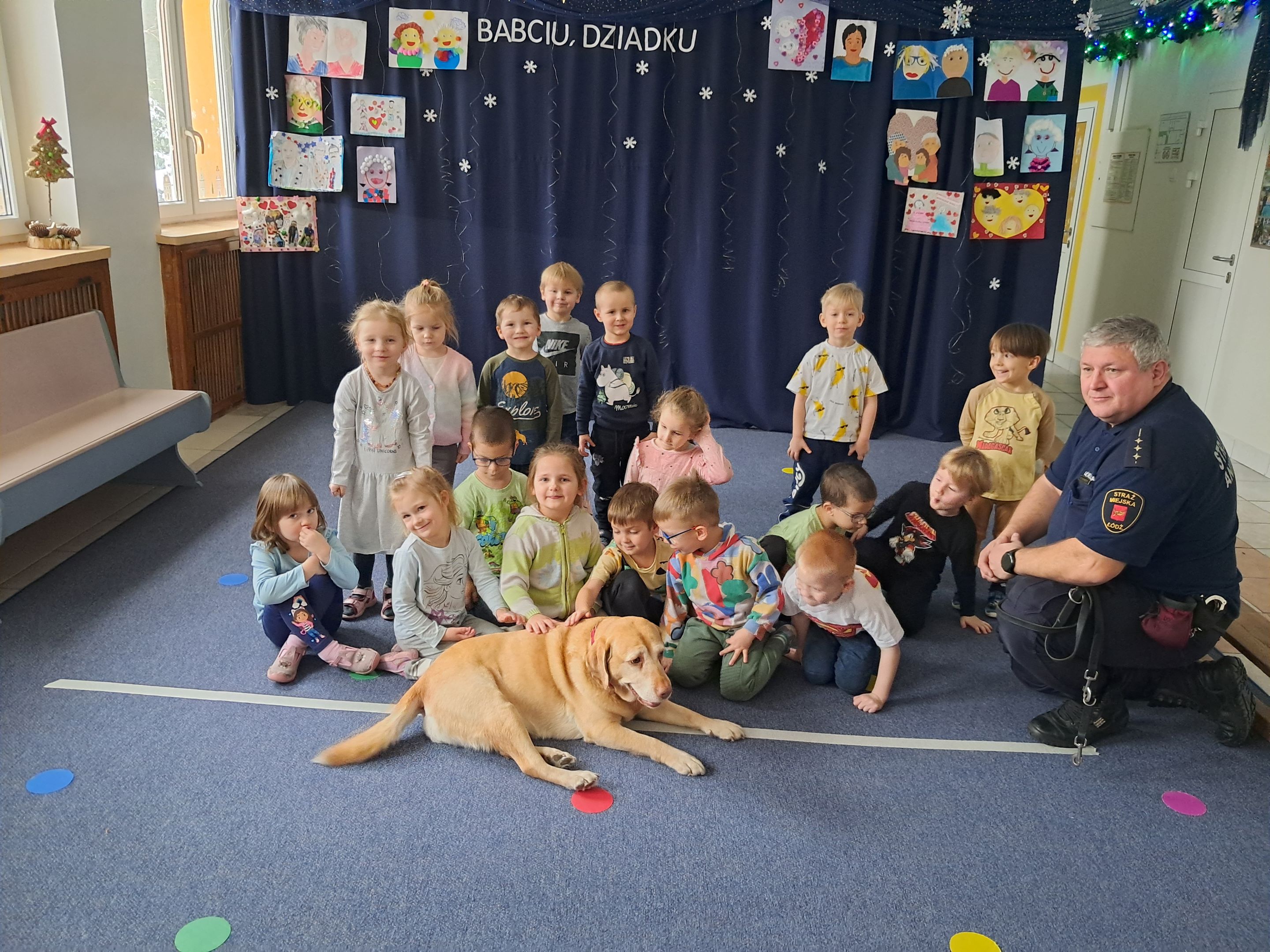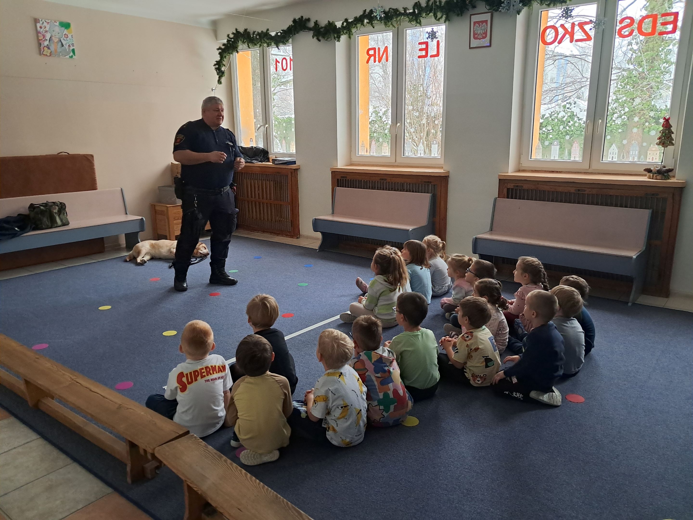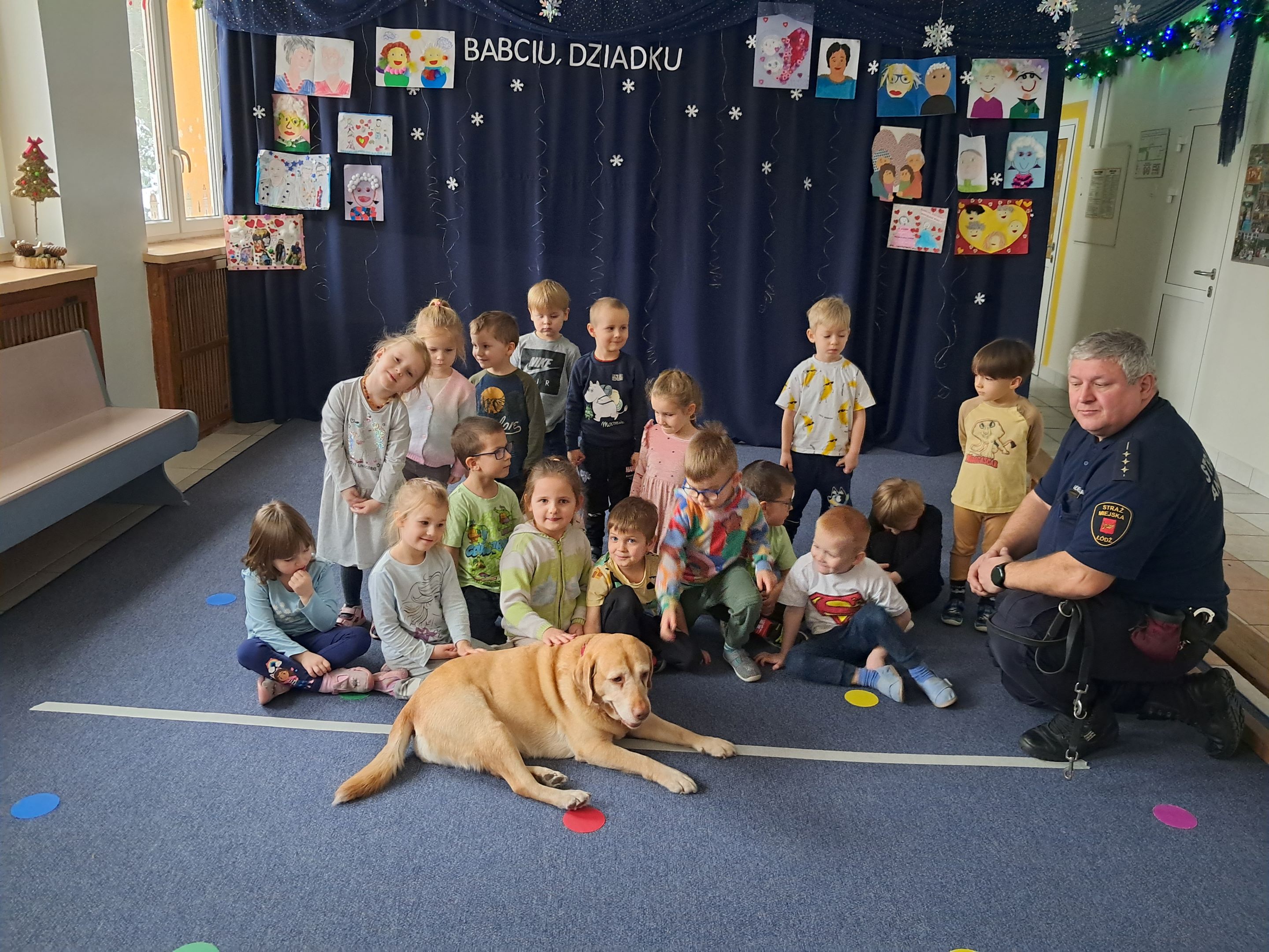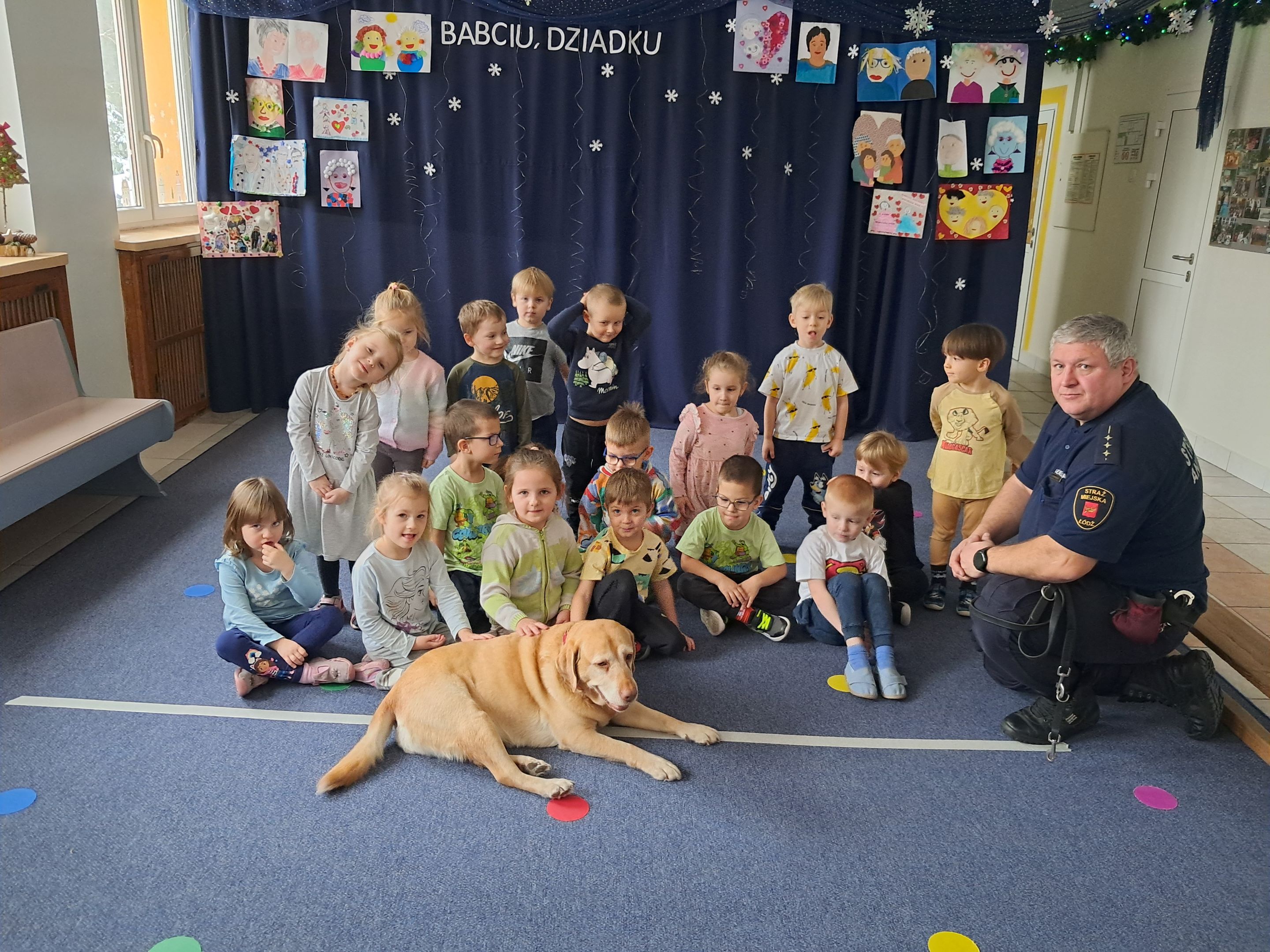 W naszym przedszkolu byli wyjątkowi goście – odwiedził nas funkcjonariusz Straży Miejskiej wraz ze swoim psem służbowym. Dzieci dowiedziały się, na czym polega praca strażników, jak dbać o bezpieczeństwo oraz jak zachować się w kontaktach z psem. Największą atrakcją było oczywiście spotkanie z czworonożnym bohaterem, które wzbudziło wiele radości i ciekawości. To było bardzo ciekawe i pouczające spotkanie!