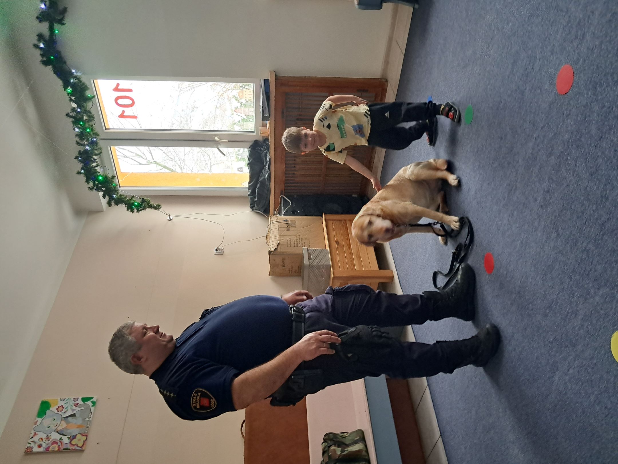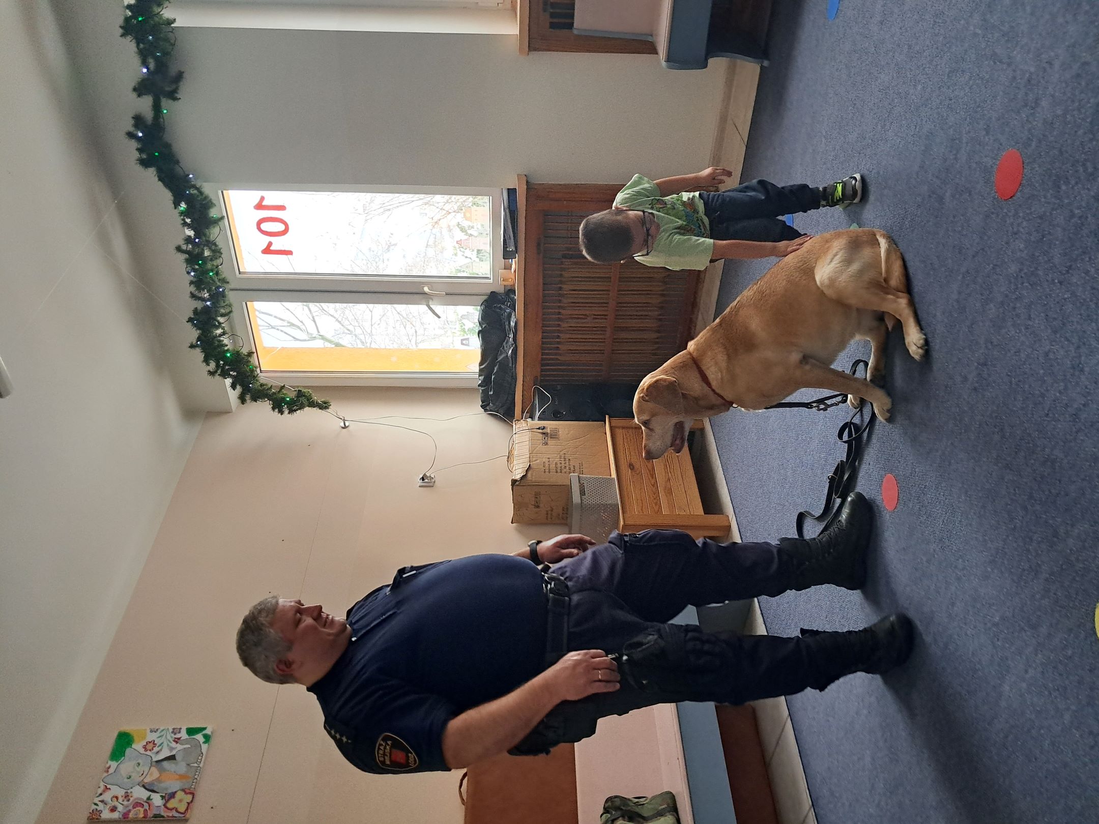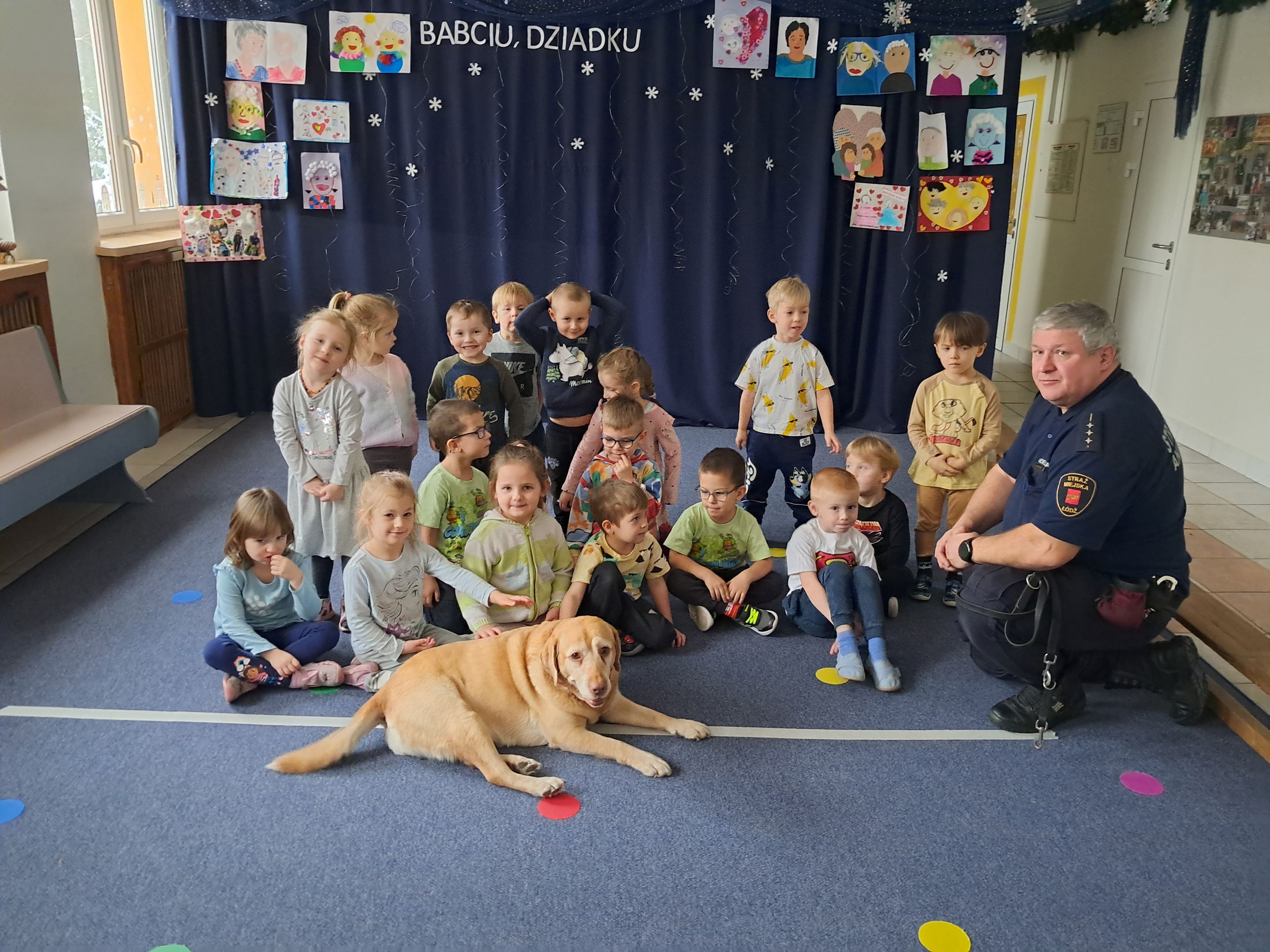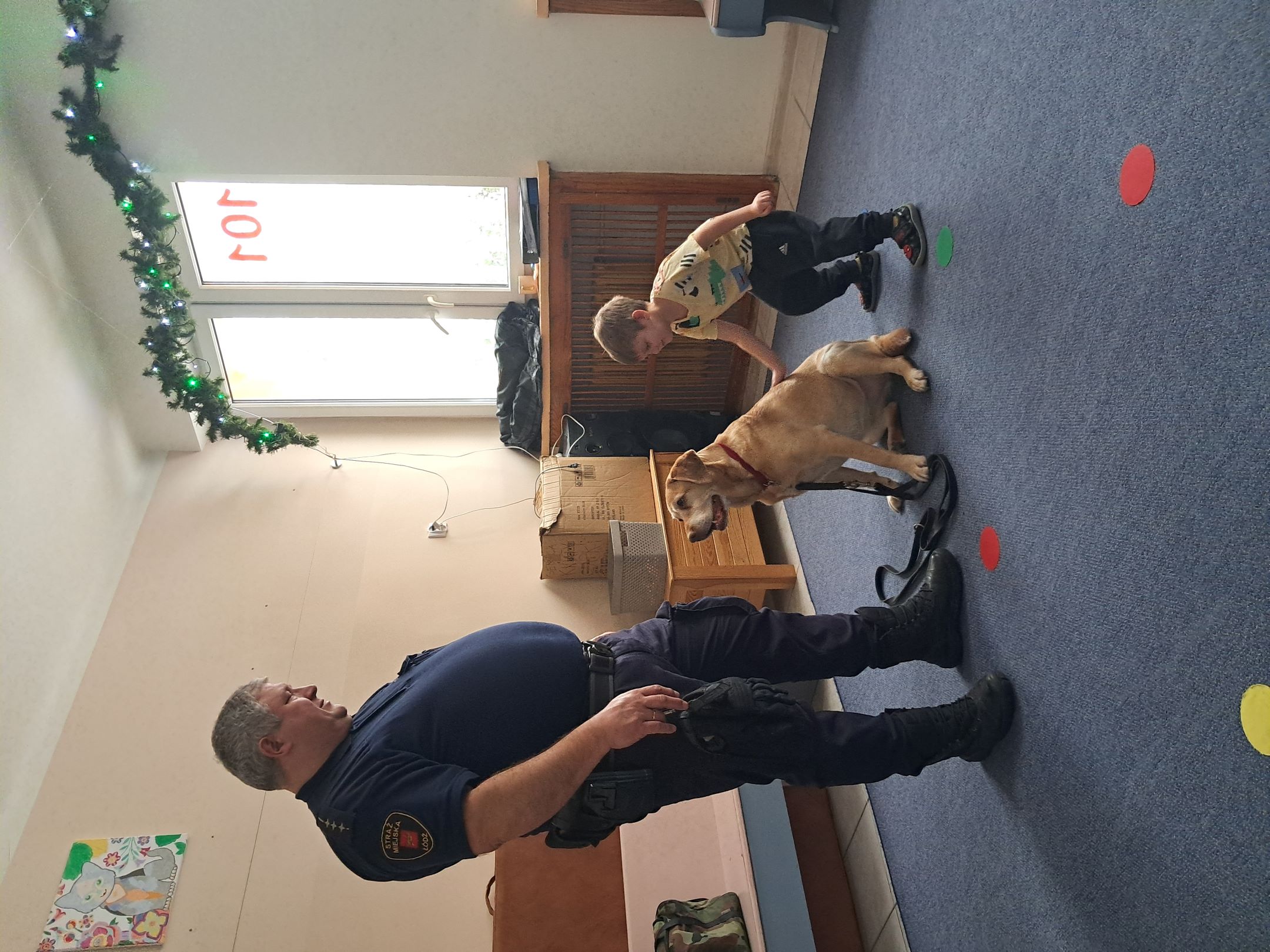 W naszym przedszkolu byli wyjątkowi goście – odwiedził nas funkcjonariusz Straży Miejskiej wraz ze swoim psem służbowym. Dzieci dowiedziały się, na czym polega praca strażników, jak dbać o bezpieczeństwo oraz jak zachować się w kontaktach z psem. Największą atrakcją było oczywiście spotkanie z czworonożnym bohaterem, które wzbudziło wiele radości i ciekawości. To było bardzo ciekawe i pouczające spotkanie!