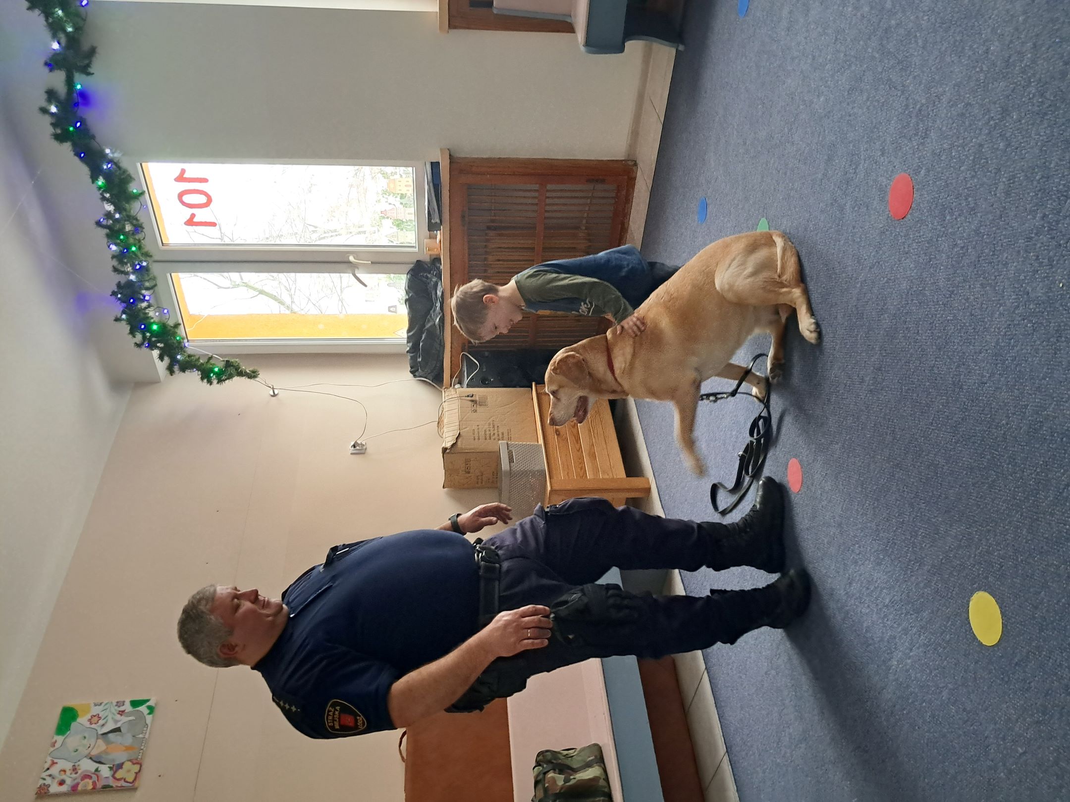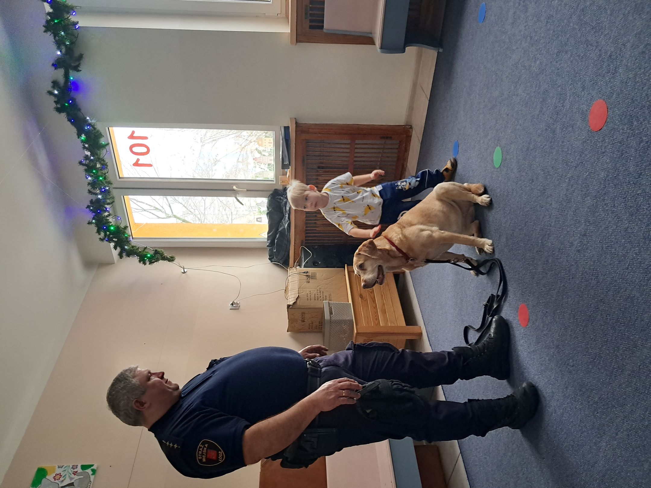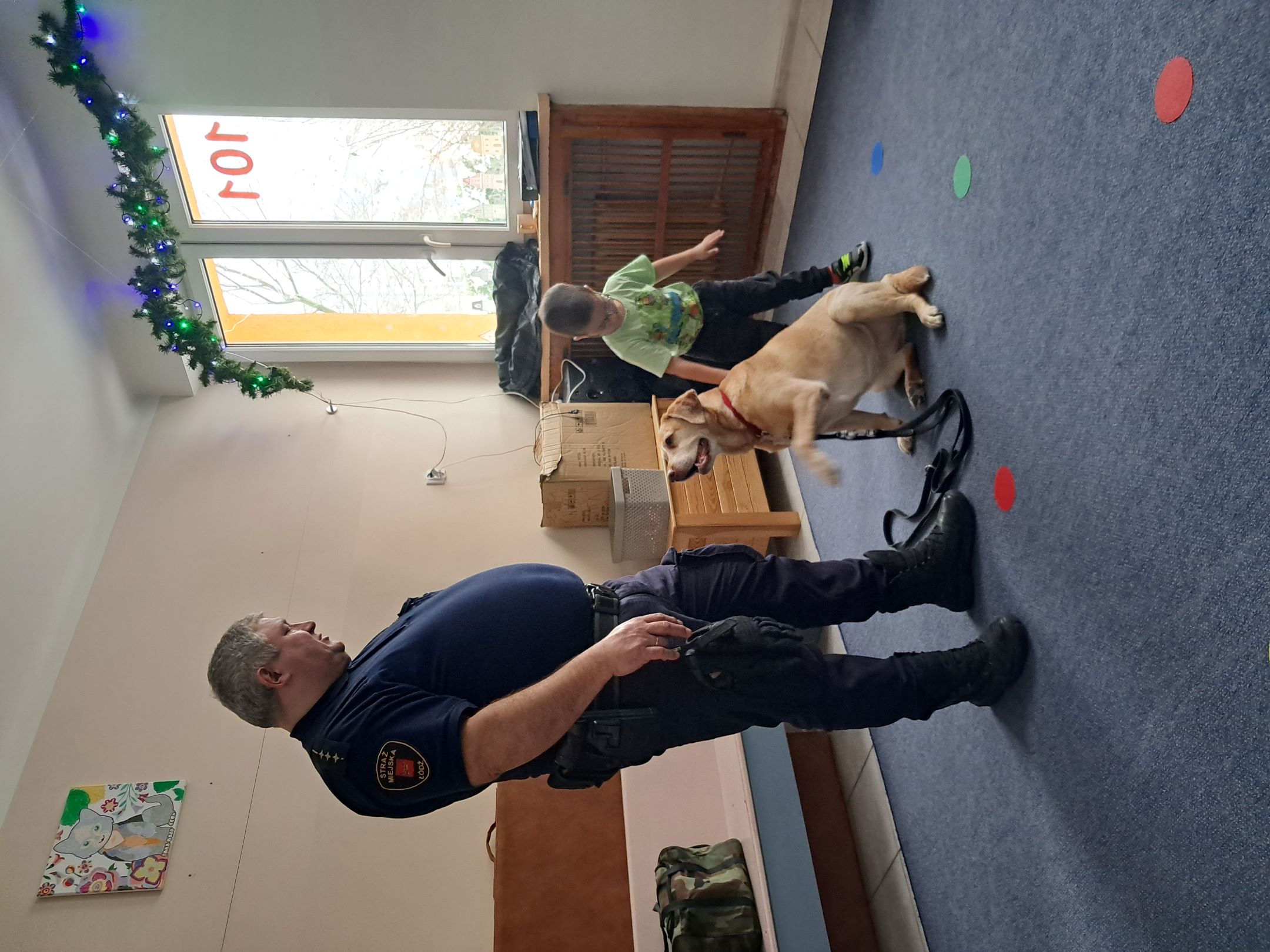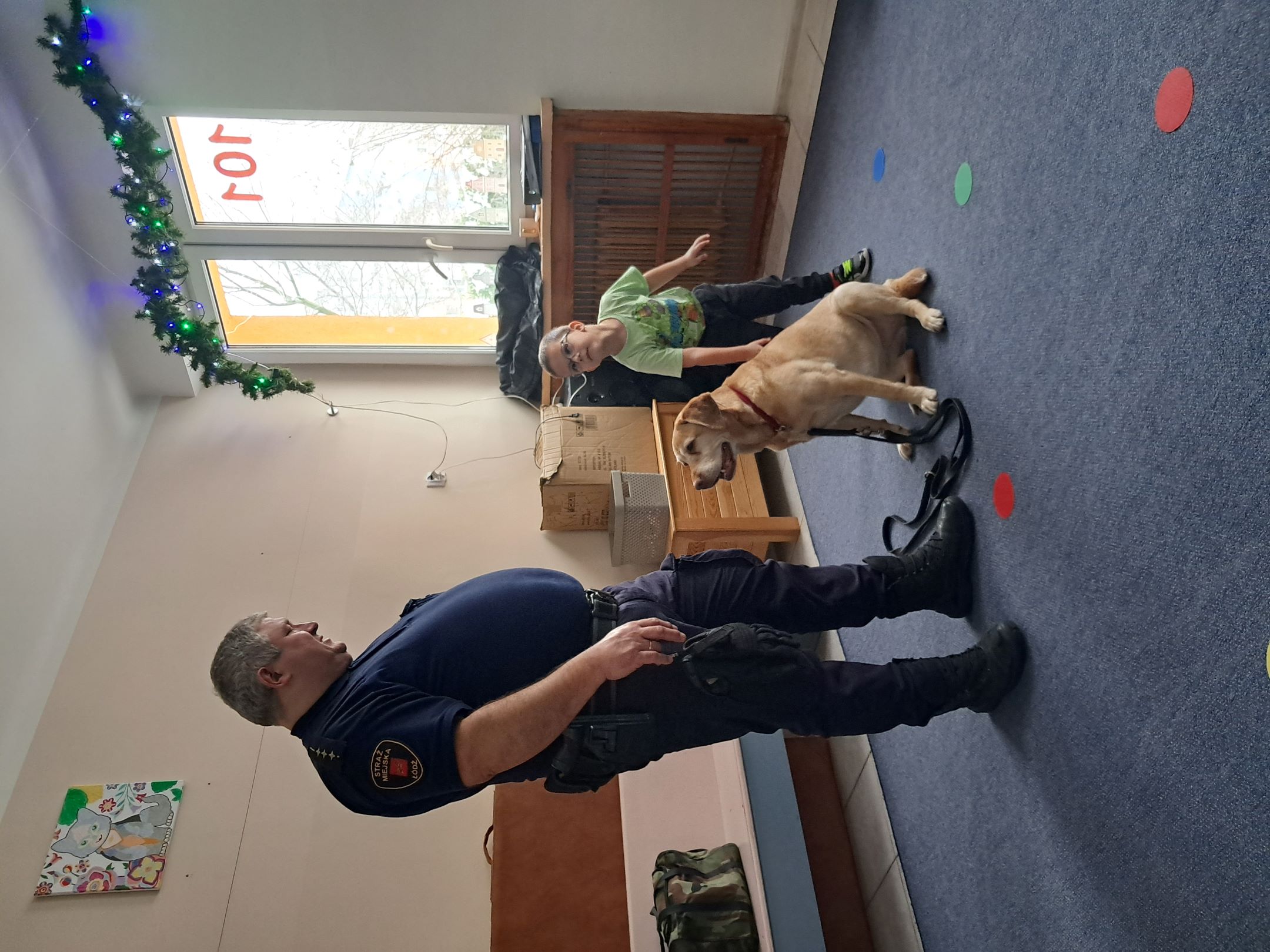 W naszym przedszkolu byli wyjątkowi goście – odwiedził nas funkcjonariusz Straży Miejskiej wraz ze swoim psem służbowym. Dzieci dowiedziały się, na czym polega praca strażników, jak dbać o bezpieczeństwo oraz jak zachować się w kontaktach z psem. Największą atrakcją było oczywiście spotkanie z czworonożnym bohaterem, które wzbudziło wiele radości i ciekawości. To było bardzo ciekawe i pouczające spotkanie!