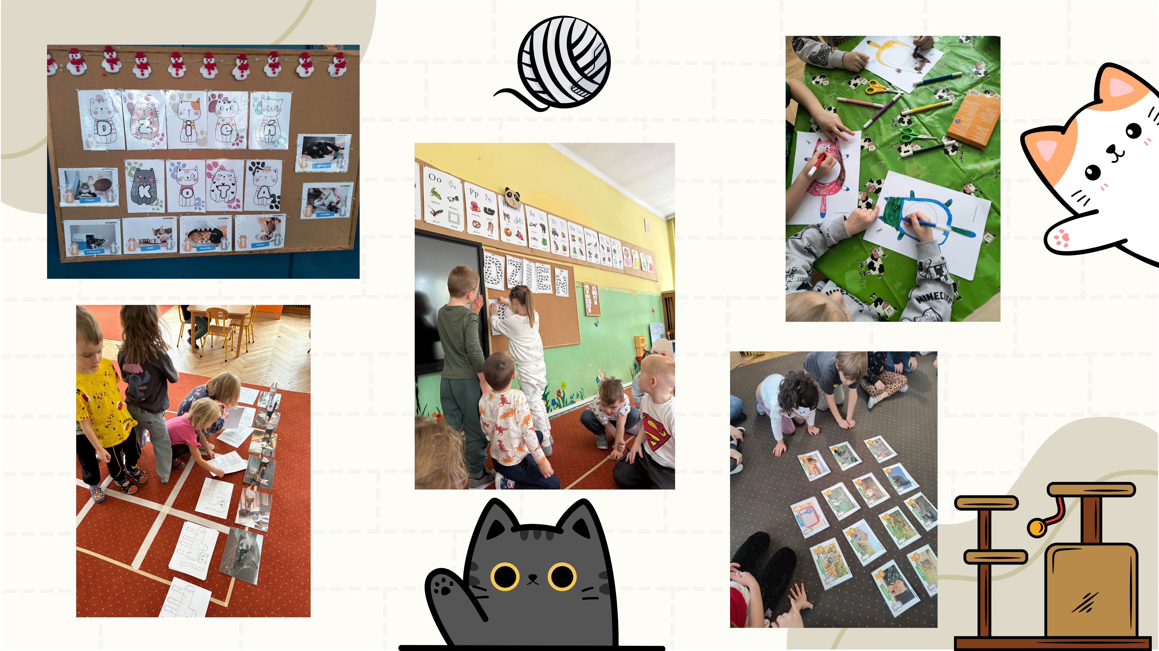 Dzieci uczestniczyły w rozmowach na temat kotów – ich zwyczajów, potrzeb oraz sposobów opieki nad zwierzętami. Nie zabrakło również wesołych gier i zabaw ruchowych, które dostarczyły wszystkim dużo radości i śmiechu.