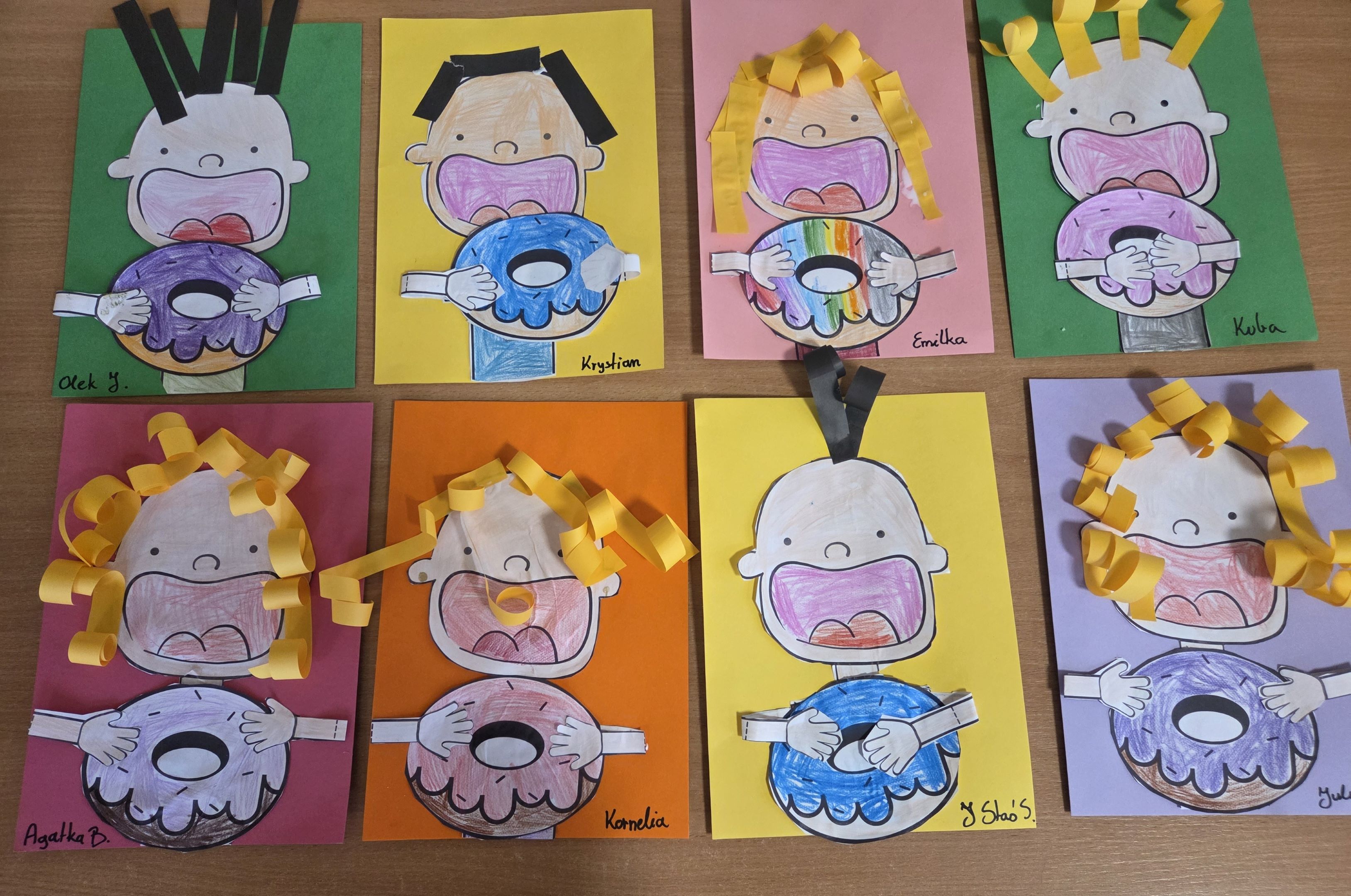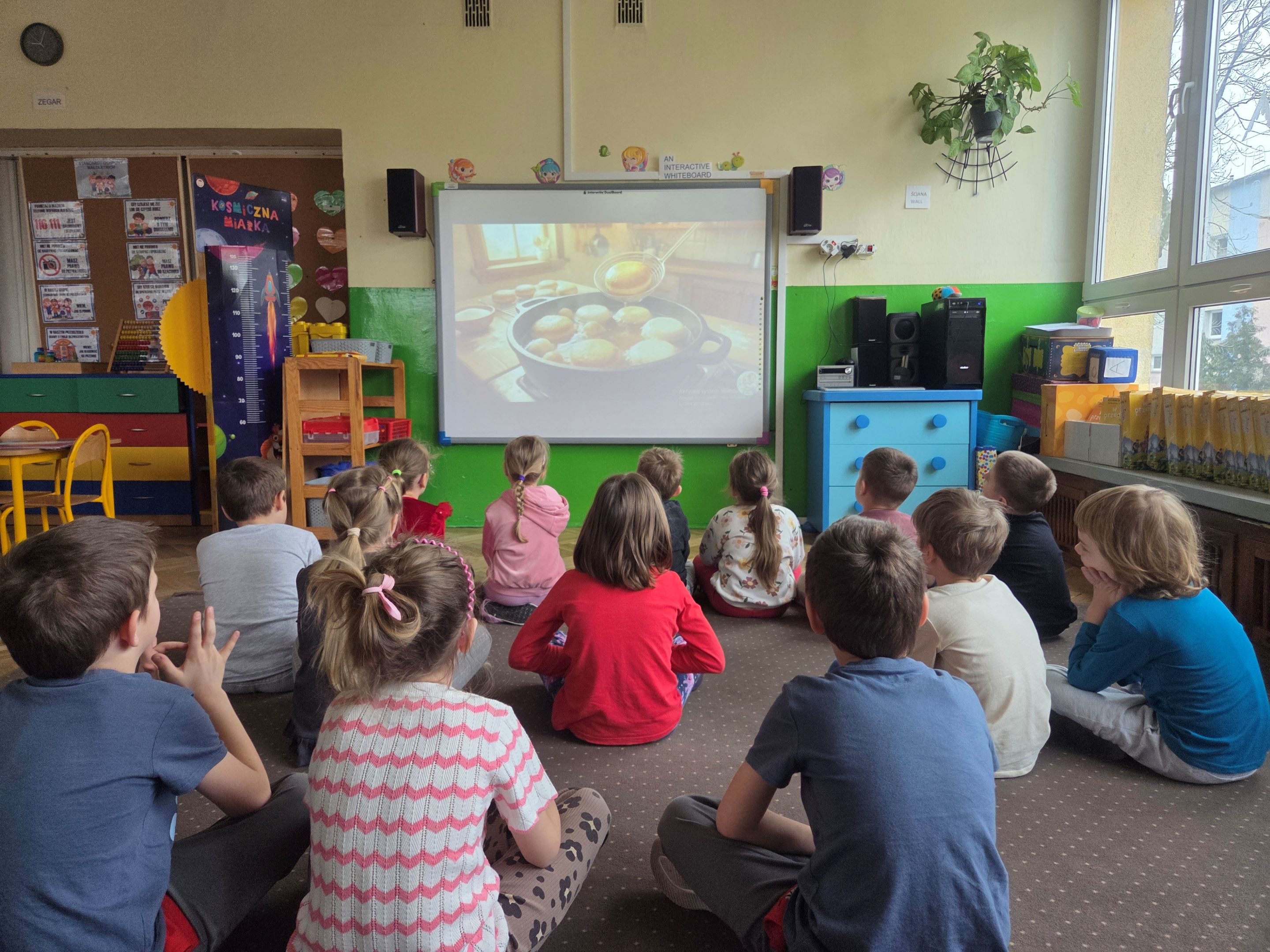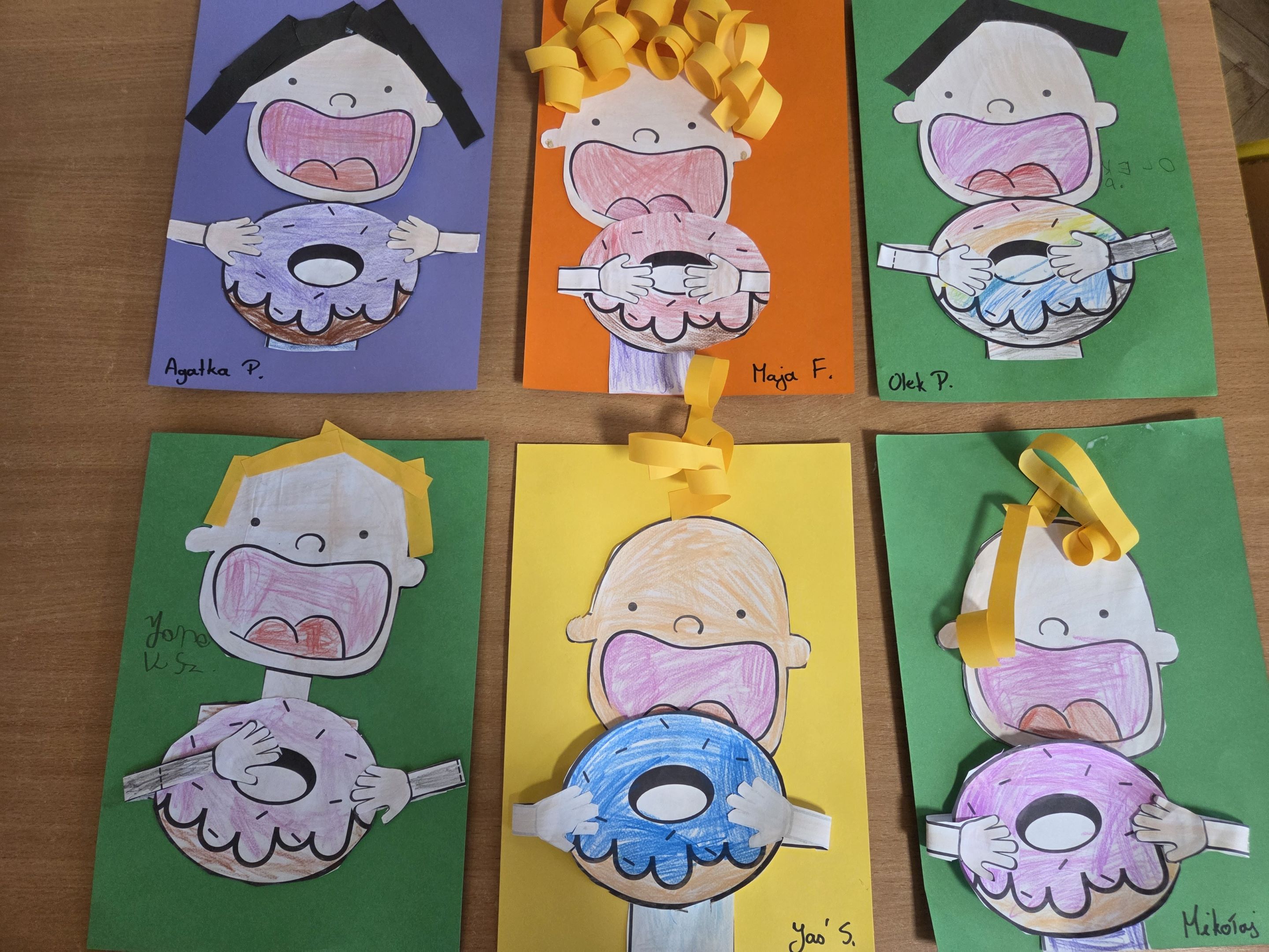Tłusty Czwartek w grupie Motyli był dniem pełnym radości, zabawy i słodkich niespodzianek. Dzieci rozpoczęły świętowanie od obejrzenia filmu edukacyjnego, z którego dowiedziały się, skąd wzięła się tradycja Tłustego Czwartku oraz dlaczego tego dnia zajadamy się pączkami i faworkami. Następnie starszaki wzięły udział w zabawach matematycznych z wykorzystaniem rymowanki o pączkach. Było liczenie, dodawanie, porównywanie ilości oraz świetna zabawa przy rytmicznym powtarzaniu wesołego wierszyka. Nie zabrakło także aktywności ruchowych z chustą animacyjną. Dzieci ćwiczyły współpracę w grupie, a przy tym miały mnóstwo śmiechu i pozytywnej energii. Kolejnym punktem dnia była praca plastyczna, każdy przedszkolak stworzył własną postać z kolorowym pączkiem, wykazując się dużą kreatywnością i starannością. Na zakończenie wszystkie Motylki otrzymały pamiątkowe dyplomy „Zjadacza Pączków”. To był wyjątkowo słodki i radosny dzień!