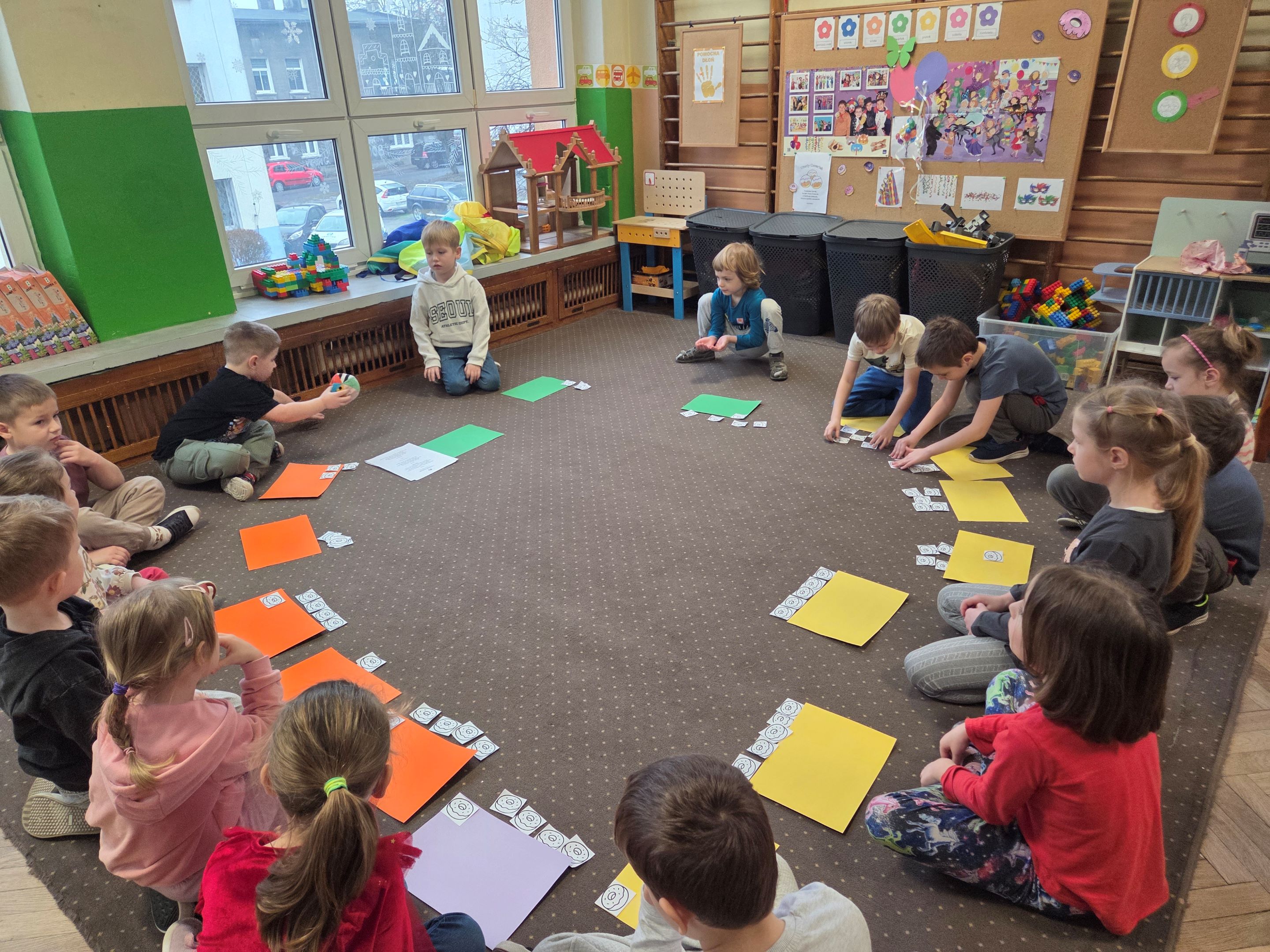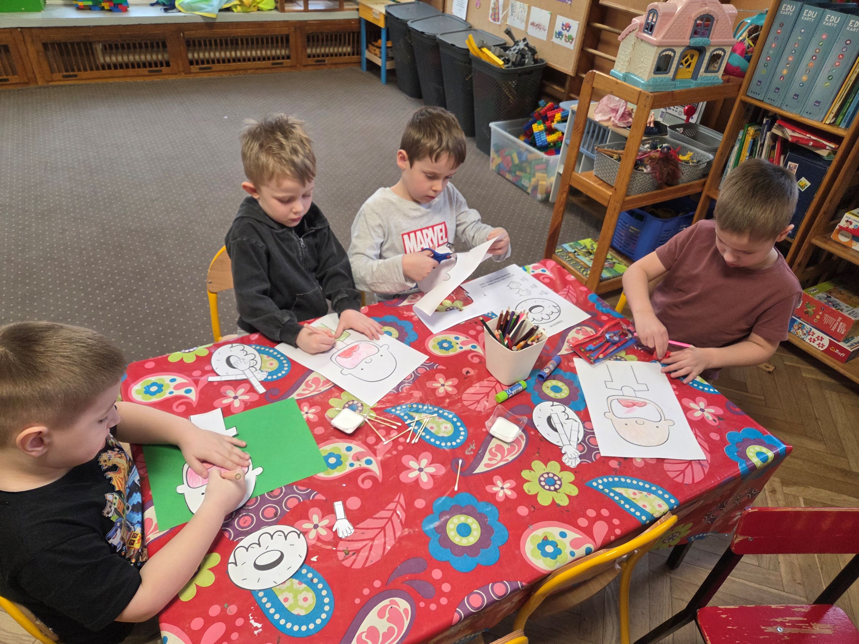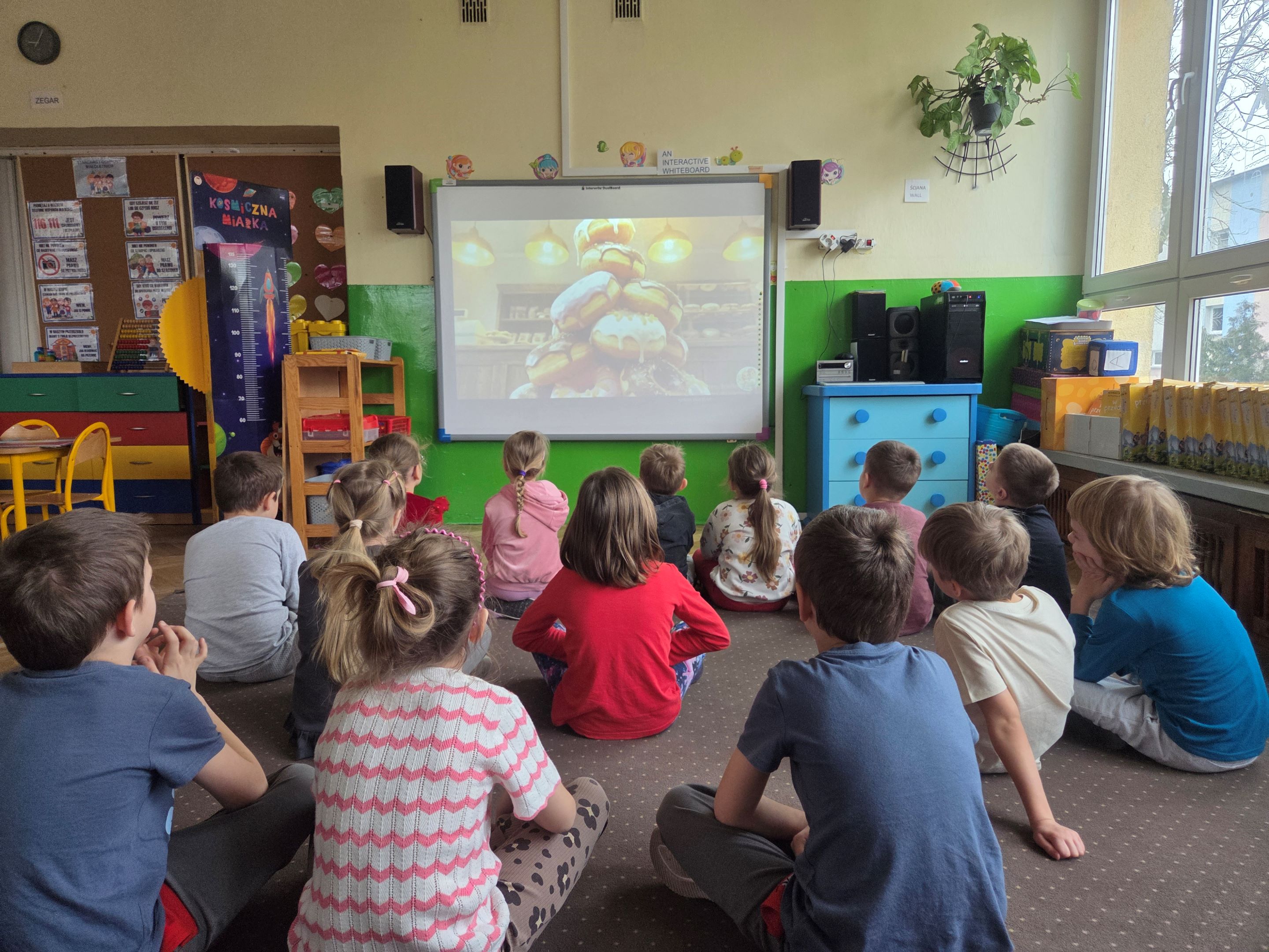 Tłusty Czwartek w grupie Motyli był dniem pełnym radości, zabawy i słodkich niespodzianek. Dzieci rozpoczęły świętowanie od obejrzenia filmu edukacyjnego, z którego dowiedziały się, skąd wzięła się tradycja Tłustego Czwartku oraz dlaczego tego dnia zajadamy się pączkami i faworkami. Następnie starszaki wzięły udział w zabawach matematycznych z wykorzystaniem rymowanki o pączkach. Było liczenie, dodawanie, porównywanie ilości oraz świetna zabawa przy rytmicznym powtarzaniu wesołego wierszyka. Nie zabrakło także aktywności ruchowych z chustą animacyjną. Dzieci ćwiczyły współpracę w grupie, a przy tym miały mnóstwo śmiechu i pozytywnej energii. Kolejnym punktem dnia była praca plastyczna, każdy przedszkolak stworzył własną postać z kolorowym pączkiem, wykazując się dużą kreatywnością i starannością. Na zakończenie wszystkie Motylki otrzymały pamiątkowe dyplomy „Zjadacza Pączków”. To był wyjątkowo słodki i radosny dzień!