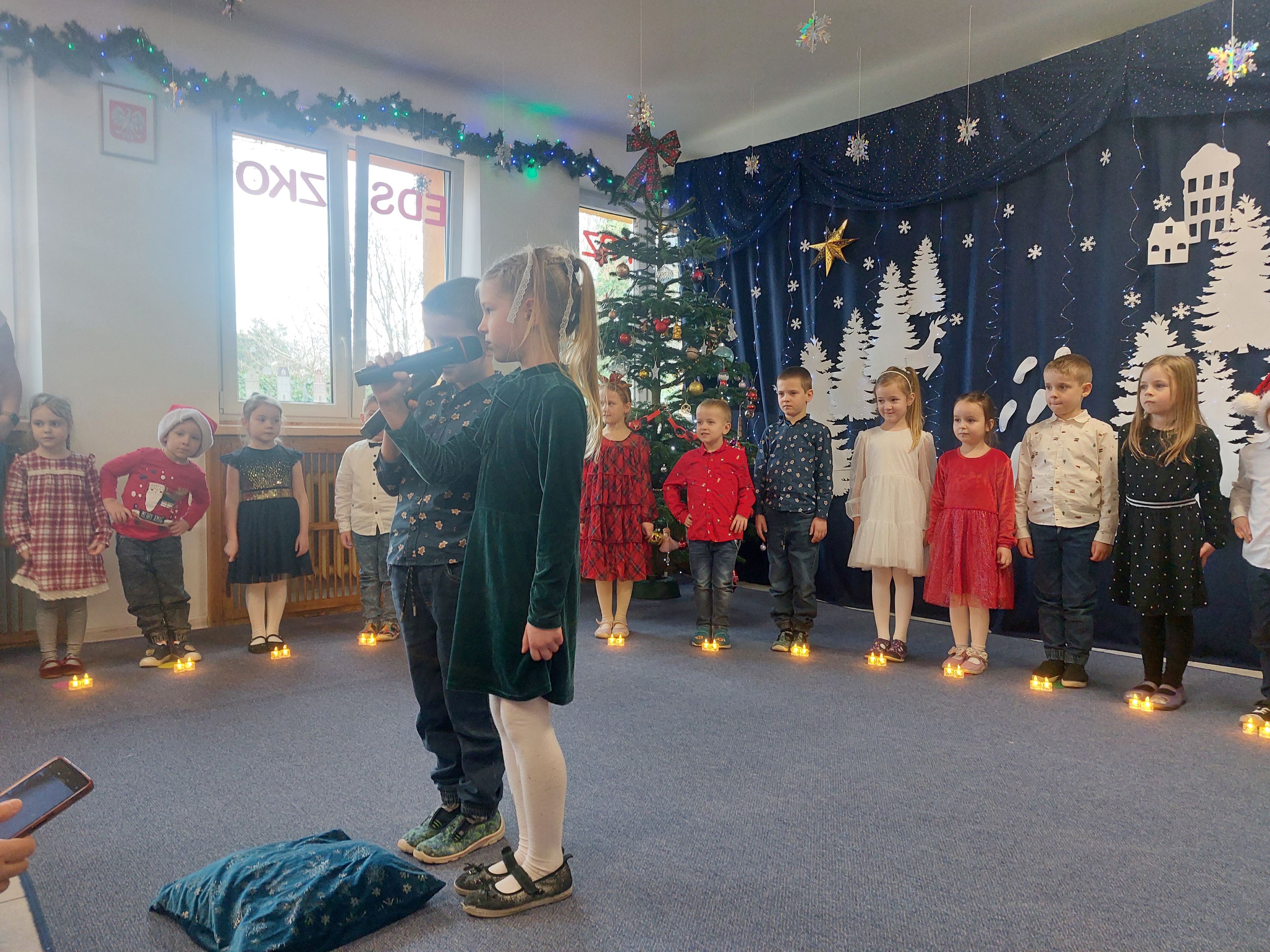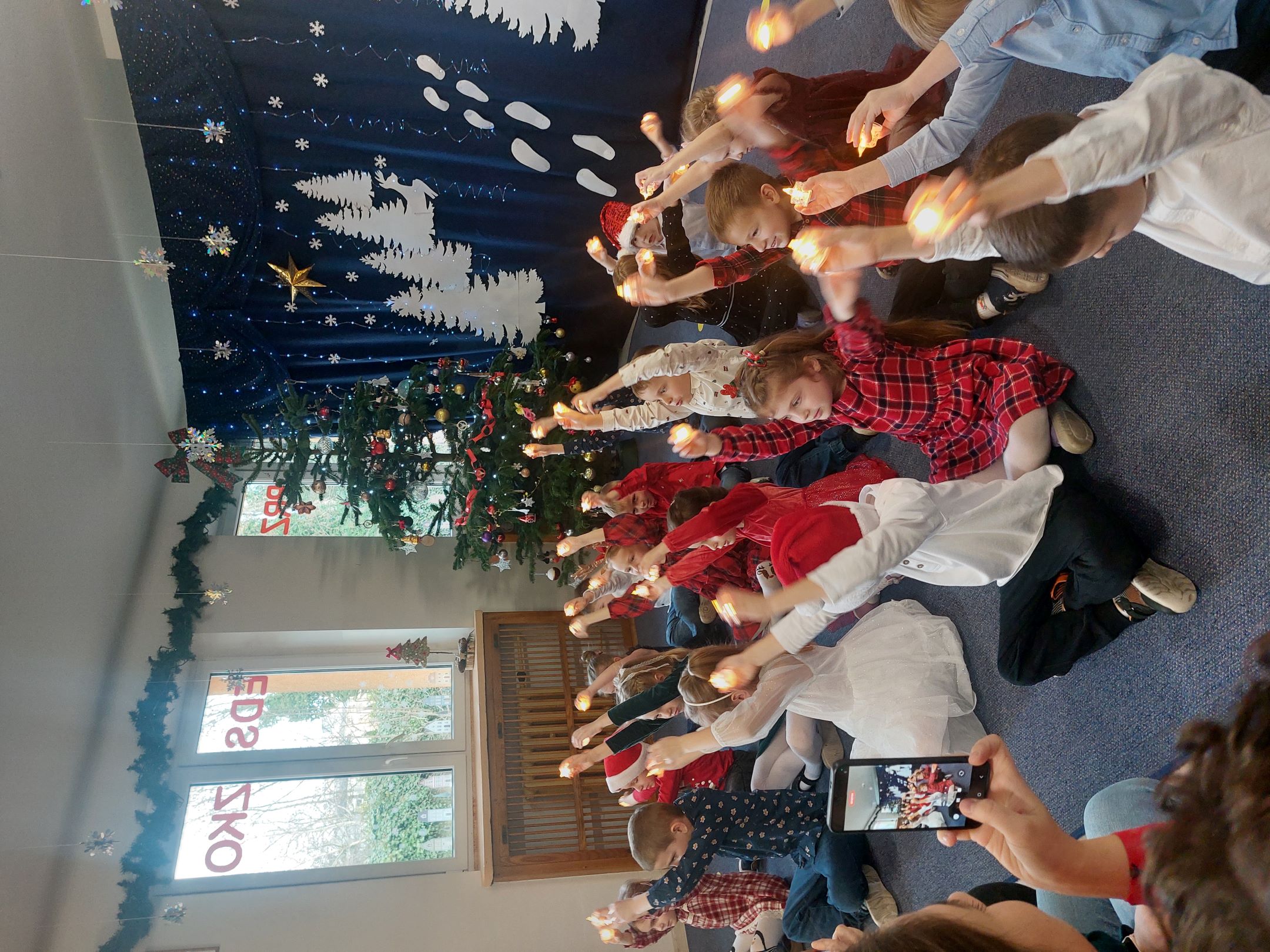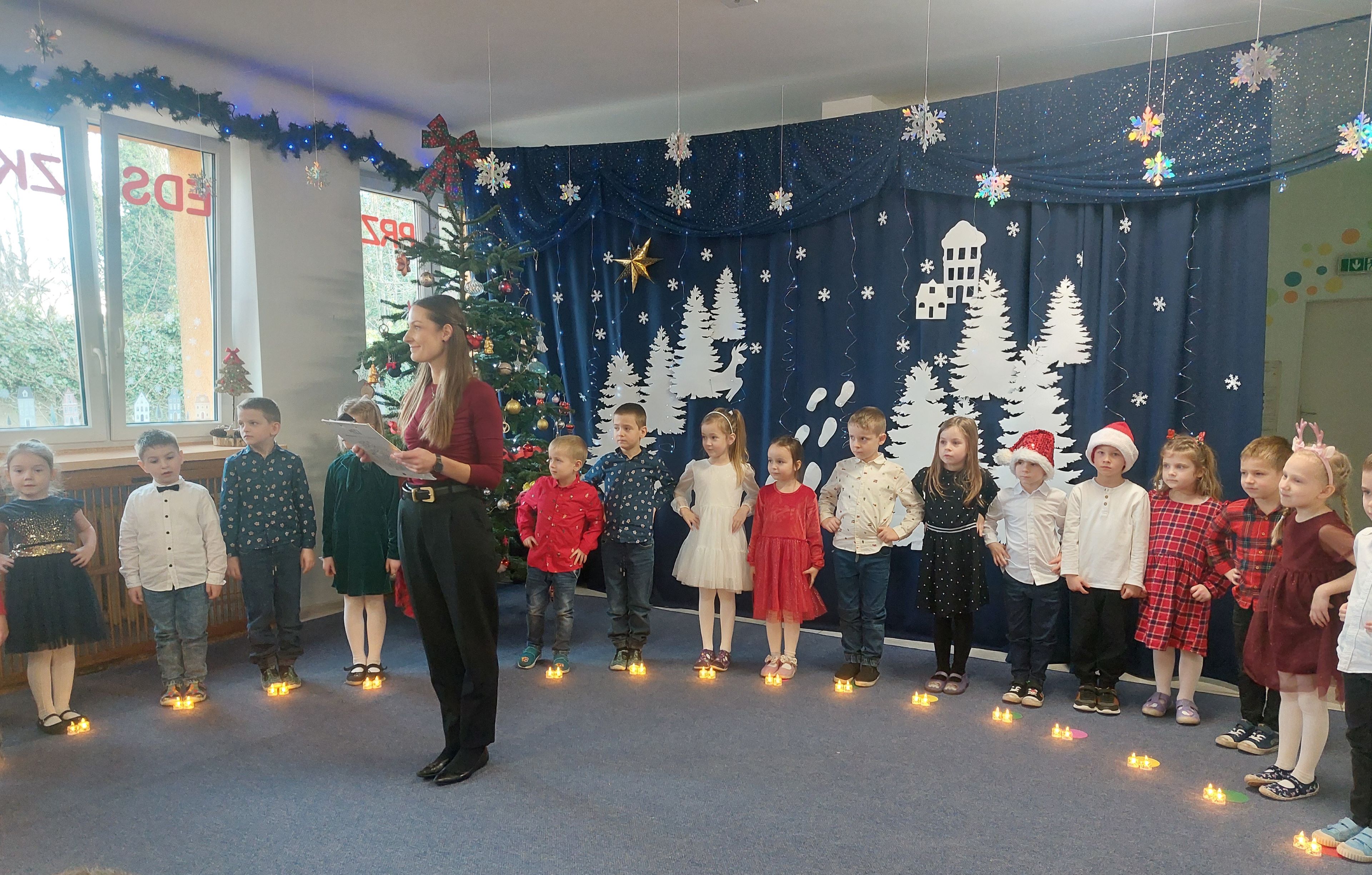 Dnia 17 grudnia w przedszkolu odbyła się Uroczystość Choinkowa grupy Motylków z udziałem Rodziców. Podczas uroczystości dzieci miały okazję zaprezentować swoje umiejętności recytatorskie, wokalne i taneczne. Nie zabrakło świątecznych wierszy, piosenek i ciekawych układów tanecznych. Sale przedszkolne zostały specjalnie przygotowane na tę okoliczność a dzieci były uroczyście ubrane. Radość dzieci była ogromna a Rodzice mieli okazję, by zobaczyć, ile wysiłku włożyły najstarsze przedszkolaki w ten piękny występ. Uroczystości dopełnił pyszny poczęstunek przygotowany przez naszych wspaniałych Rodziców, którym bardzo dziękujemy za obecność w tak ważnym dniu. Jest nam niezmiernie miło, że mogliśmy wspólnie świętować ten magiczny czas.