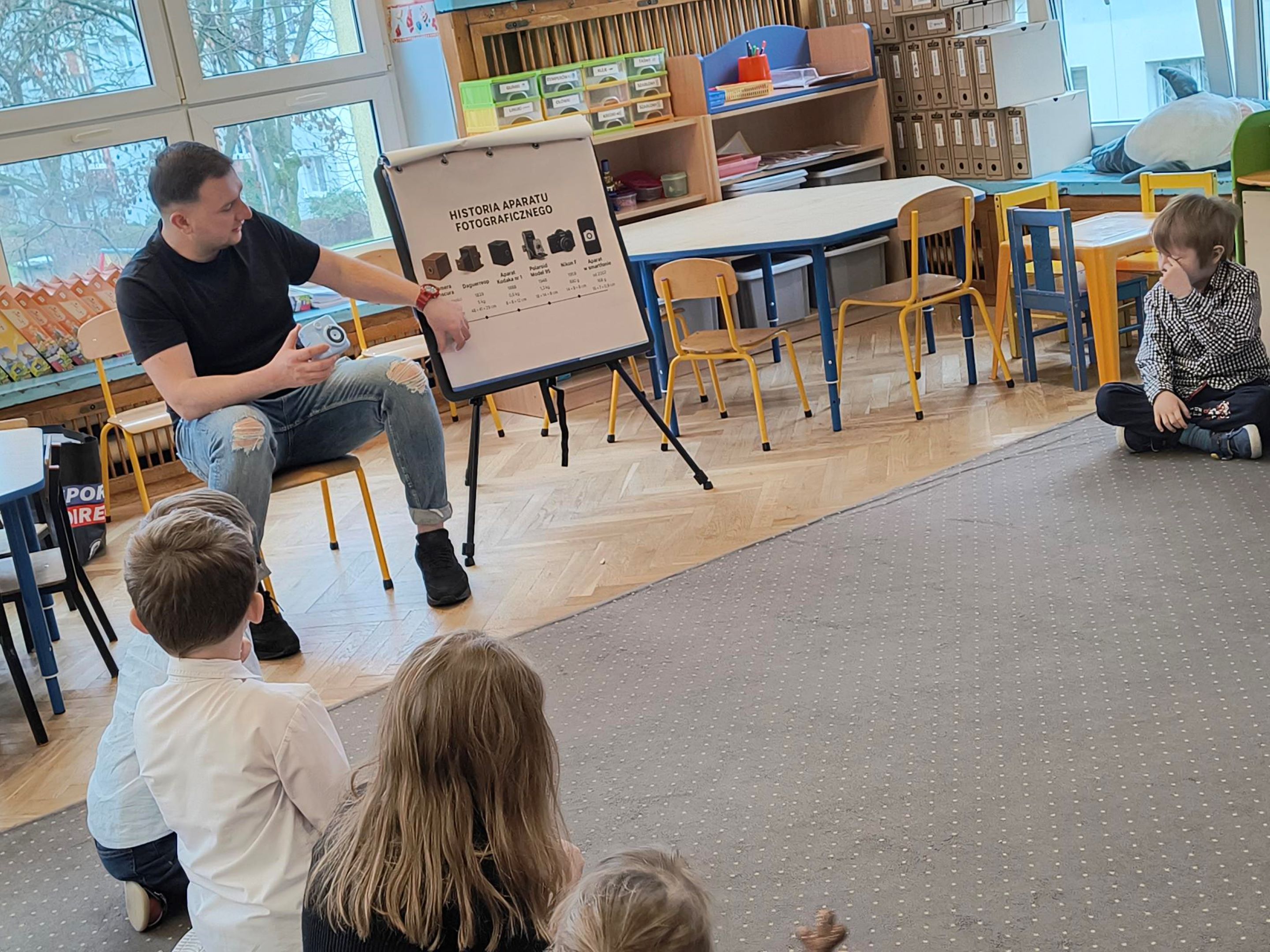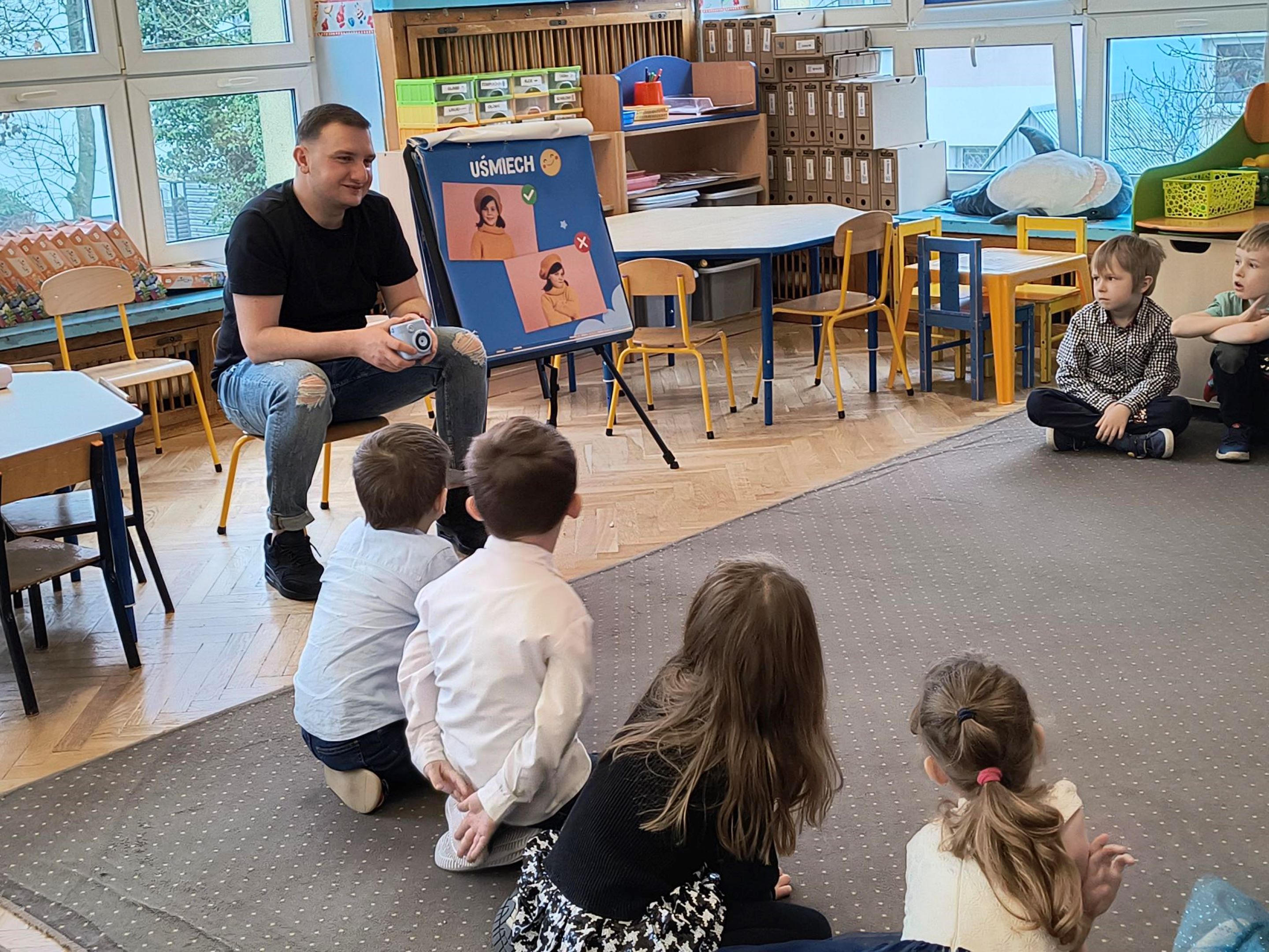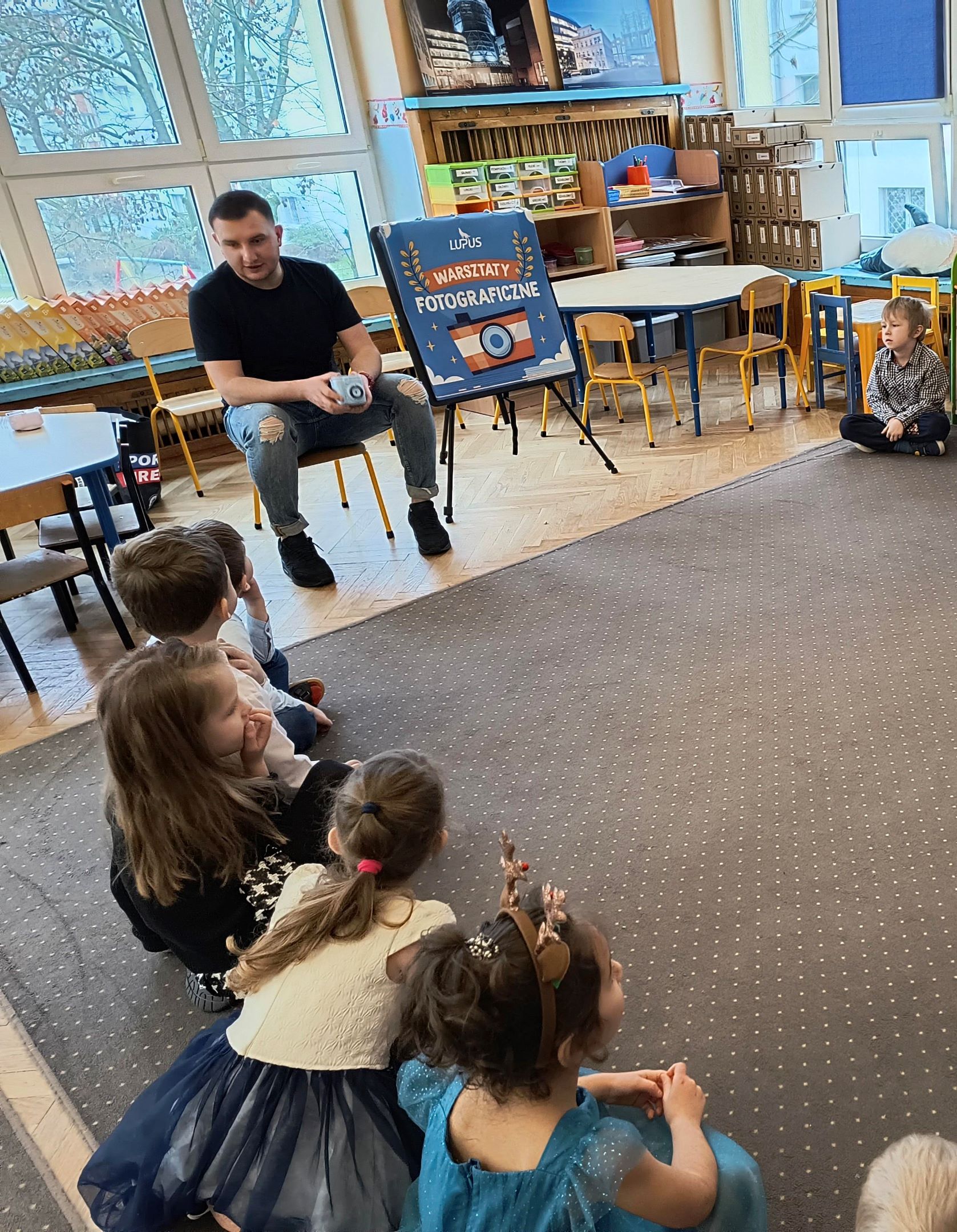 Dnia 25.11.25r. odbyły się warsztaty fotograficzne, podczas których dzieci w prosty i ciekawy sposób poznawały świat zdjęć. Dzieci dowiedziały się jak działa aparat, poznały co to jest kadr oraz uchwycenie ciekawych momentów. Maluchy mogły samodzielnie pozować, robić zdjęcia specjalnym, bezpiecznym sprzętem oraz oglądać efekty swojej pracy. Zajęcia przebiegły w twórczej, radosnej atmosferze i pozwoliły dzieciom odkryć, jak wiele emocji można uchwycić w jednym ujęciu.