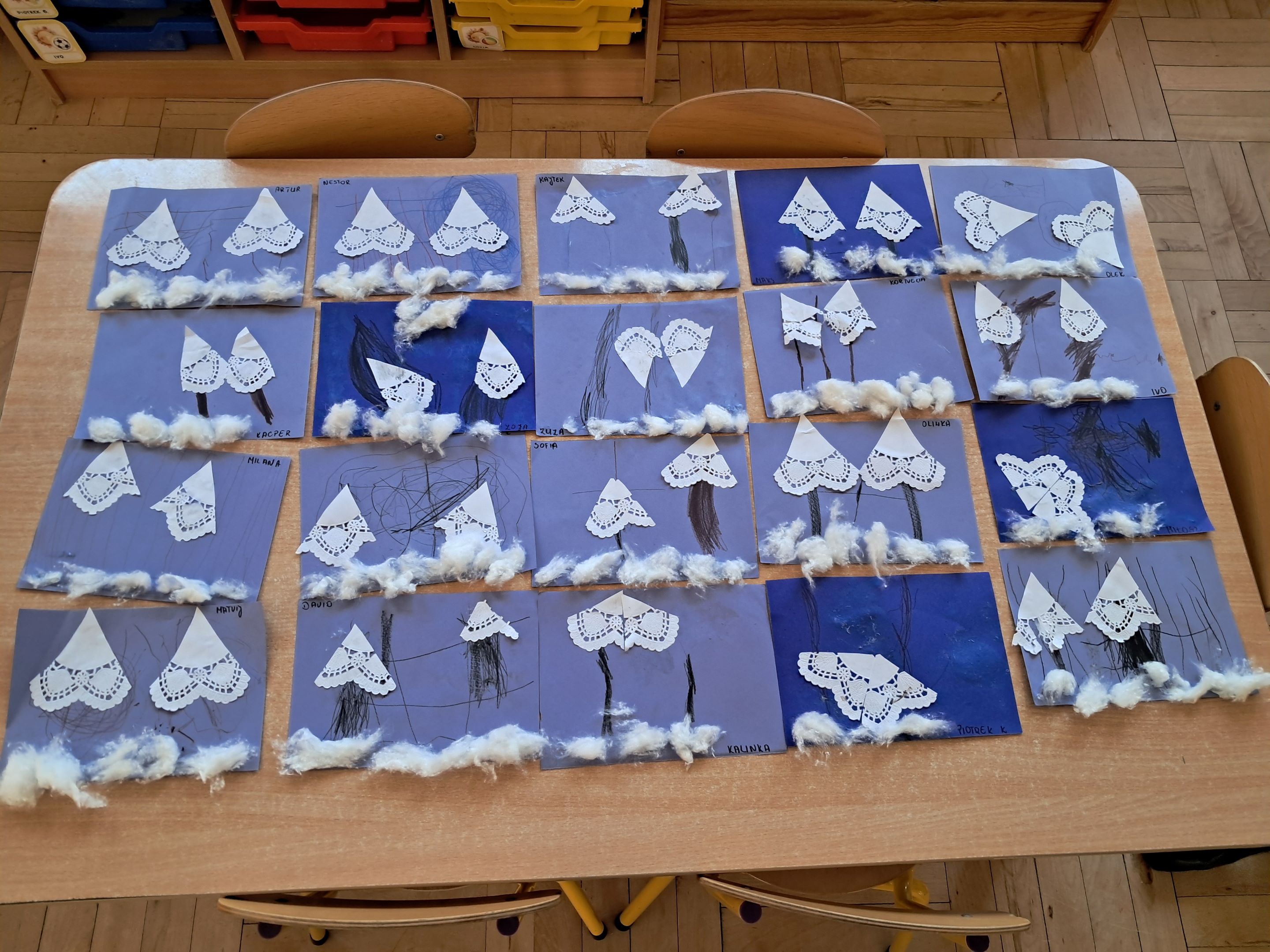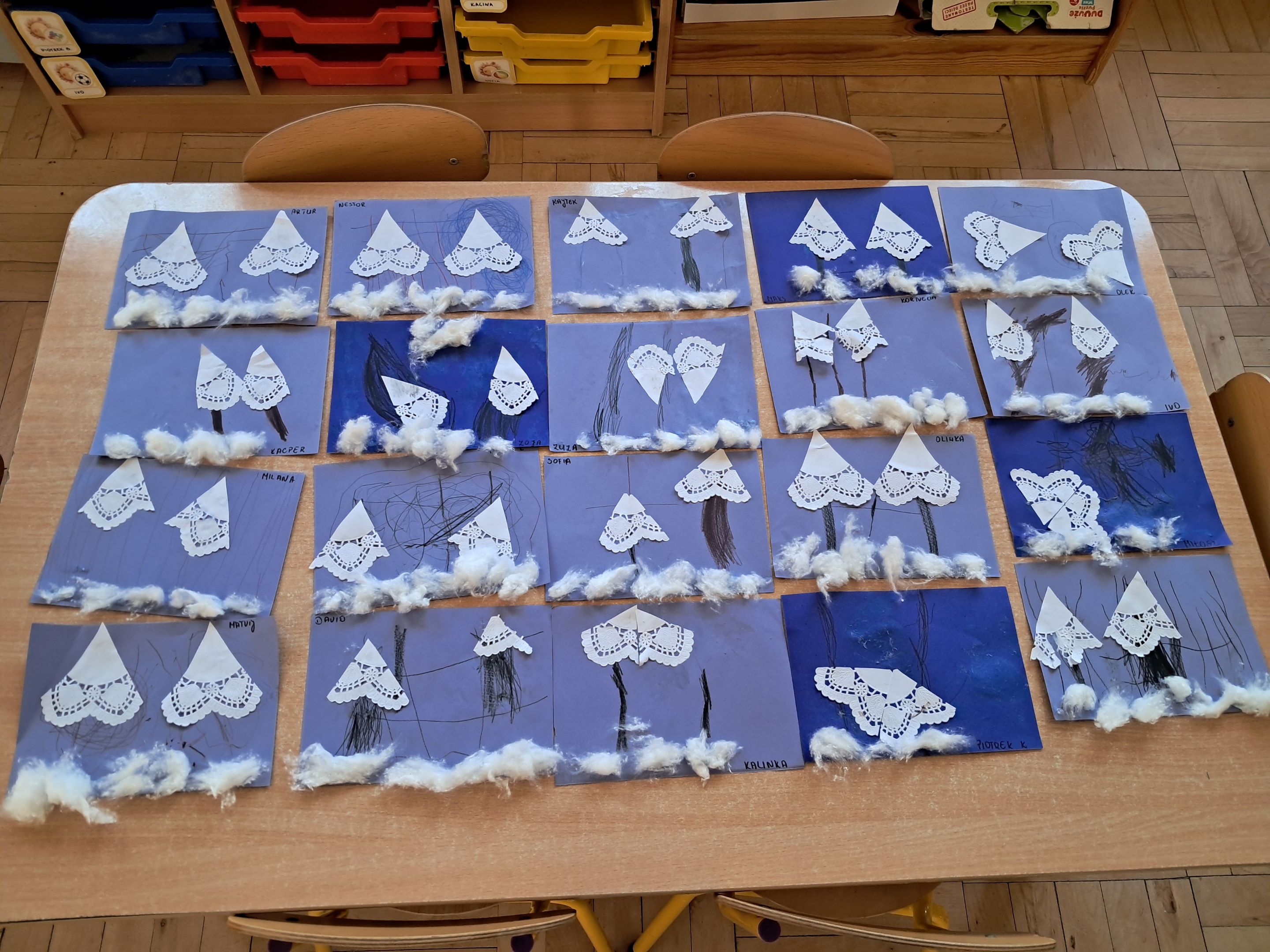 Przedszkolaki stworzyły piękne zimowe krajobrazy, pełne śniegu, kolorów i dziecięcej wyobraźni.