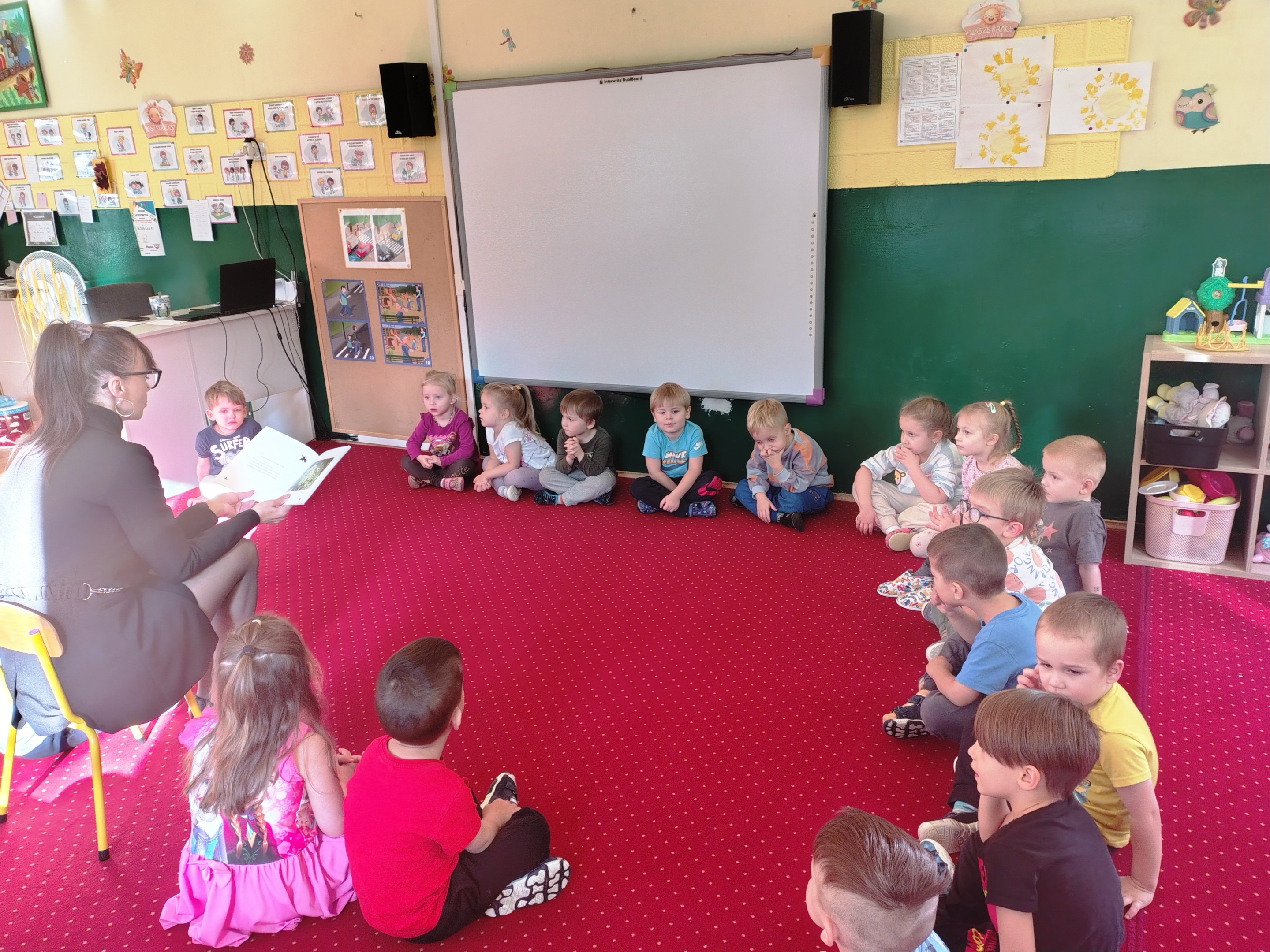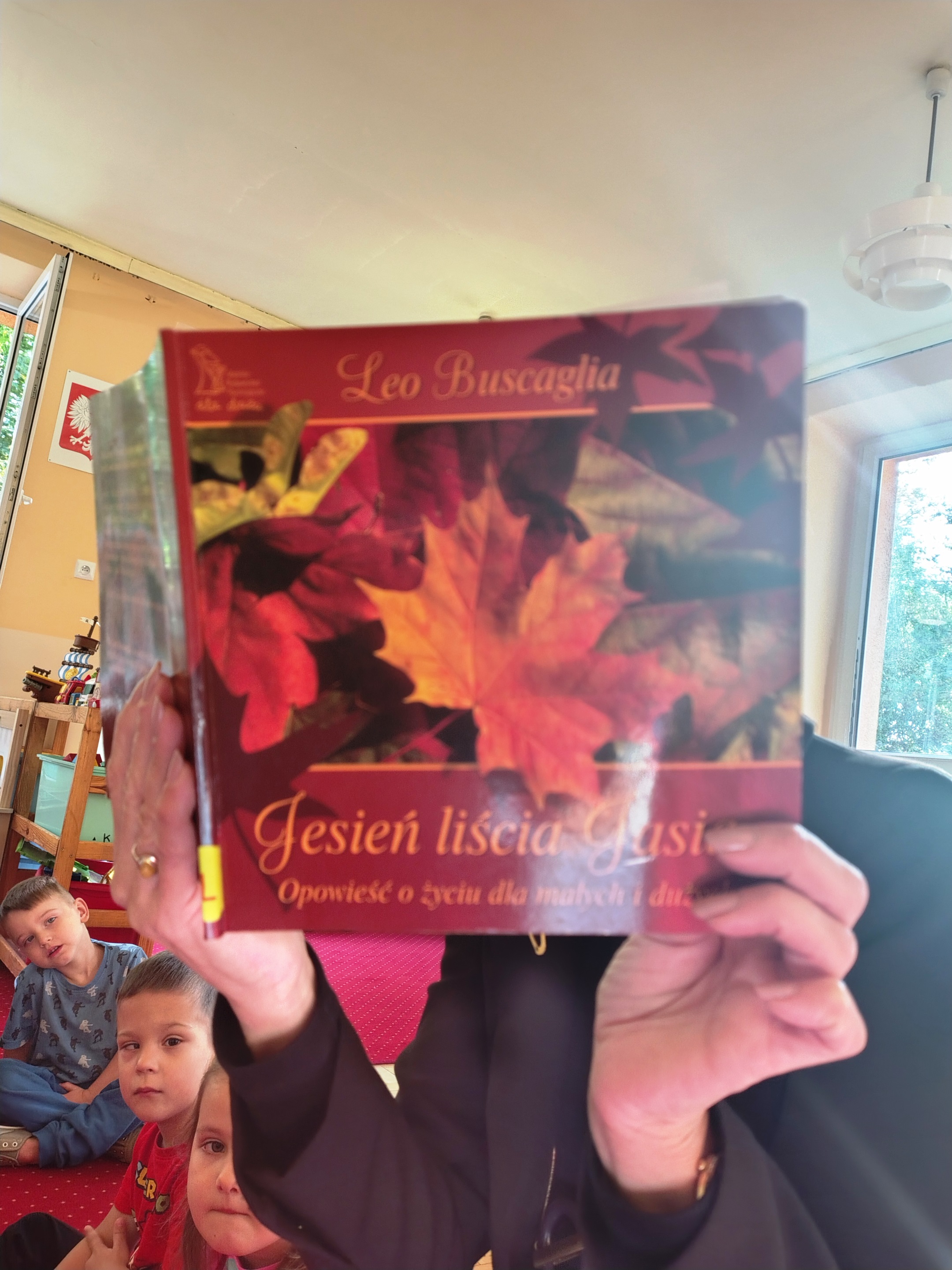 W dniu 22 października gościliśmy w grupie "Słoneczek" dobrze znaną niektórym dzieciom, panią Kierownik z zaprzyjaźnionej Biblioteki Rejonowej przy ul. Pięknej. Wspólnie odkrywaliśmy uroki jesieni, czytaliśmy wzruszającą książkę "Jesień liścia Jasia" a potem rozmawialiśmy o zmieniających się porach roku. Na koniec tworzyliśmy nasze własne liście jesienne.