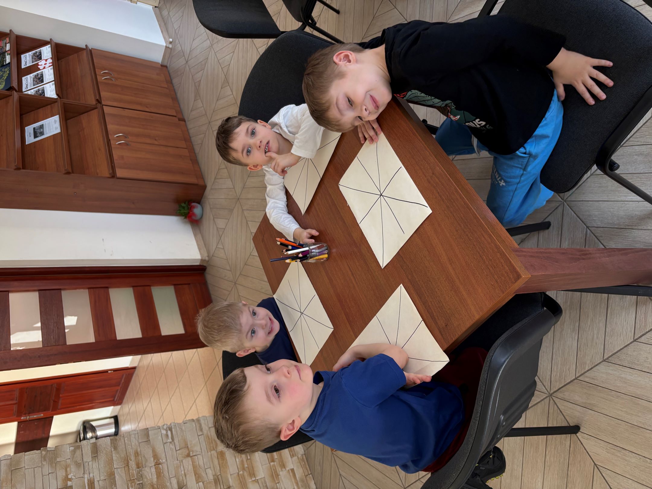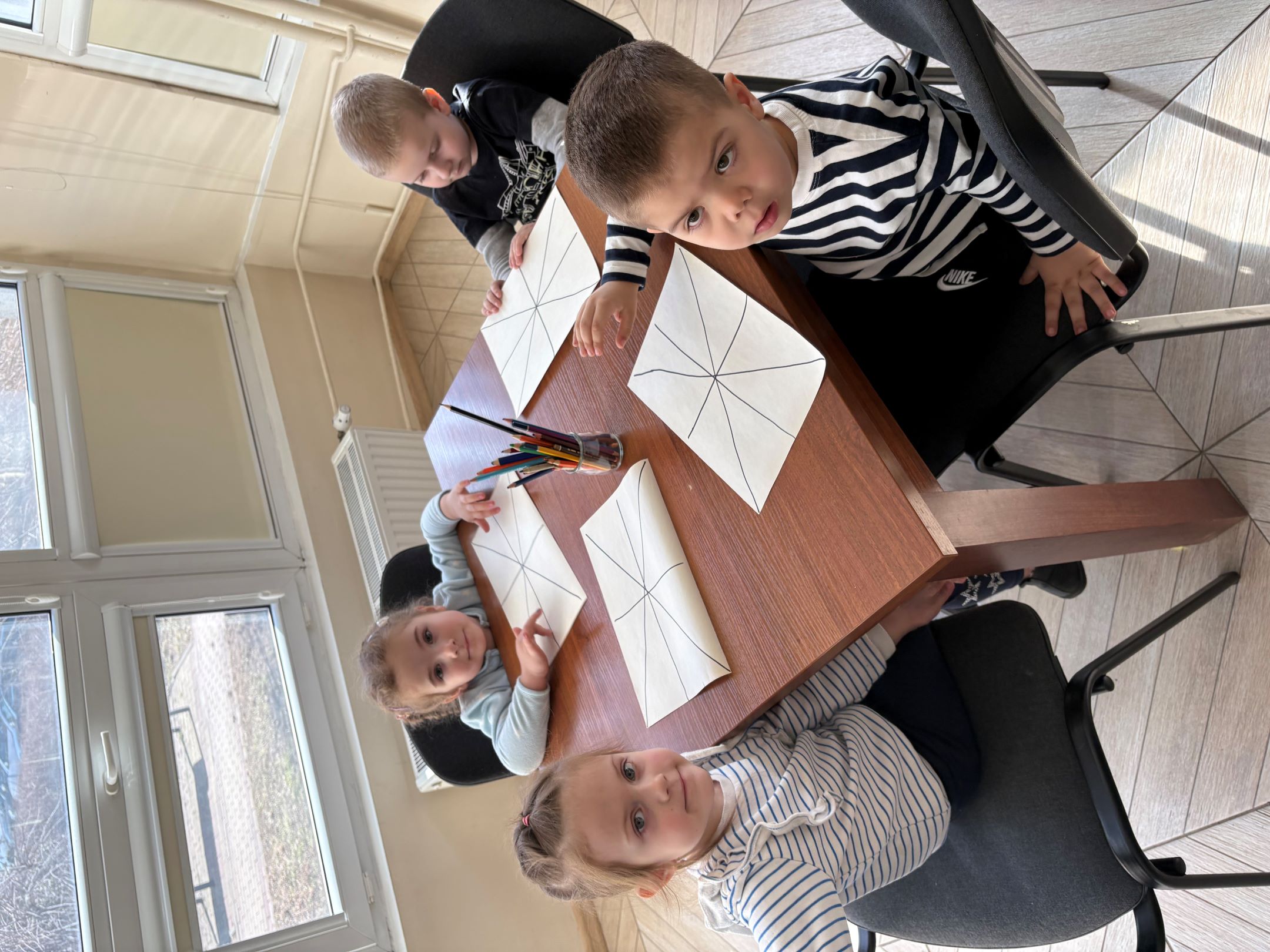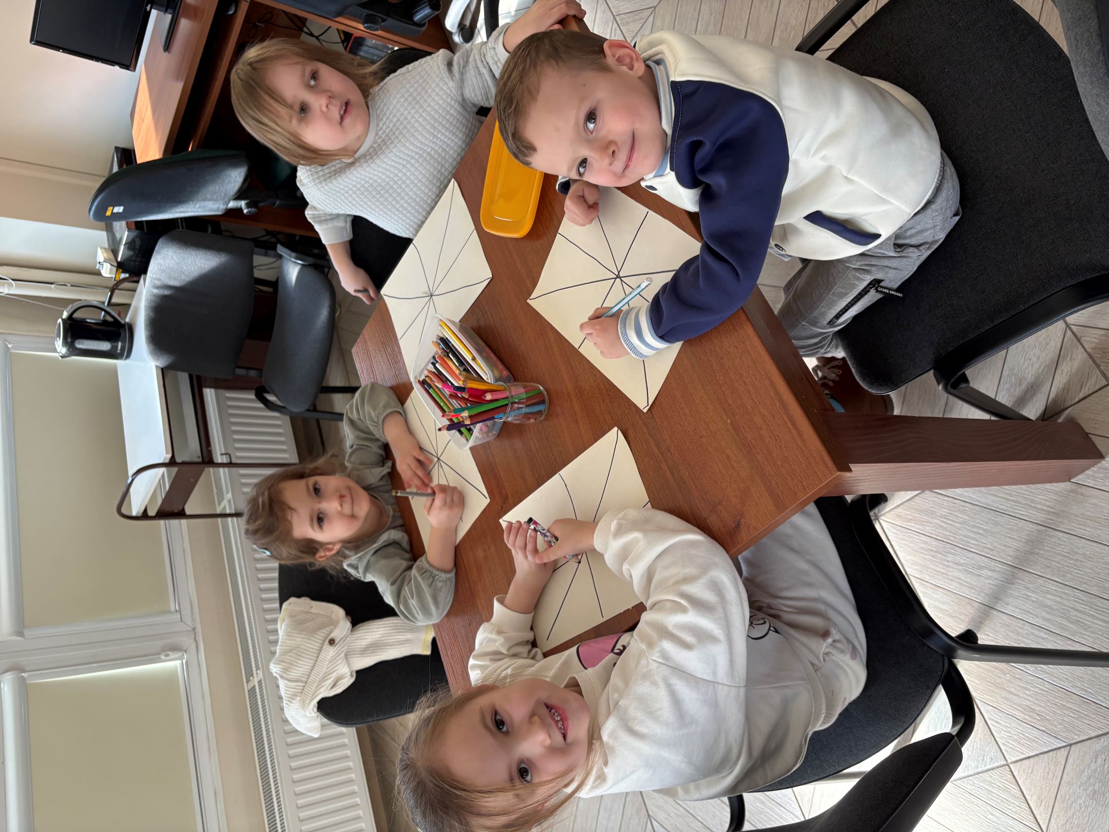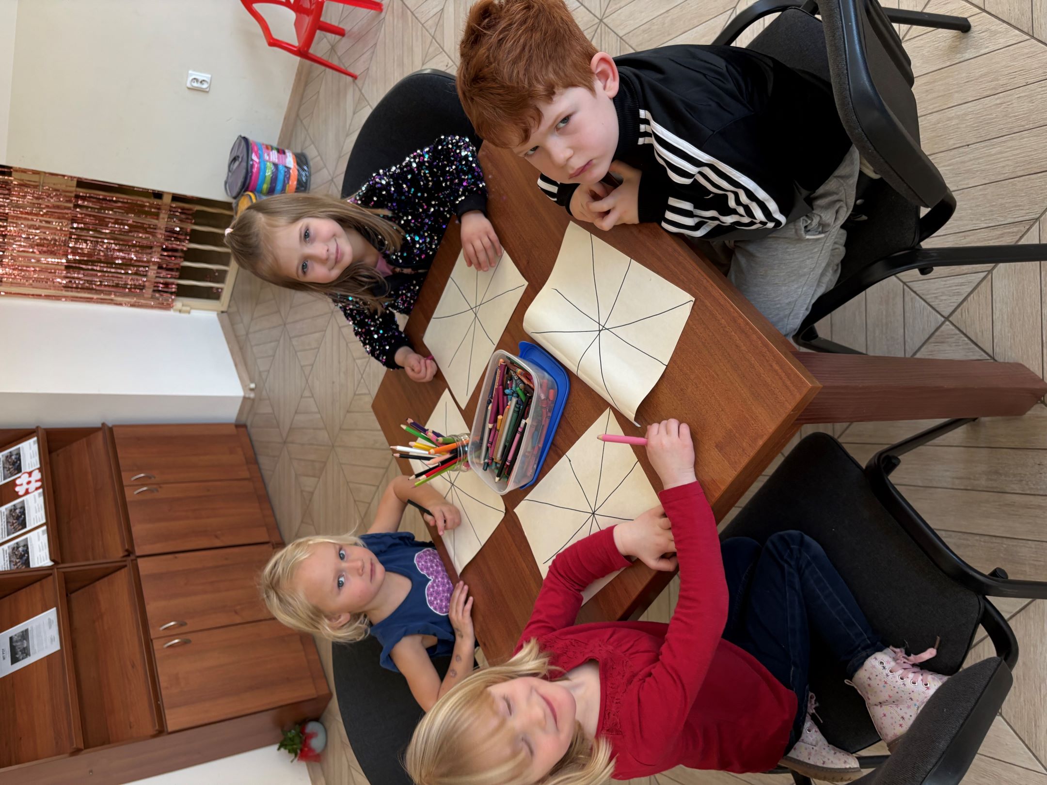 Opowieść bardzo zaciekawiła dzieci i przeniosła je do barwnego świata wyobraźni. Na zakończenie spotkania przedszkolaki wykonały piękną pracę plastyczną przedstawiającą myszkę na tle różnych, kolorowych krain.