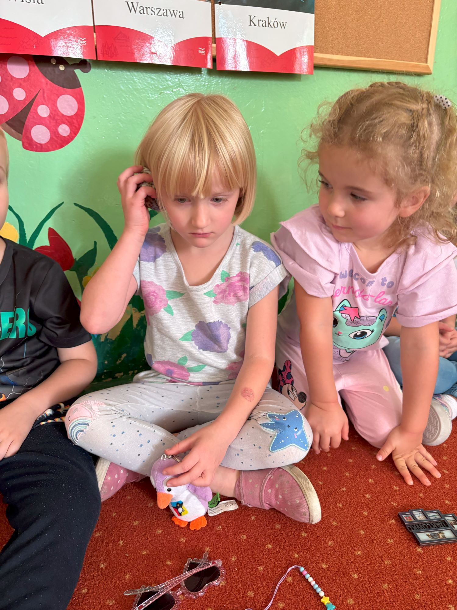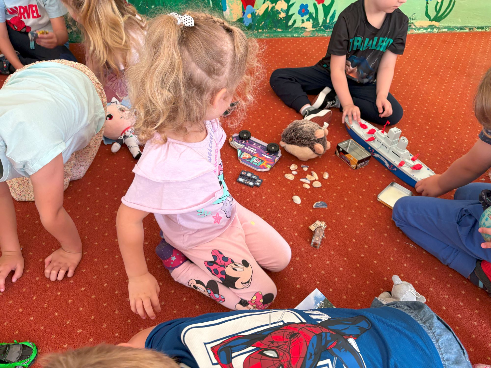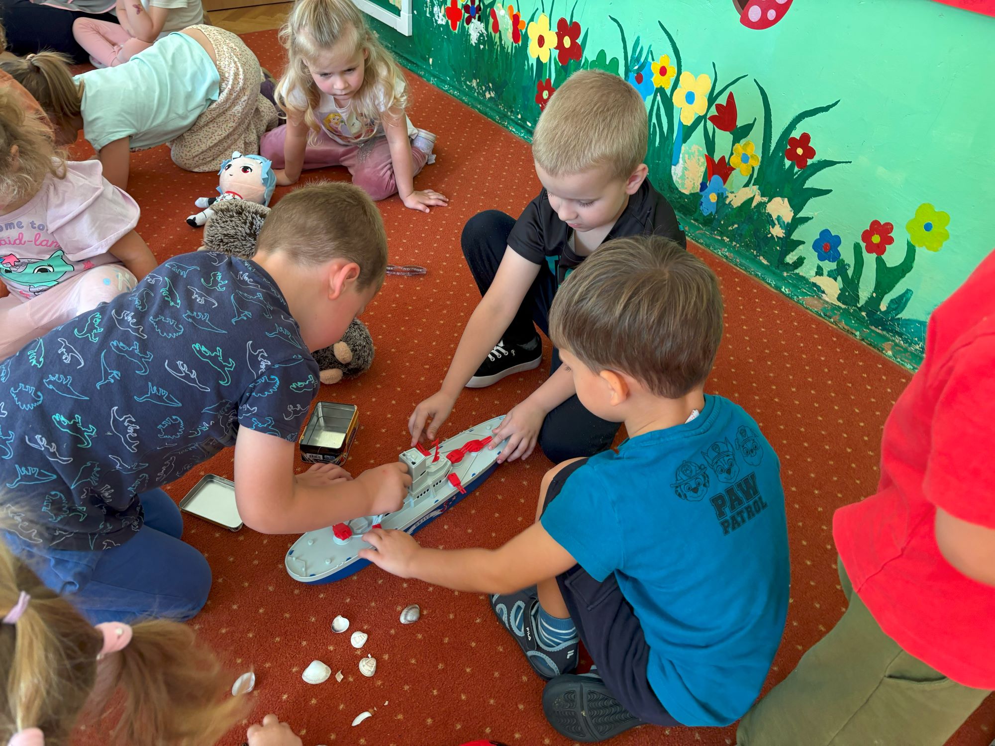 Dzieci przyniosły do przedszkola swoje wakacyjne pamiątki – statki, kolorowe magnesy, zdjęcia, figurki, muszle, kamyki znad morza oraz zabawki. Każda rzecz była wyjątkowa i przypominała o pięknych chwilach spędzonych latem. Podczas zajęć dzieci z radością opowiadały o swoich przygodach, dzieląc się wspomnieniami z podróży.