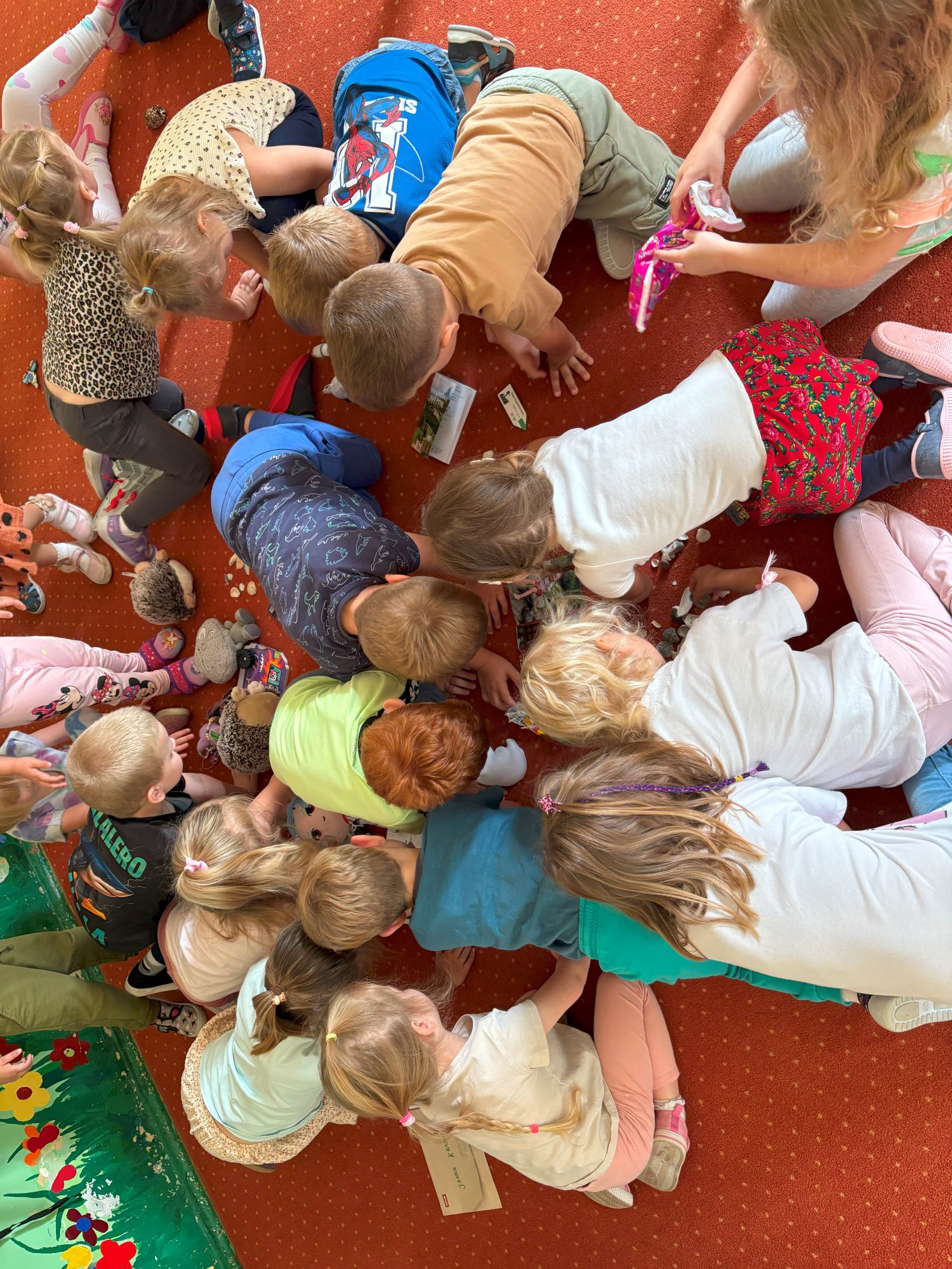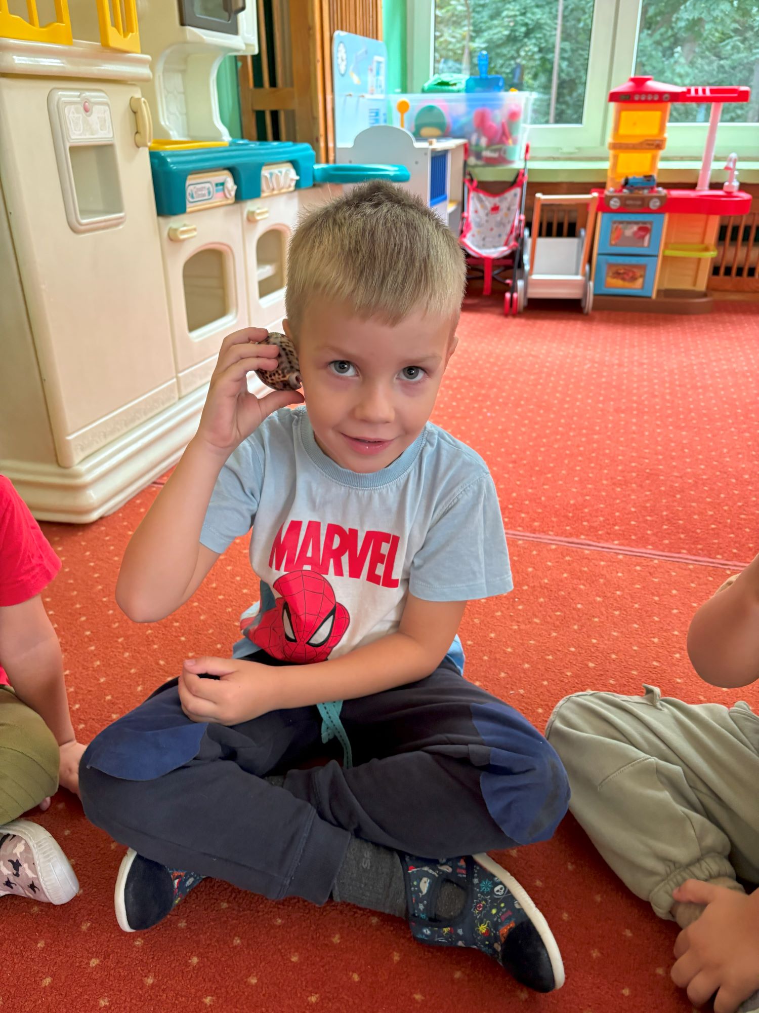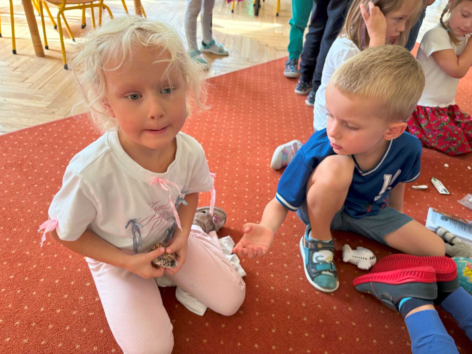 Dzieci przyniosły do przedszkola swoje wakacyjne pamiątki – statki, kolorowe magnesy, zdjęcia, figurki, muszle, kamyki znad morza oraz zabawki. Każda rzecz była wyjątkowa i przypominała o pięknych chwilach spędzonych latem. Podczas zajęć dzieci z radością opowiadały o swoich przygodach, dzieląc się wspomnieniami z podróży.