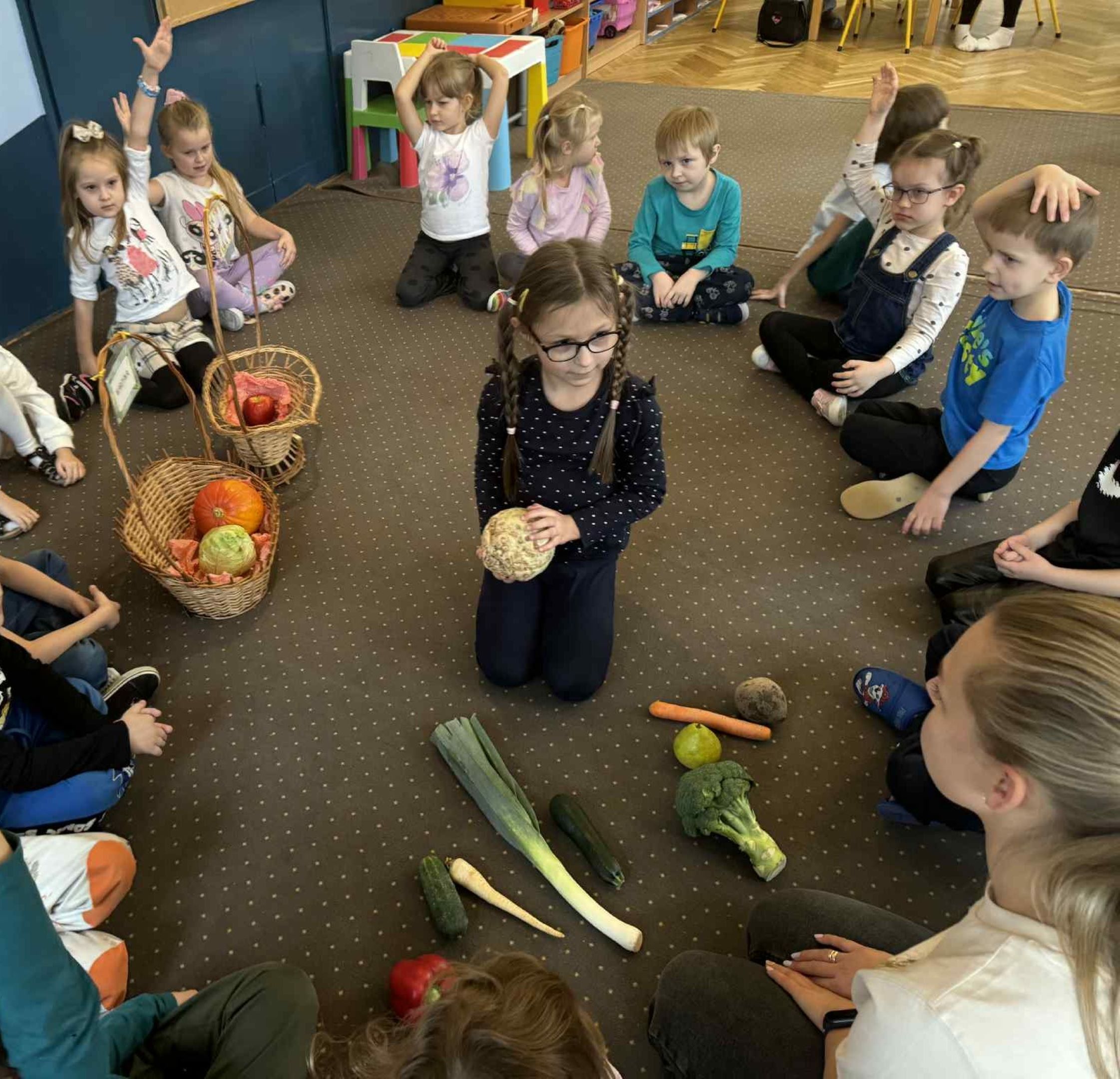 Dnia 28.10.2025r. w grupie Stokrotki odbyły się zajęcia otwarte dla rodziców pt. "Jesienne inspiracje". Zajęcia przebiegły w ciepłej, radosnej atmosferze. Dzieci chętnie dzieliły się swoją wiedzą na temat jesiennych warzyw i owoców , a rodzice z zaangażowaniem uczestniczyli w aktywności plastycznej. Spotkanie pozwoliło zacieśnić więzi między przedszkolem a domem oraz pokazało, jak wiele radości daje wspólne tworzenie.